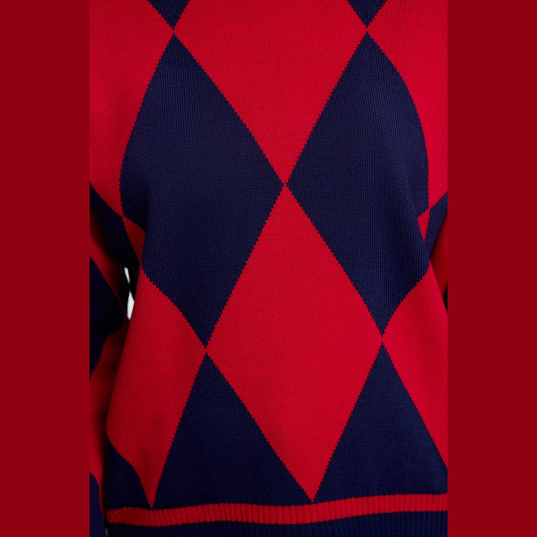 كنزة شتوية بلون كحلي أنيق، مصممة بنقشة هندسية تضيف طابعًا كلاسيكيًا، مع خامة تريكو متوسطة السماكة بملمس ناعم. تأتي بياقة مستديرة مغلقة، وأكمام طويلة بكتف منخفض، وقصة منتظمة تمنحك تناسقًا مريحًا، ما يجعلها خيارًا مثاليًا للإطلالات اليومية الشتوية التي تجمع بين الراحة والبساطة.