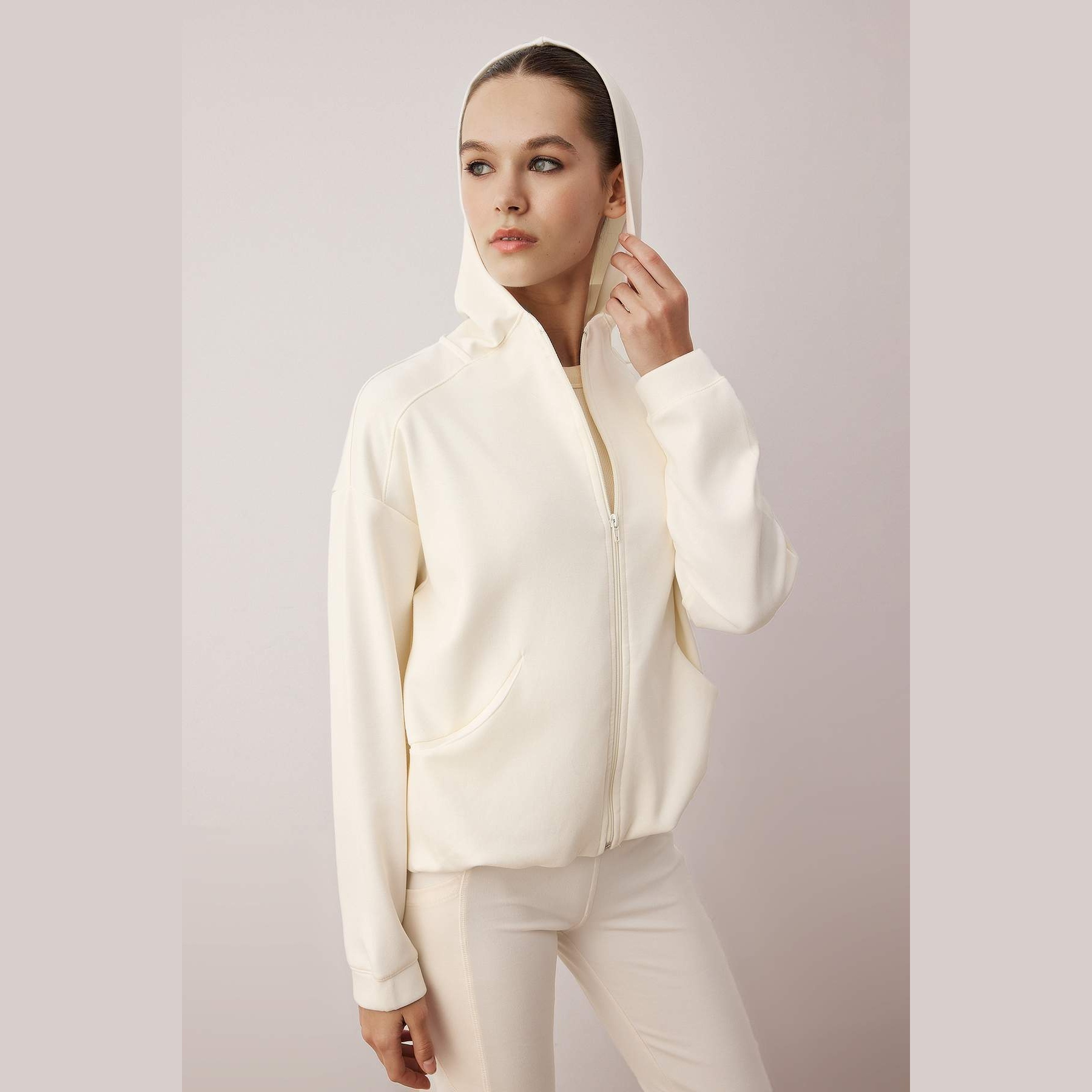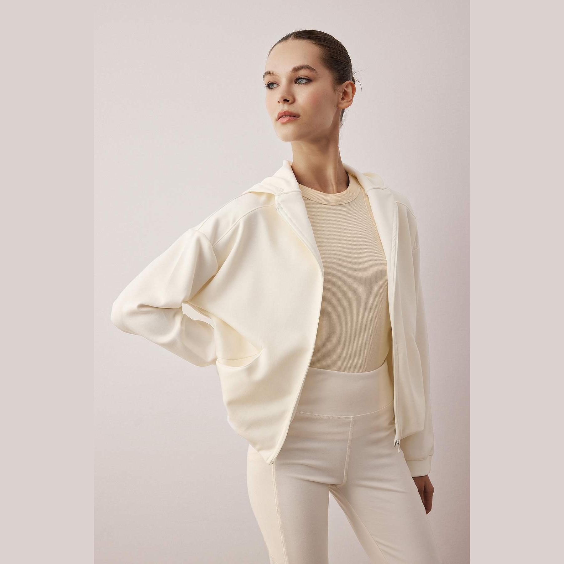 جاكيت رياضي نسائي – إكرُو من خامة إنترلوك ناعمة بقصة منتظمة (راحة فائقة وأناقة يومية)