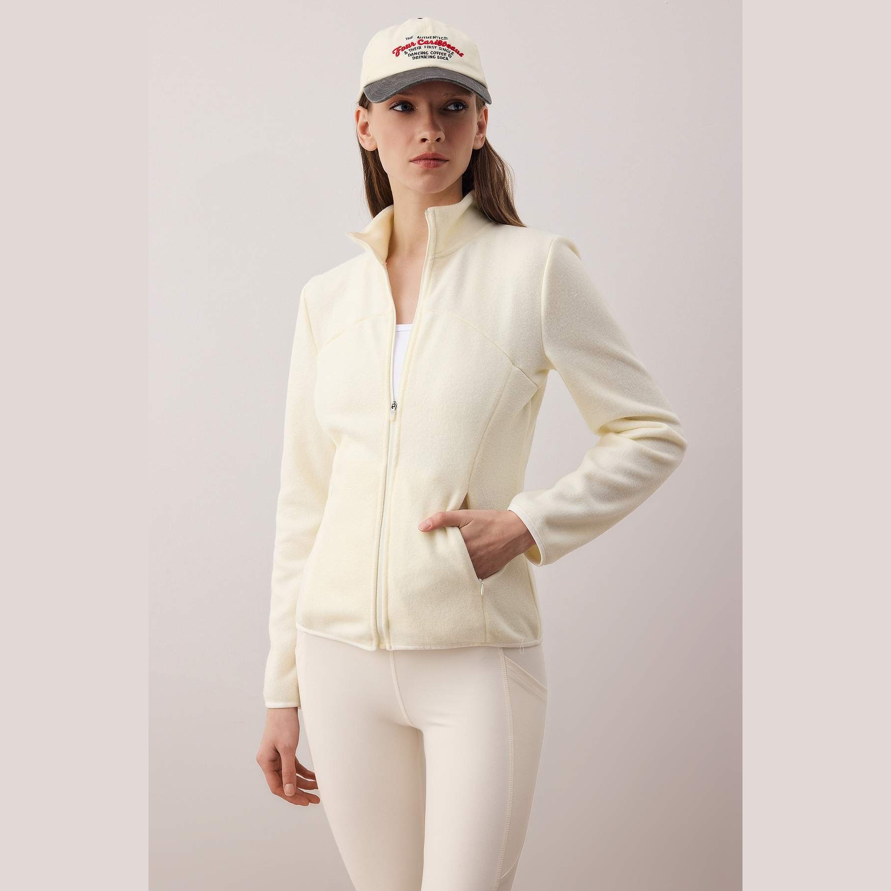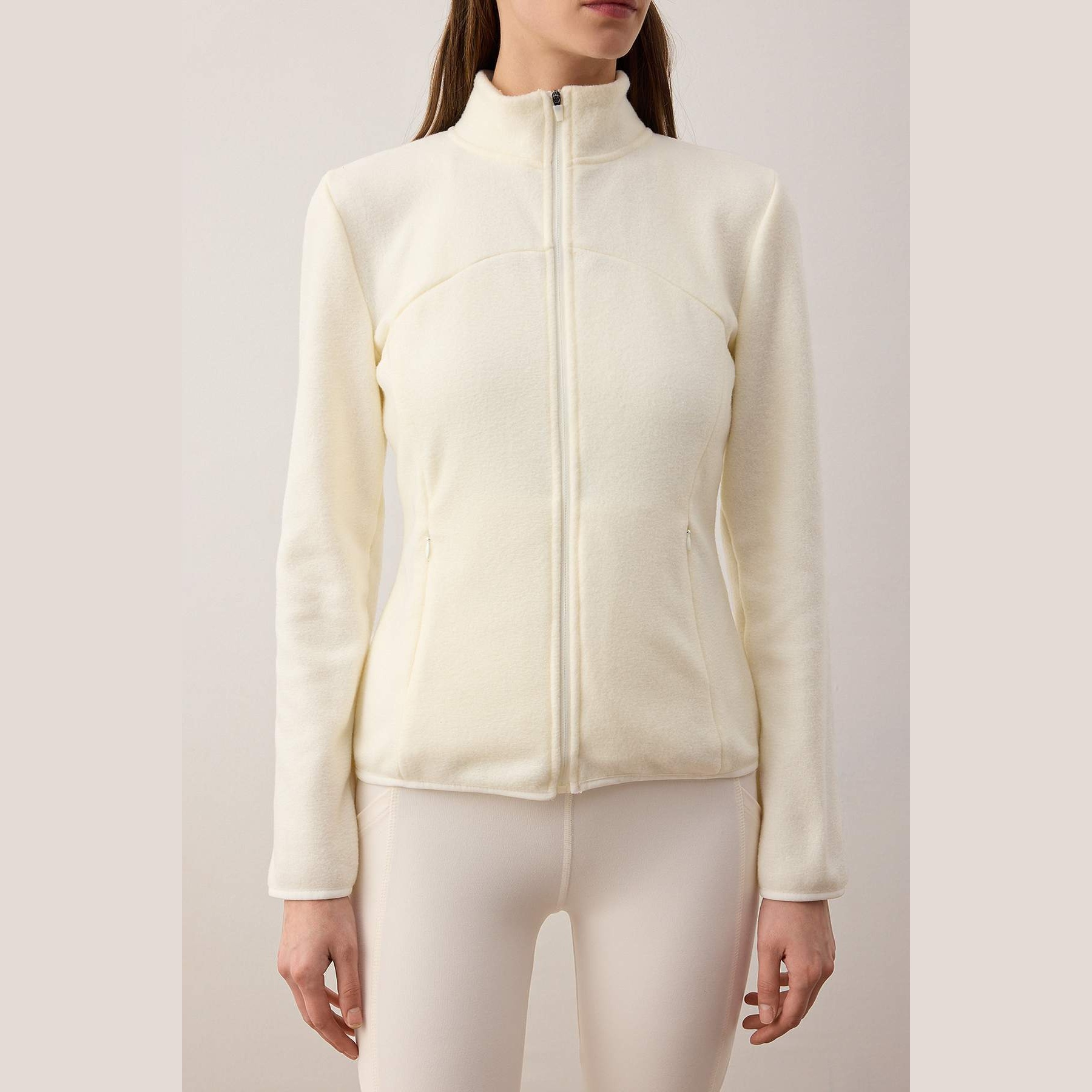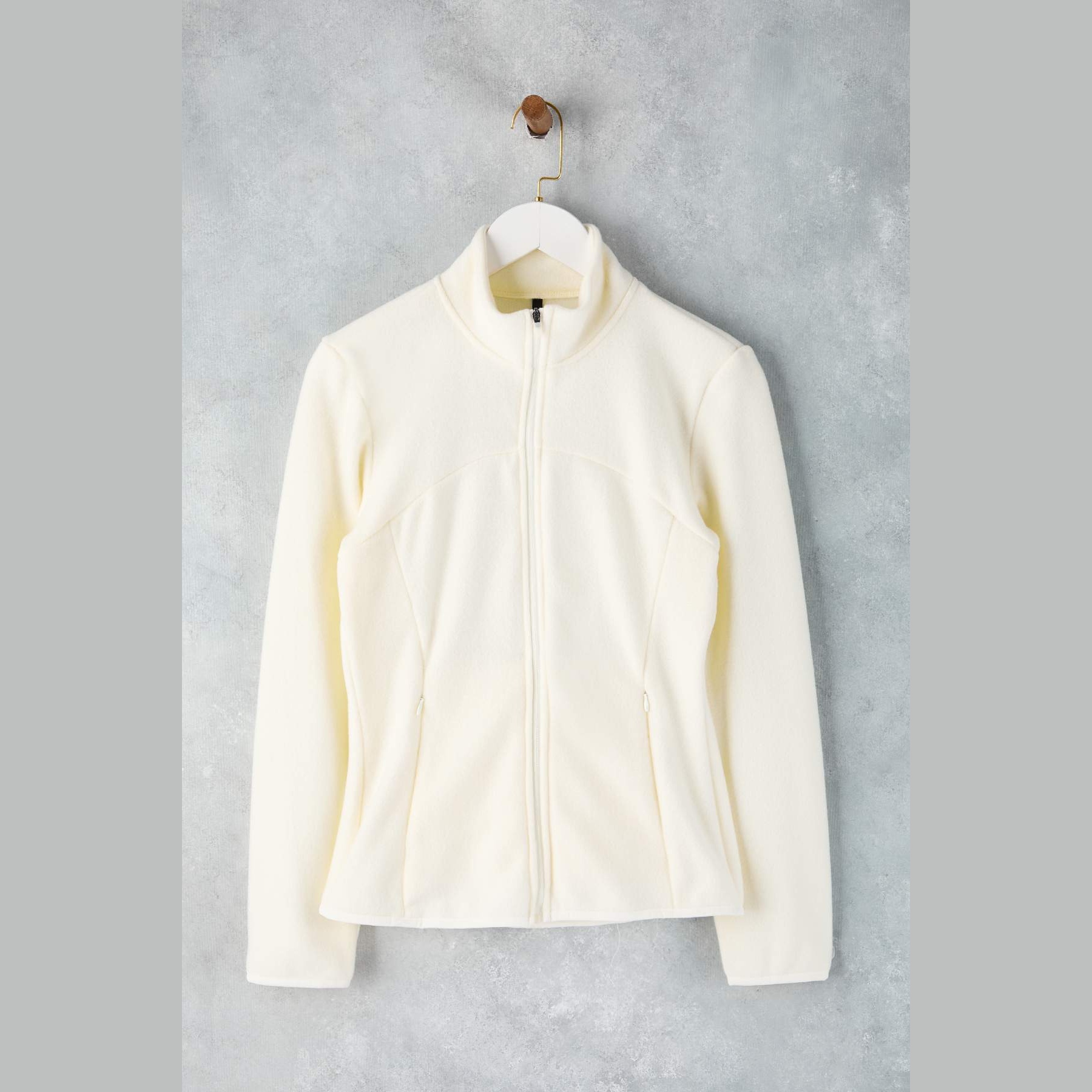 جاكيت رياضي نسائي – إكرُو من خامة بولار محاكة بقصة منتظمة (دفء ناعم وأناقة يومية)