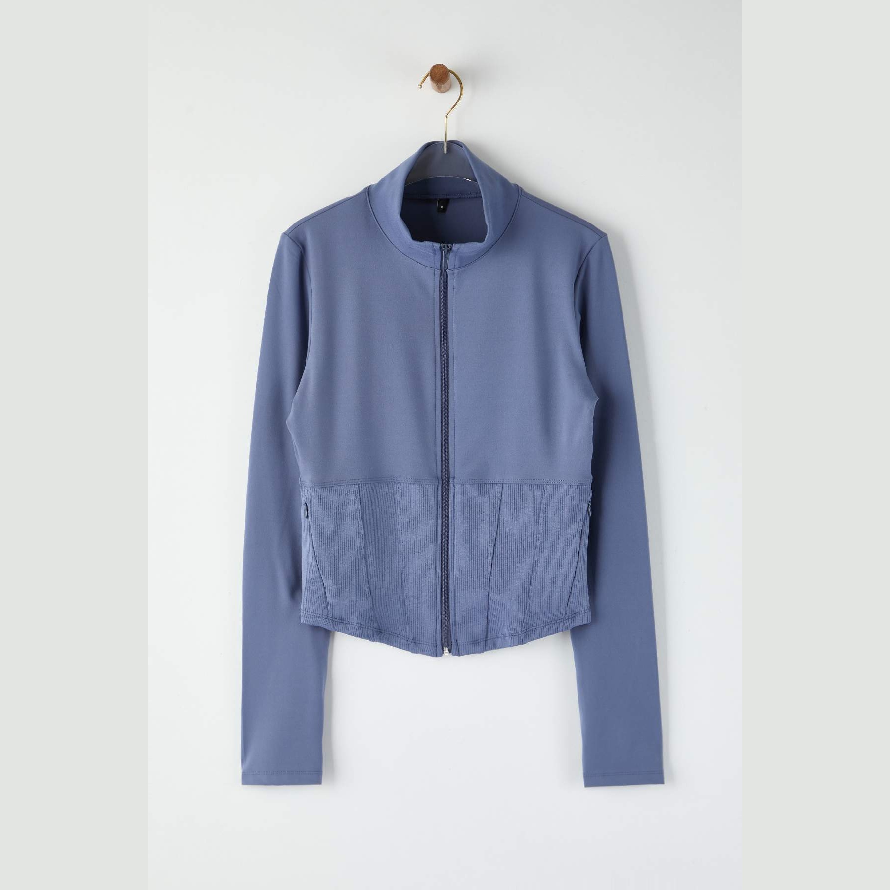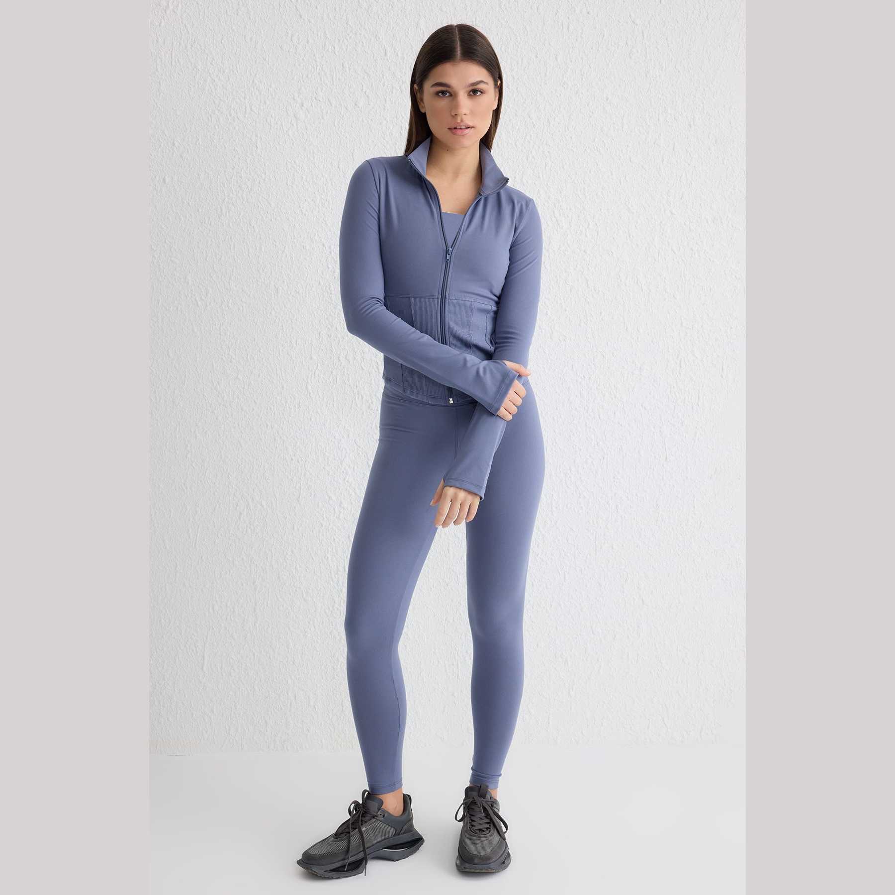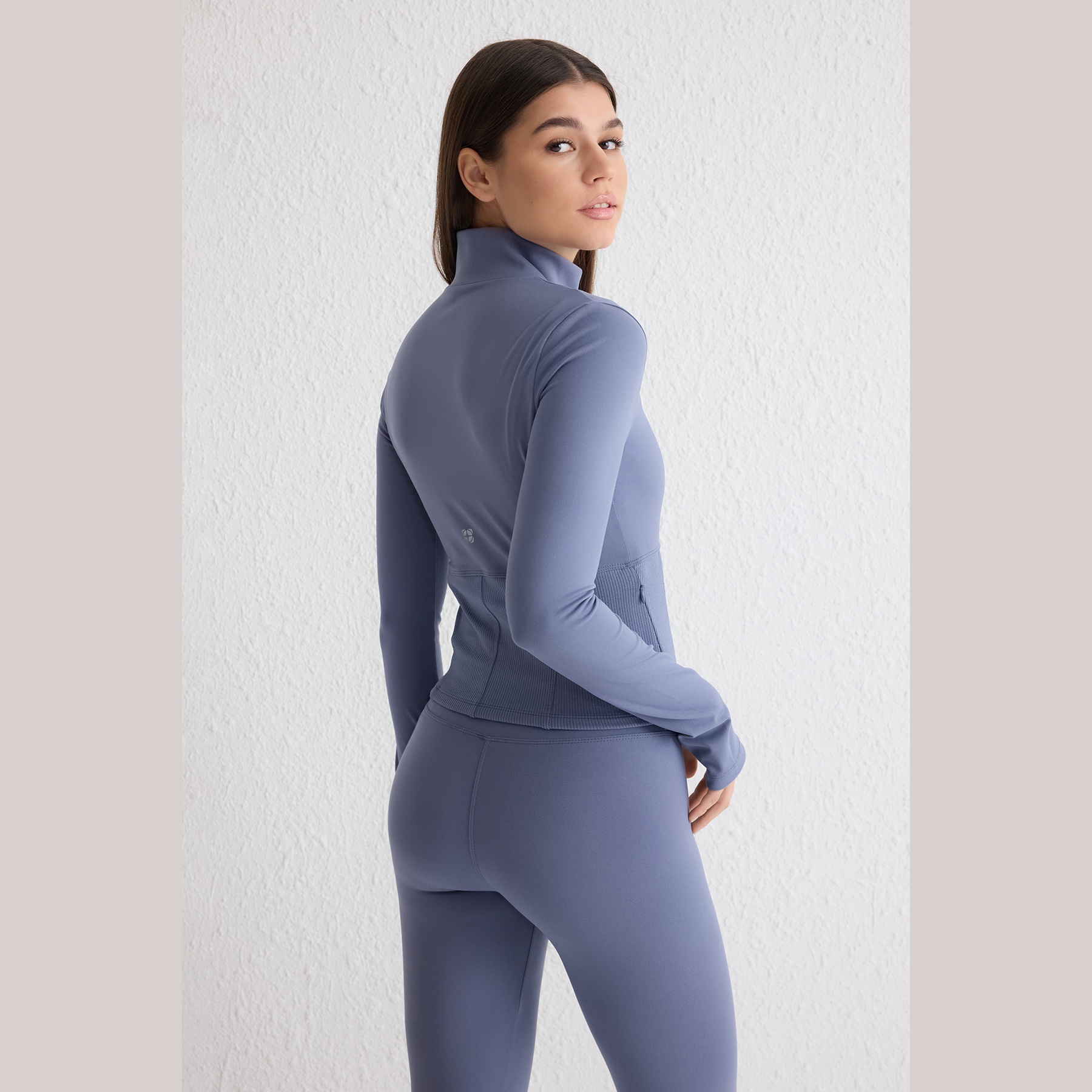 جاكيت رياضي بلون نيلي جذاب، مصنوع من خامة ناعمة فُرشَت بخفة لتمنحك دفئًا وراحة في جميع المواسم. يتميز بياقة عالية مغلقة، وأكمام طويلة مزودة بفتحة للإبهام لتثبيت الكم أثناء الحركة، مع قصة منتظمة وخامة محاكة مرنة، ما يجعله مثاليًا للأنشطة الرياضية أو الإطلالات اليومية المريحة.
