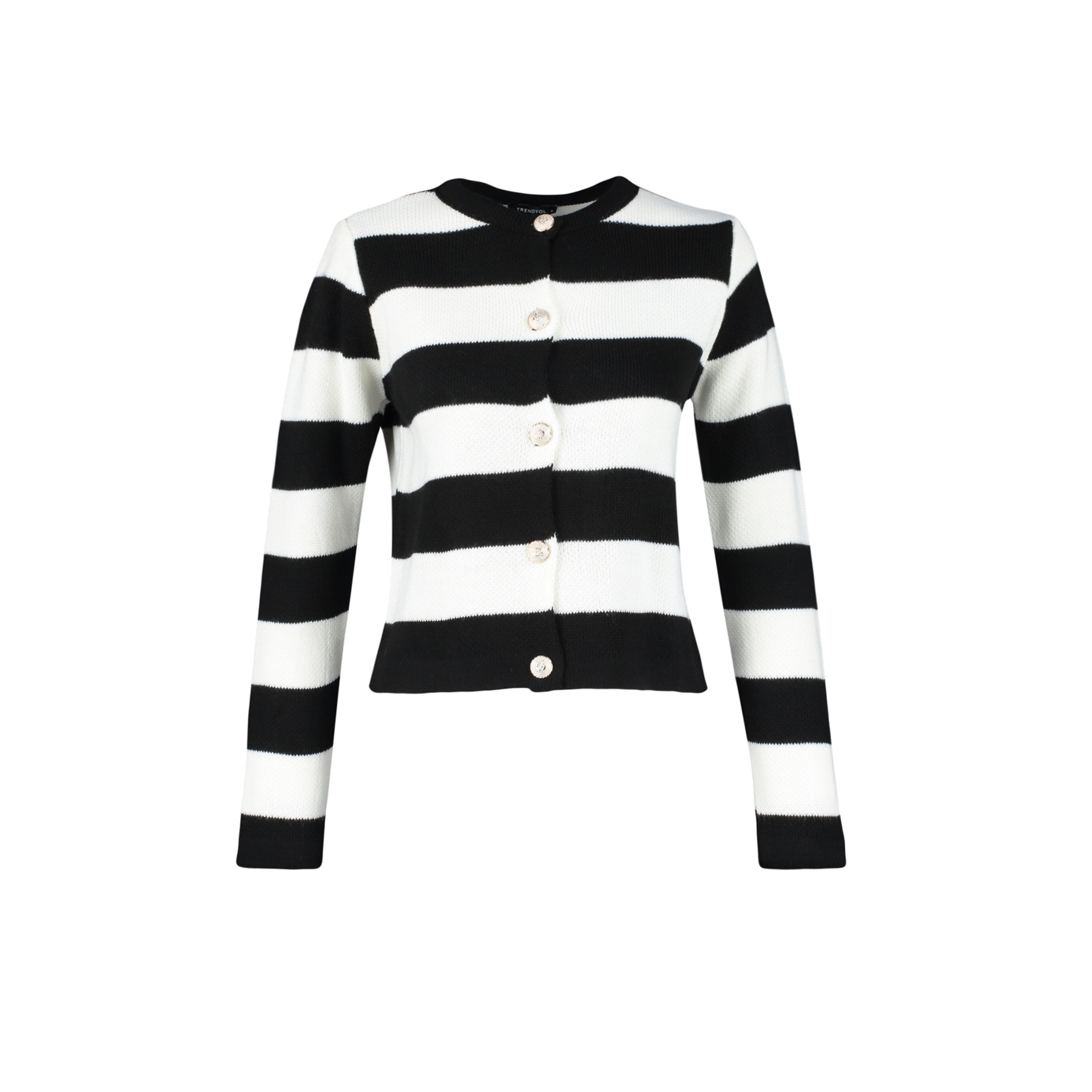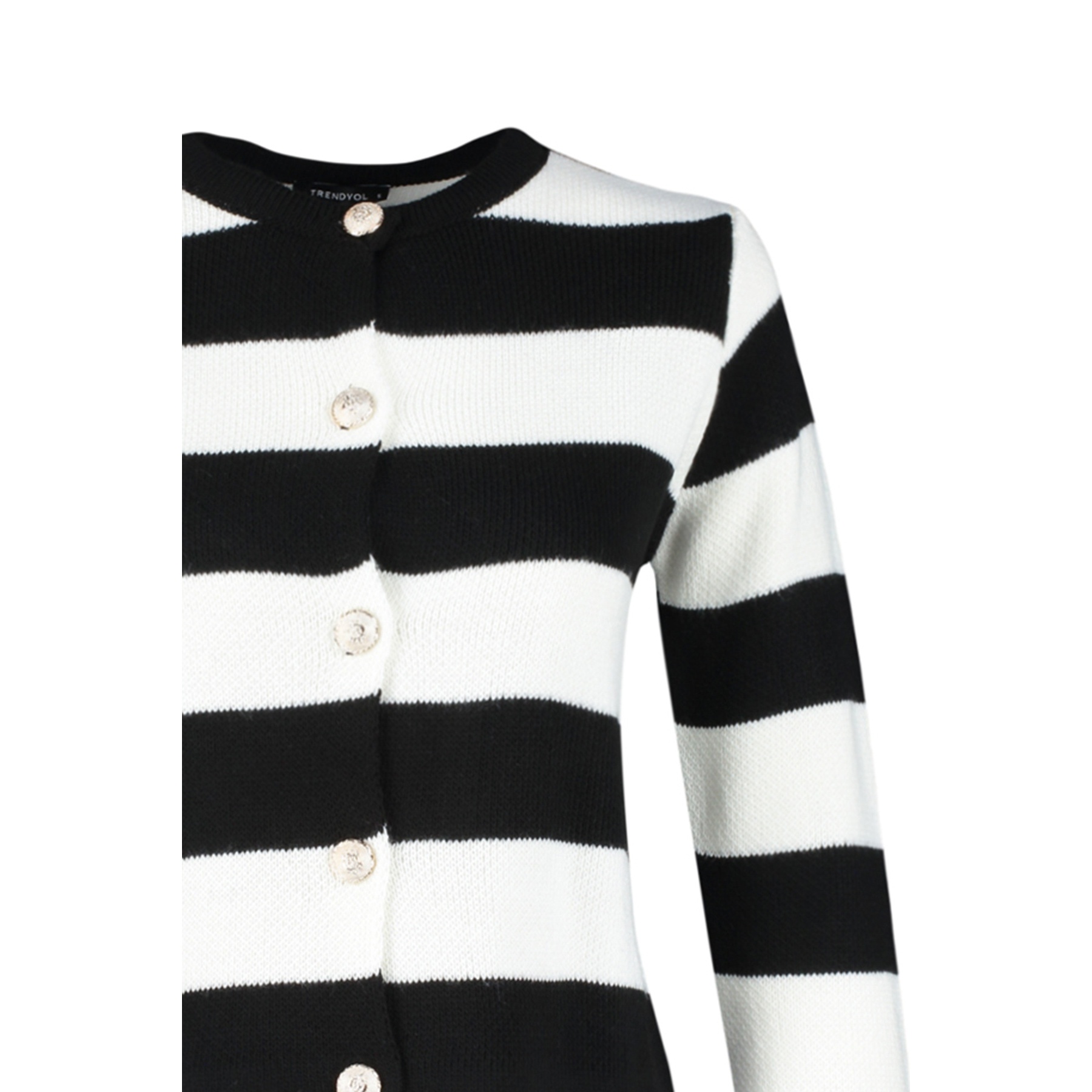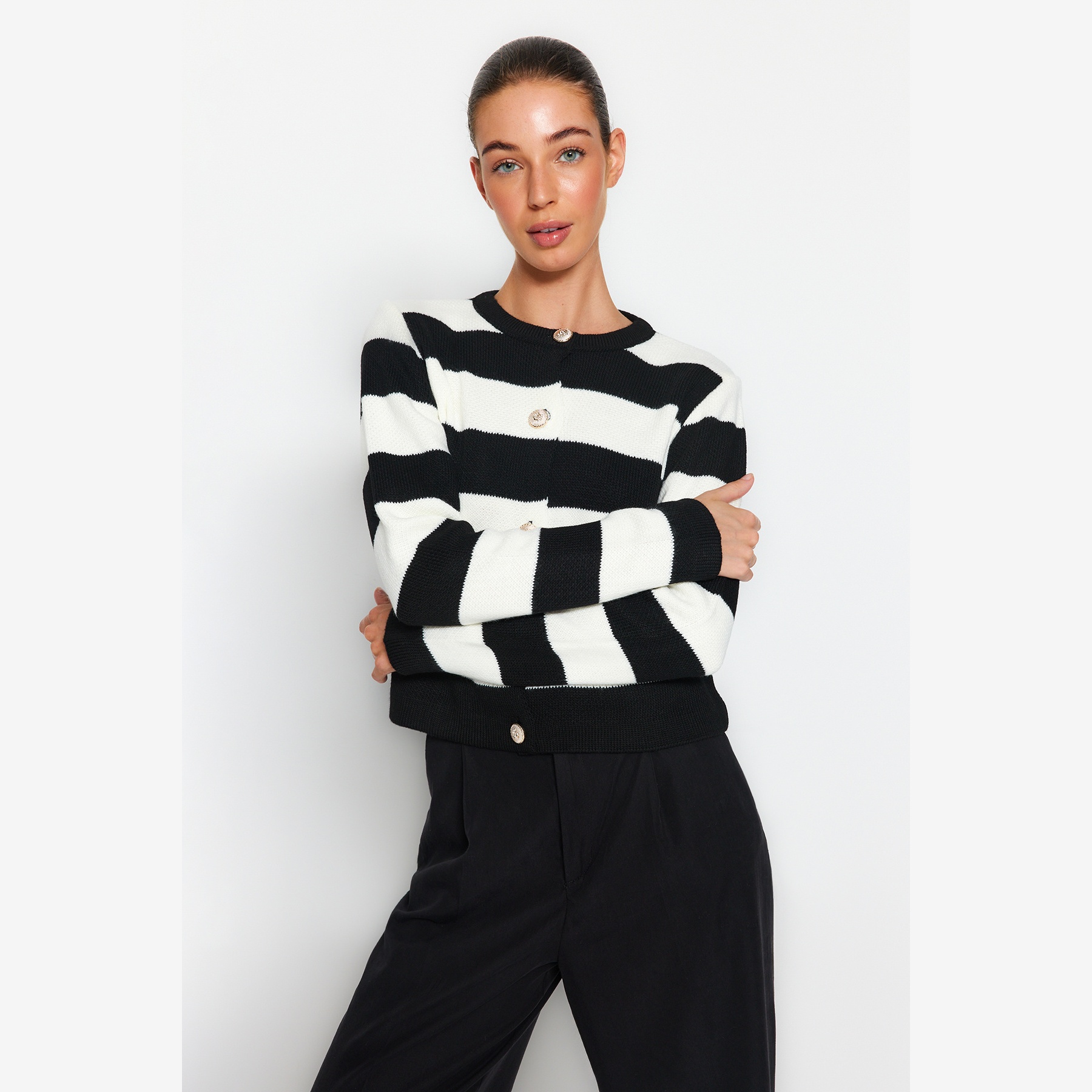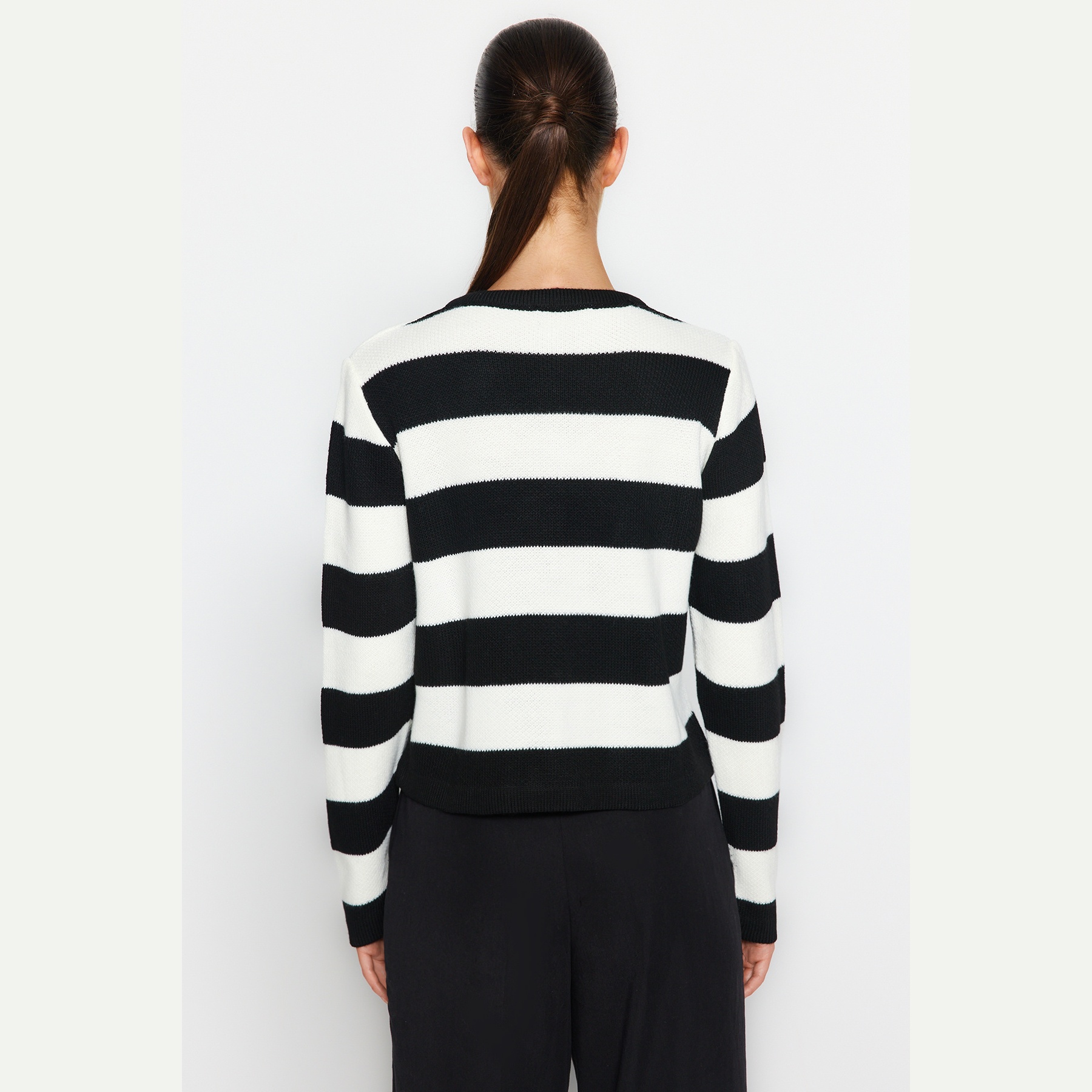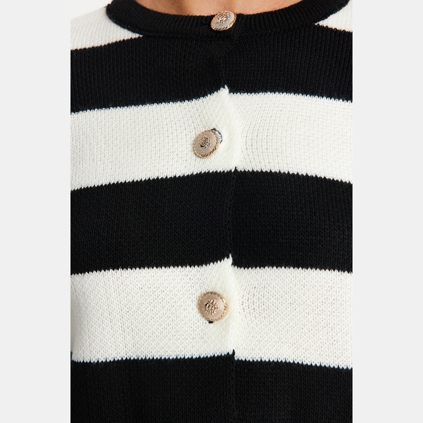 كارديغان نسائي – إكرو مخطط بتصميم يشبه الجاكيت (أسلوب كلاسيكي بلمسة عصرية)