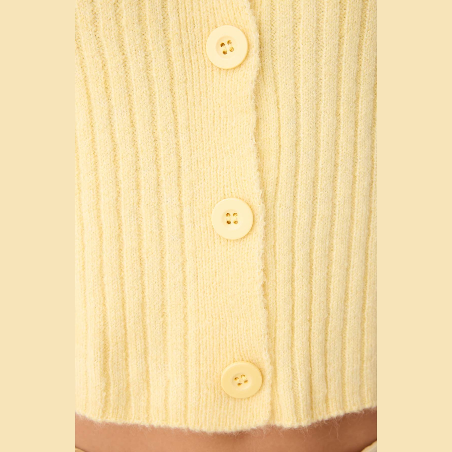 كارديغان نسائي – أصفر بقصة قصيرة وملمس ناعم وياقة عالية (إشراقة دافئة بلمسة عصرية)
