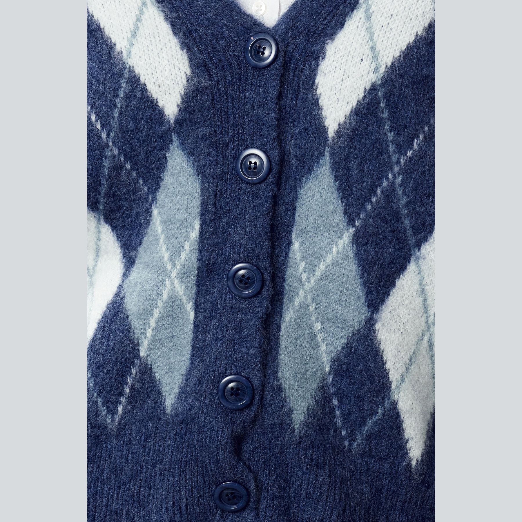 كارديغان نسائي – كحلي بملمس ناعم ونقشة إكوزيه وياقة V (دفء كلاسيكي بلمسة عصرية)