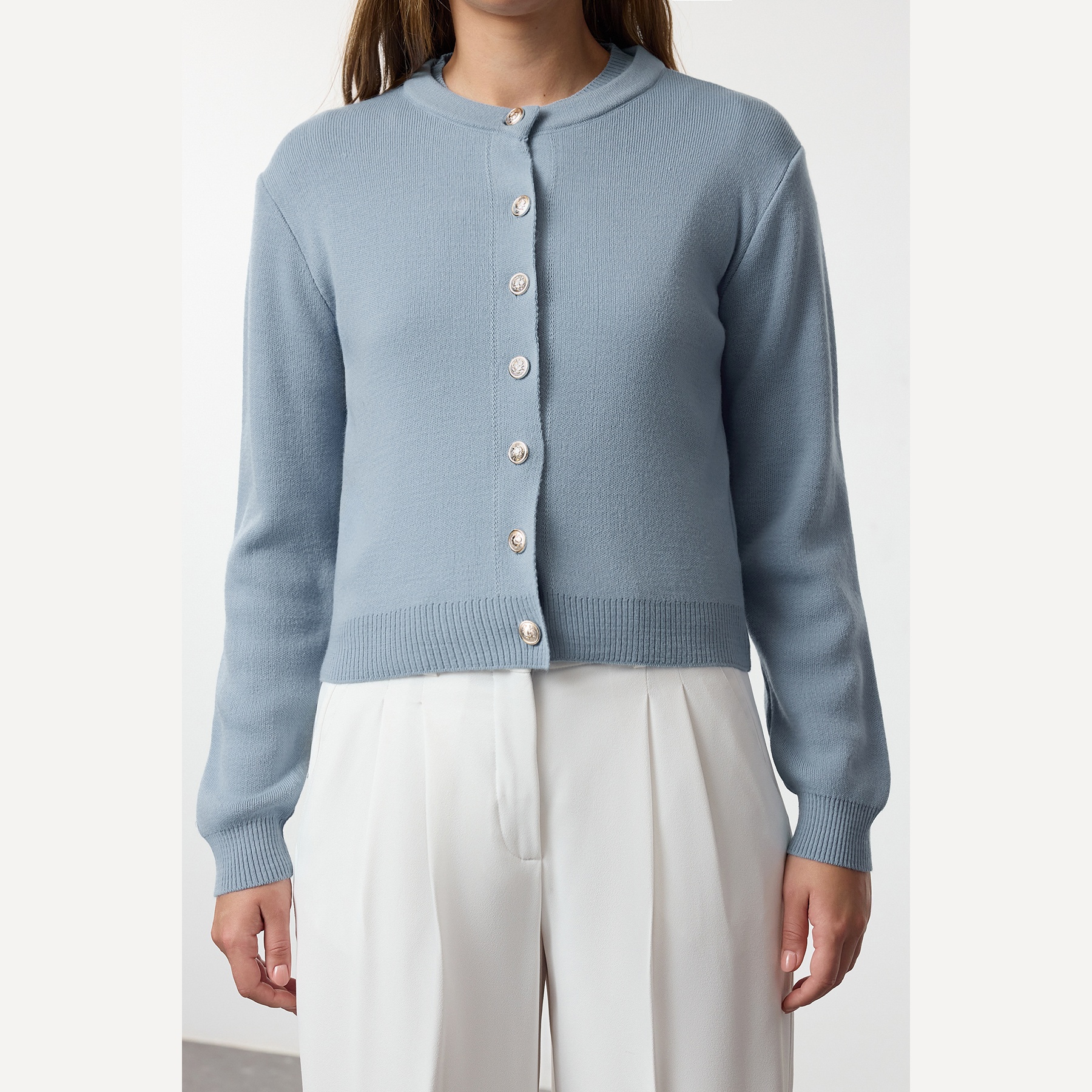 كارديغان نسائي – أزرق بتصميم أساسي وقصة منتظمة (بساطة دافئة بلمسة يومية)