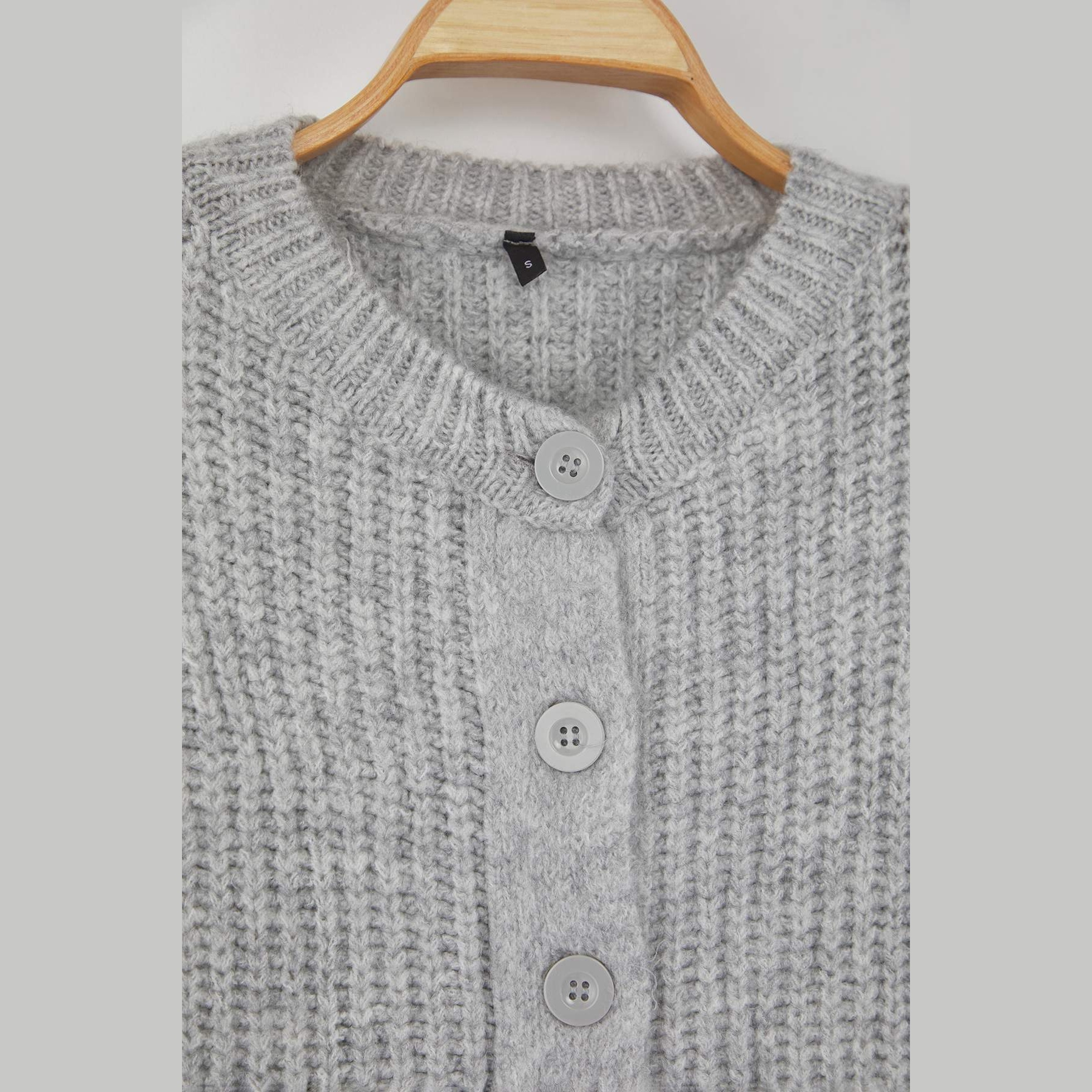 كارديغان نسائي – رمادي بملمس ناعم وتصميم أساسي (بساطة دافئة بلمسة عملية)