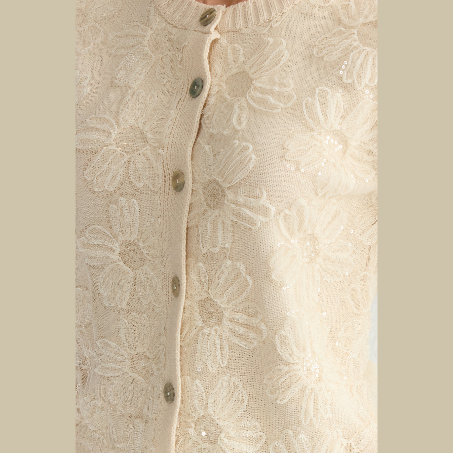 كارديغان نسائي – إكرو بنقشة زهور من التول وقصة منتظمة (أنوثة ناعمة بلمسة فنية)