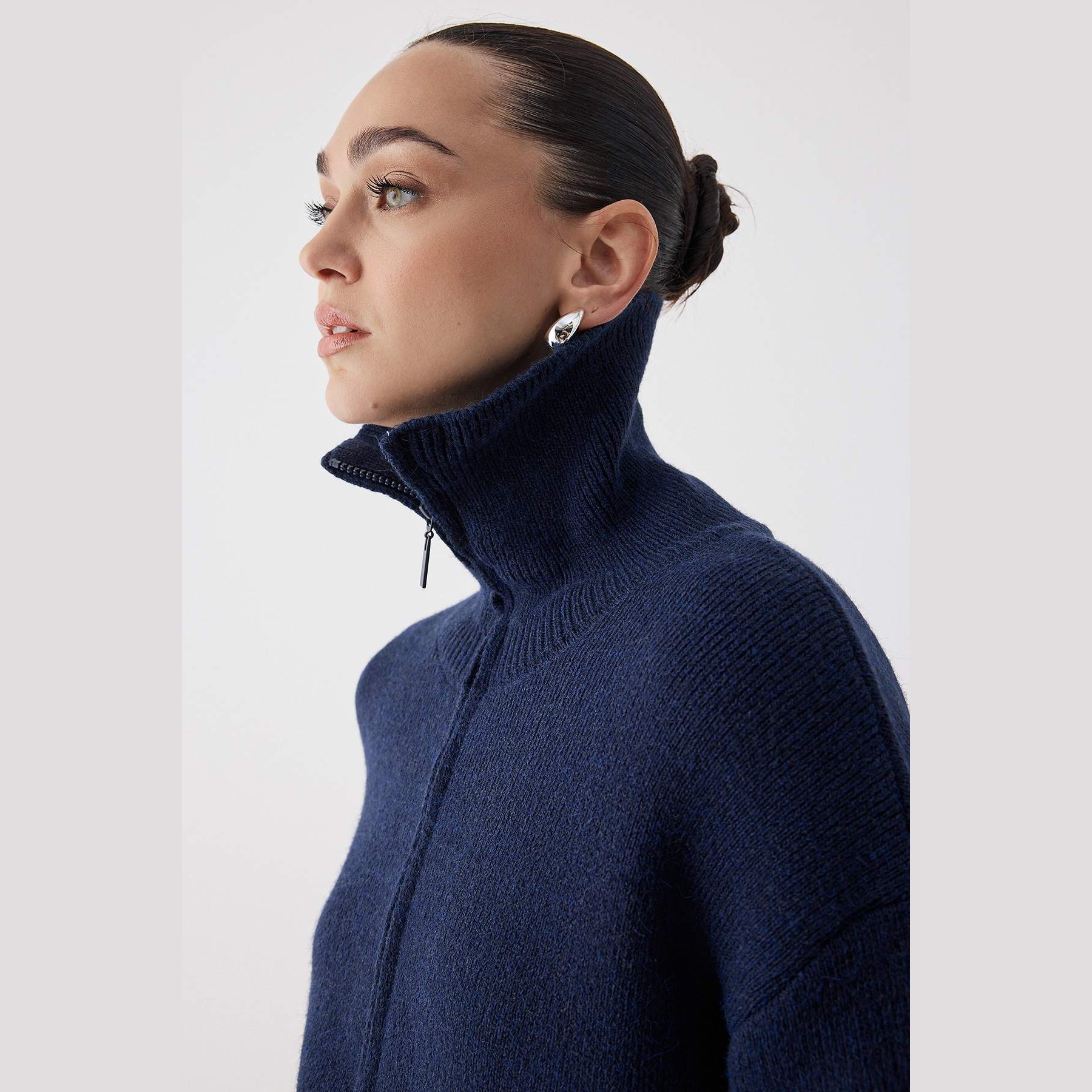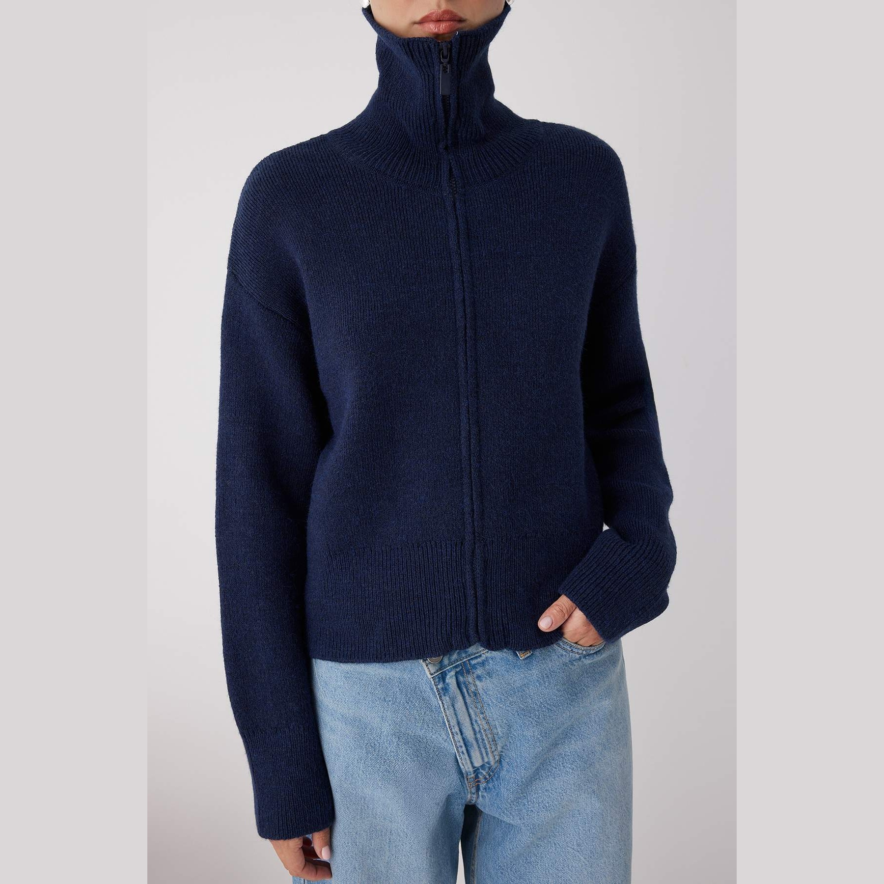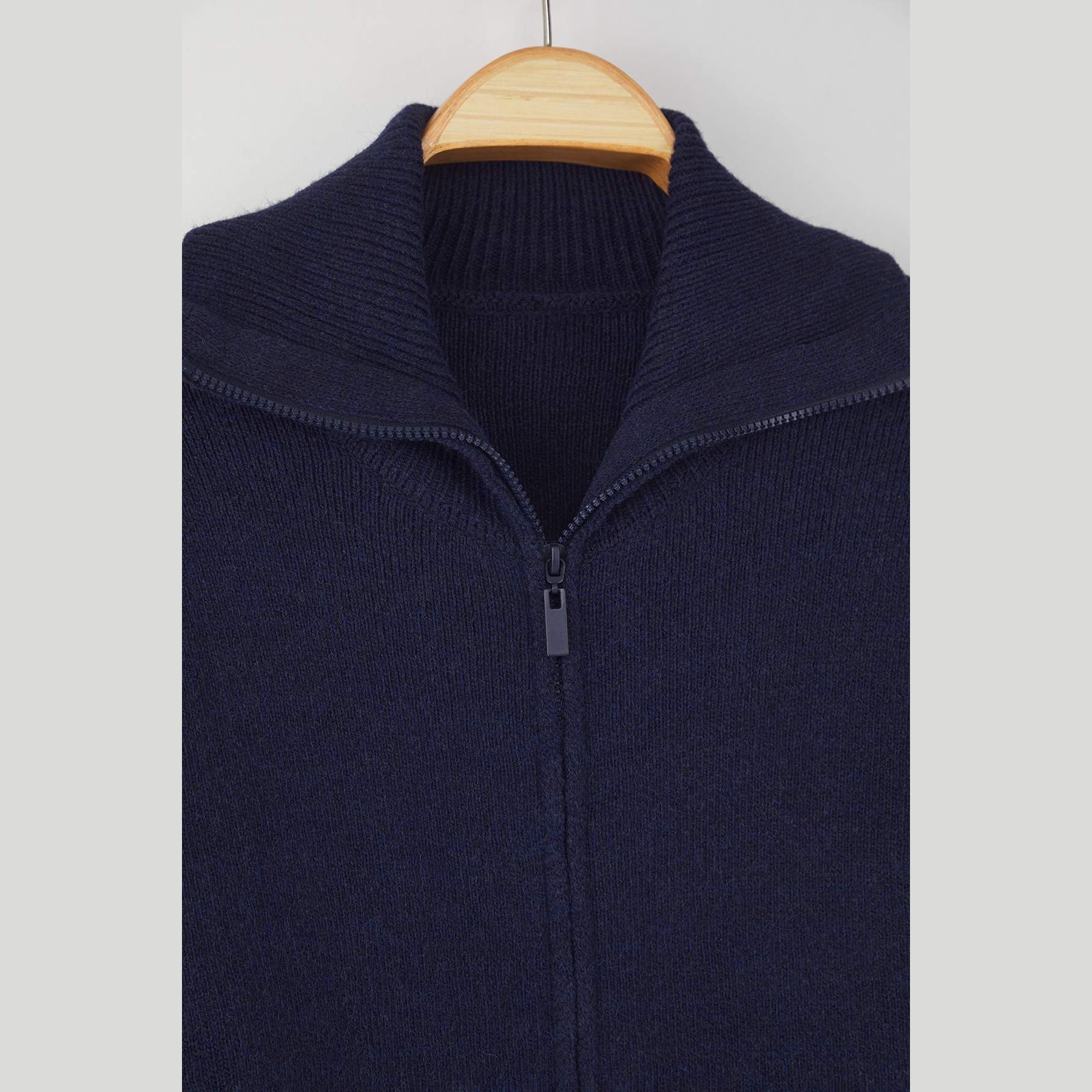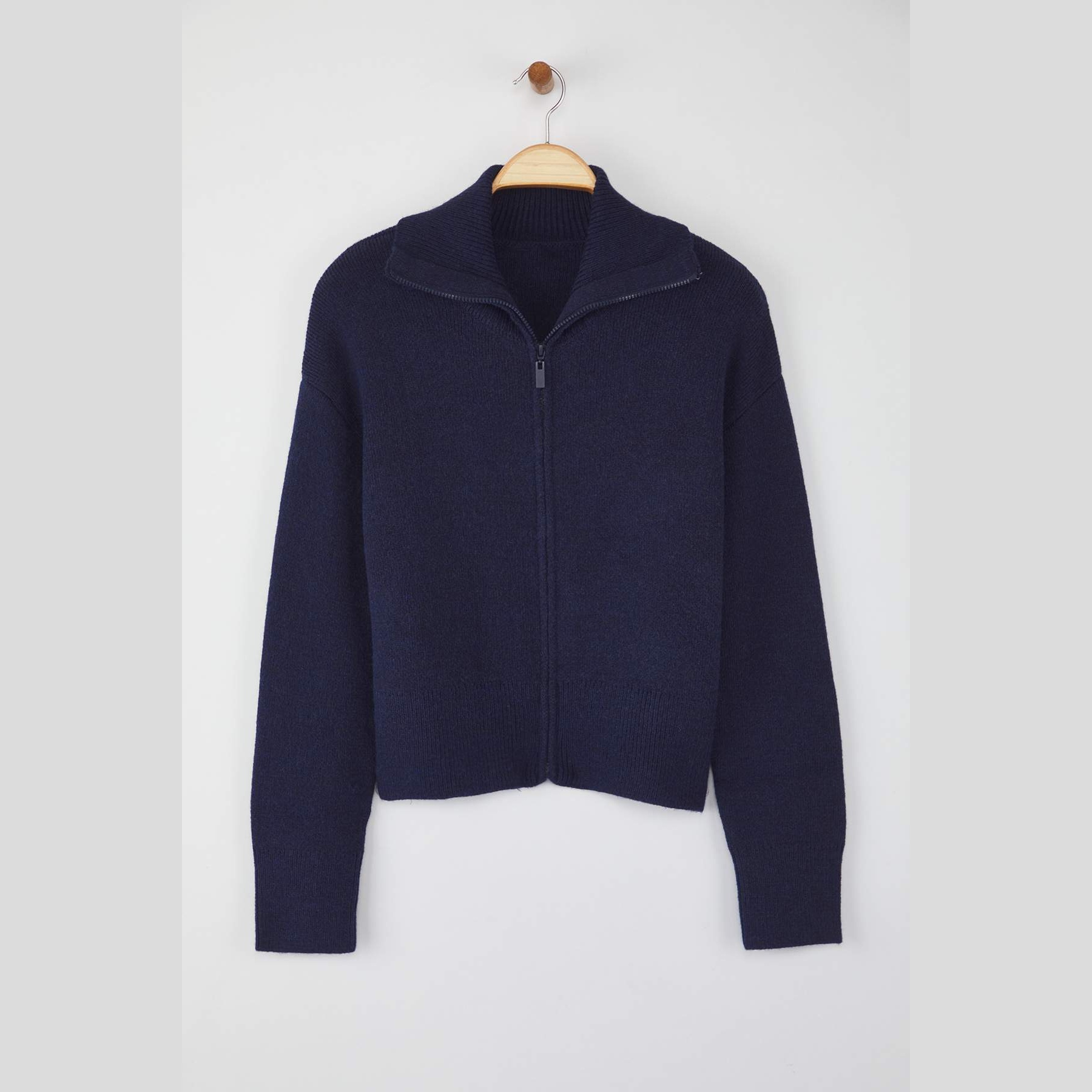 كارديغان نسائي – كحلي بملمس ناعم وسحاب أمامي وقصة واسعة (دفء عملي بلمسة أنيقة)