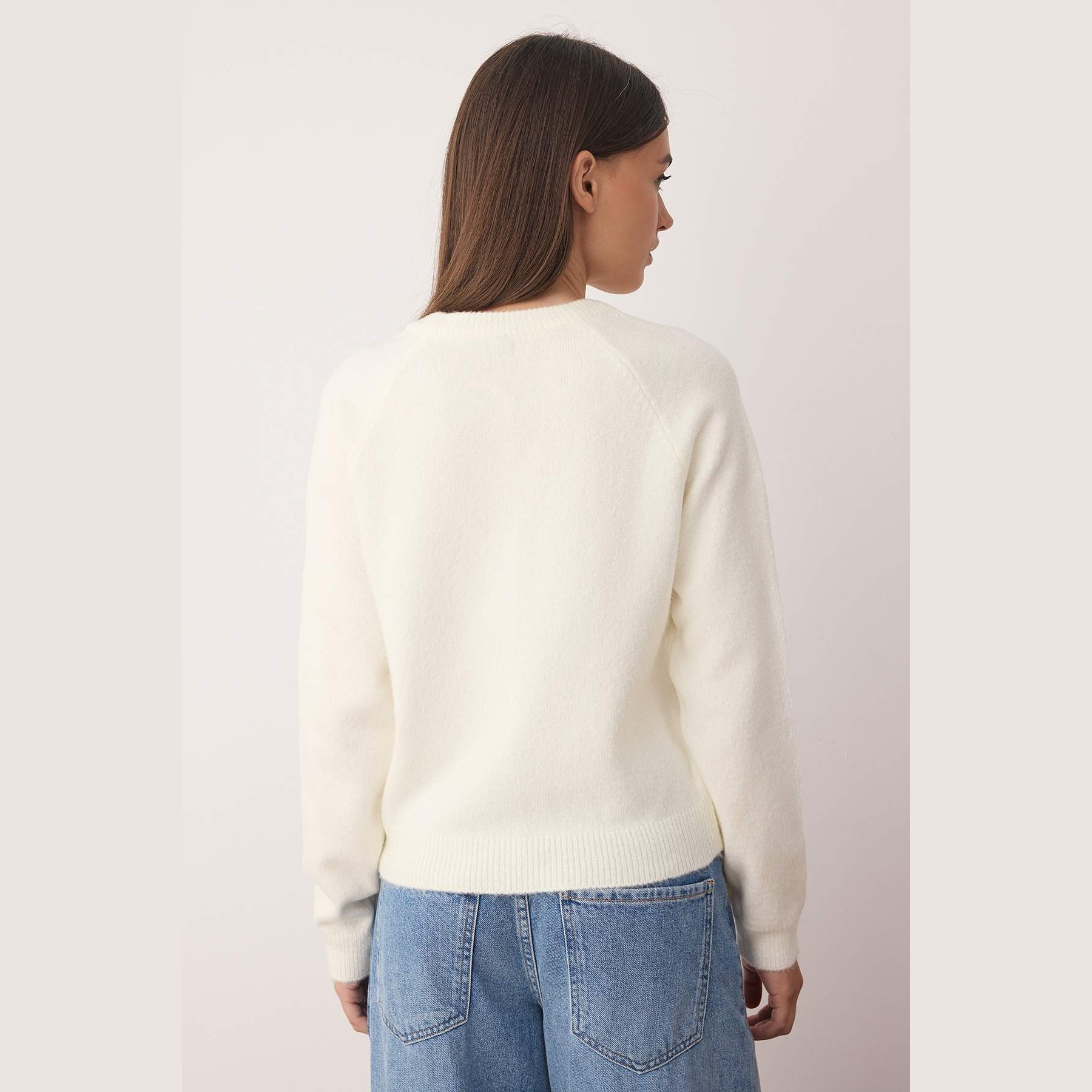 كارديغان نسائي بلون إكرو حيادي، مصنوع من خامة تريكو محاكة بتركيبة مزدوجة من الأكريليك والبوليستر، يتميز بملمس متوسط السماكة وتفاصيل كرز زخرفية تضيف لمسة مرحة وأنثوية. يأتي بقصة منتظمة (Regular) وياقة دائرية (Bisiklet Yaka) وأكمام طويلة بتصميم كتف منخفض، ما يجعله خيارًا مثاليًا للإطلالات اليومية في فصل الشتاء.