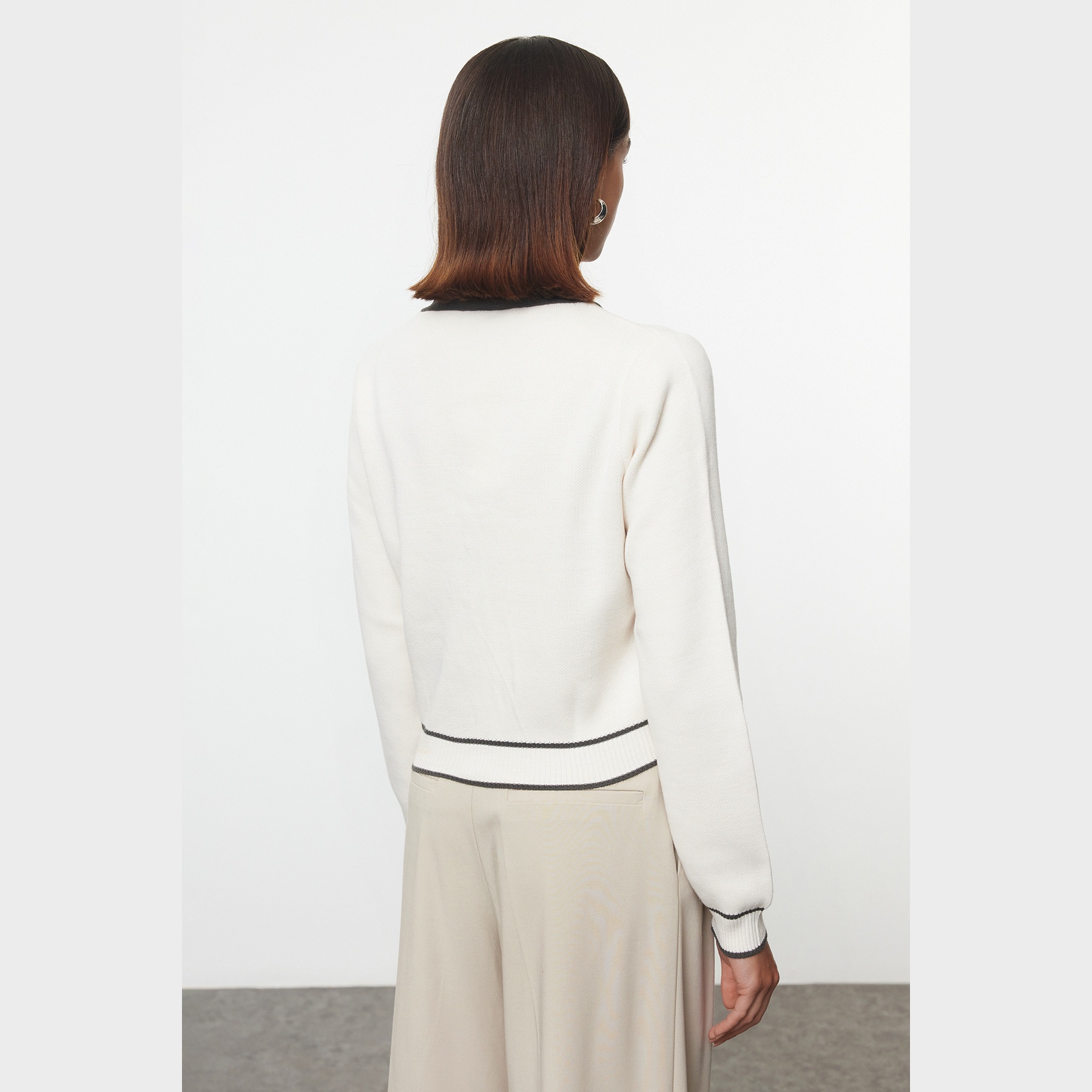 - الياقة: V