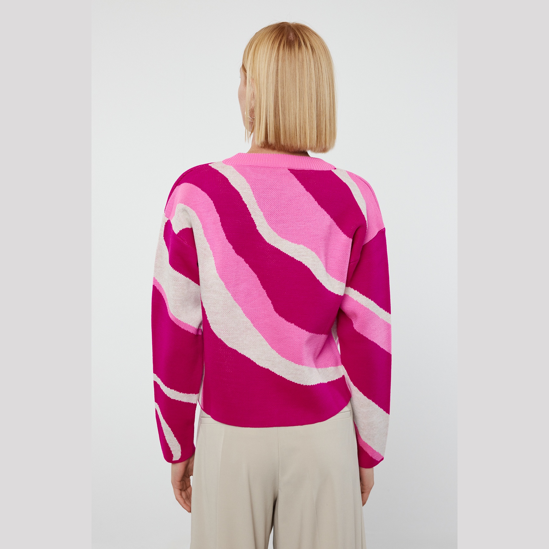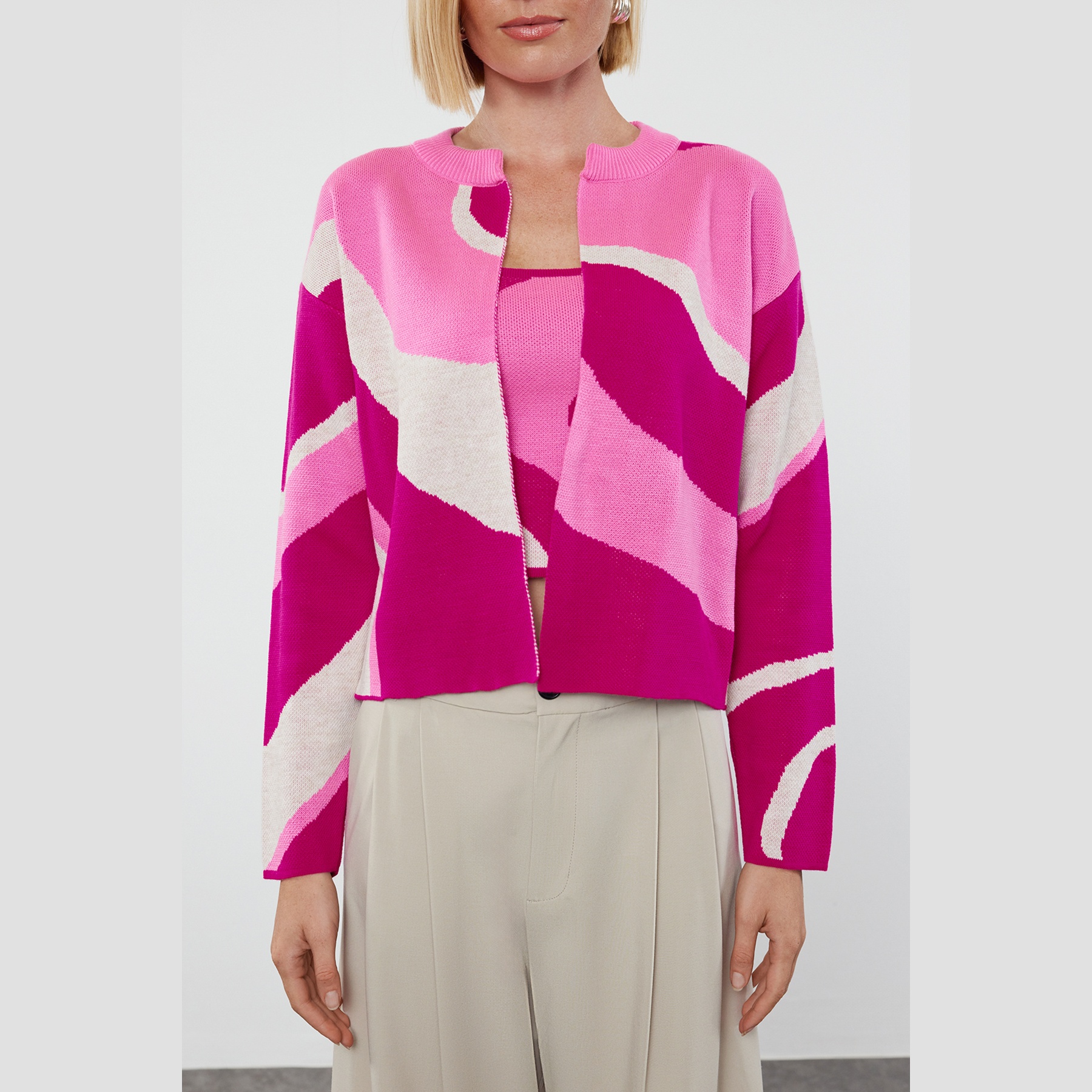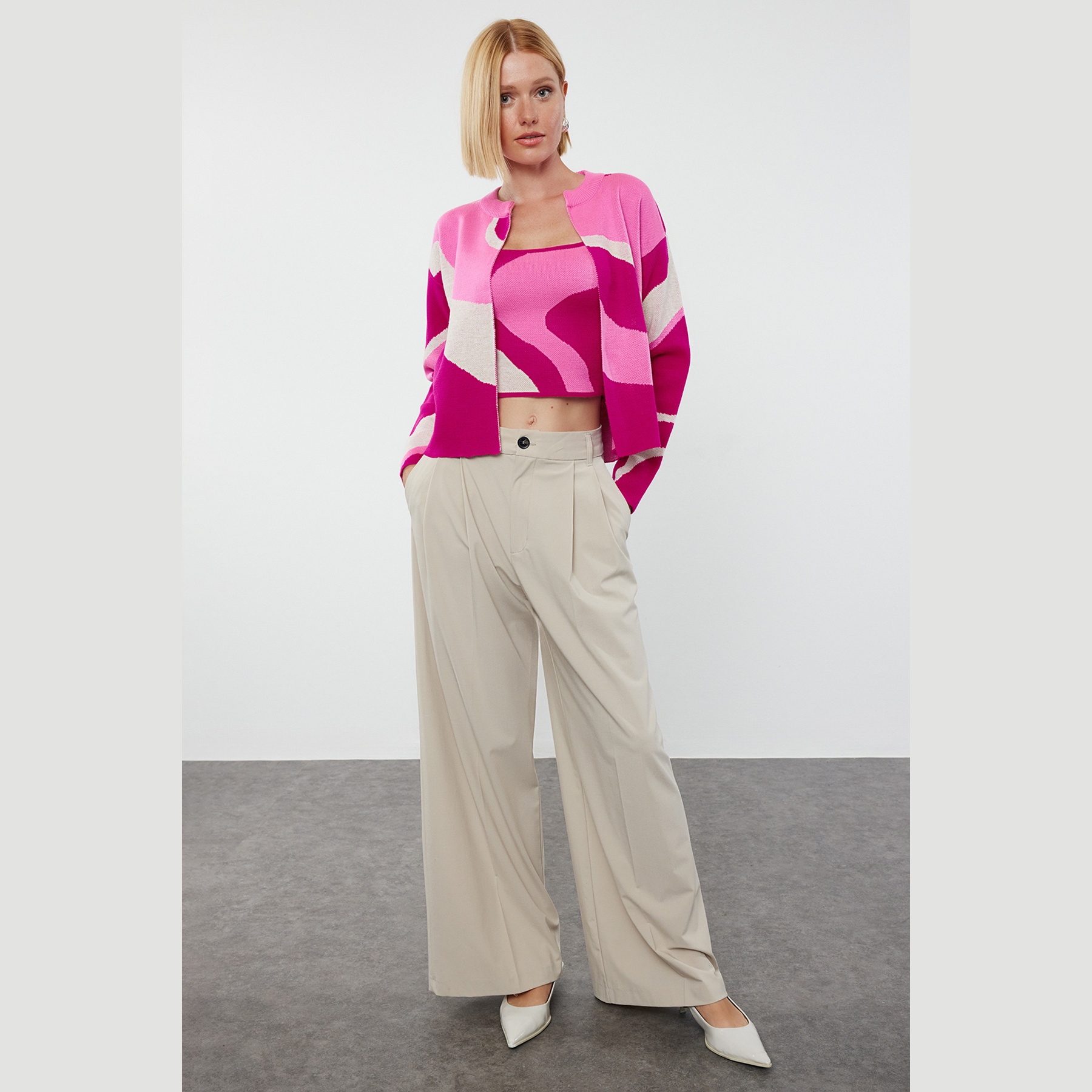 طقم نسائي مكون من بلوزة داخلية بدون أكمام وهُرْكة خارجية طويلة، مصنوع بالكامل من خامة تريكو محاكة من الأكريليك، يتميز بملمس متوسط السماكة ونقشة لونية متباينة تضيف طابعًا عصريًا. مناسب للإطلالات اليومية في مواسم الانتقال، ويمنح تنسيقًا جاهزًا يجمع بين الراحة والأناقة.