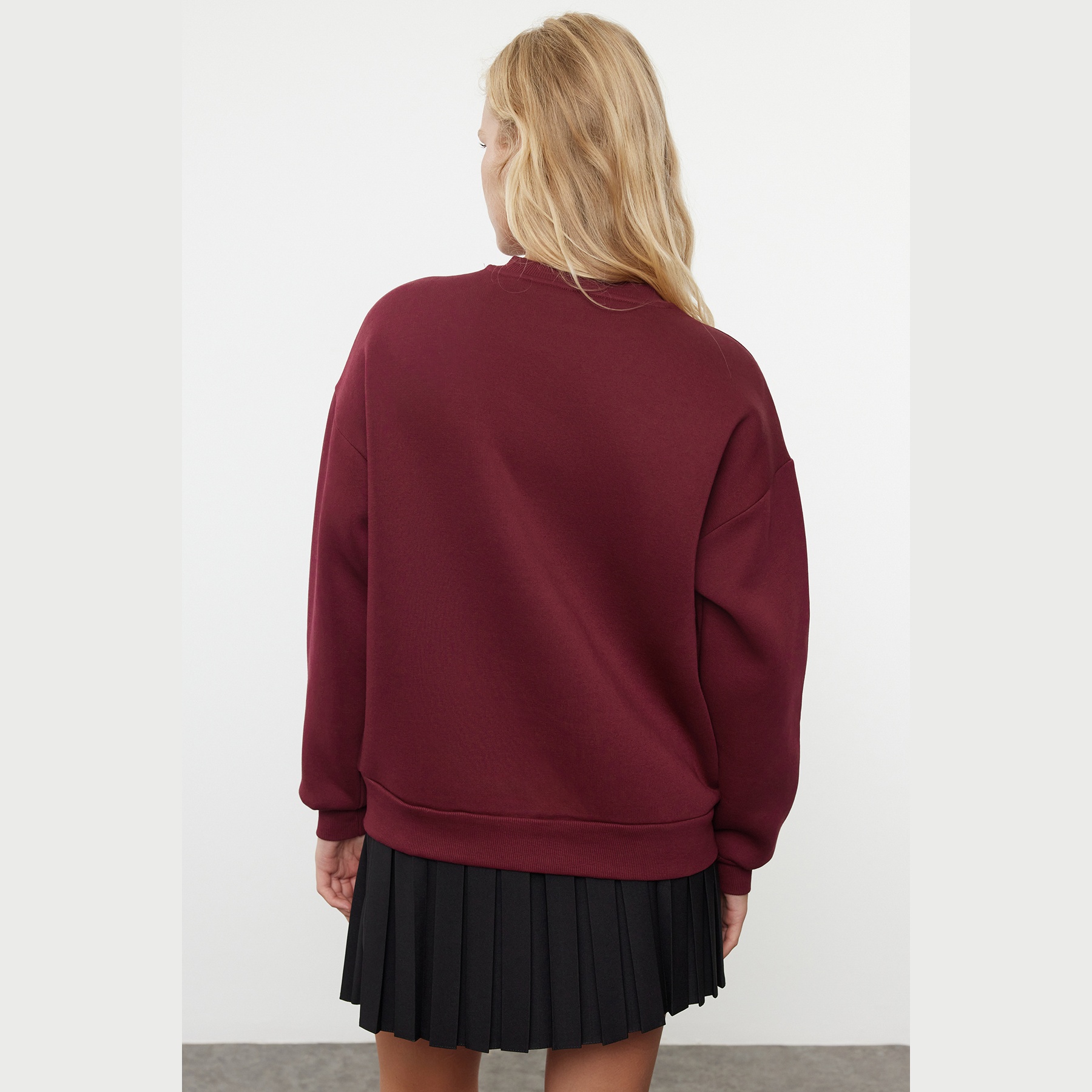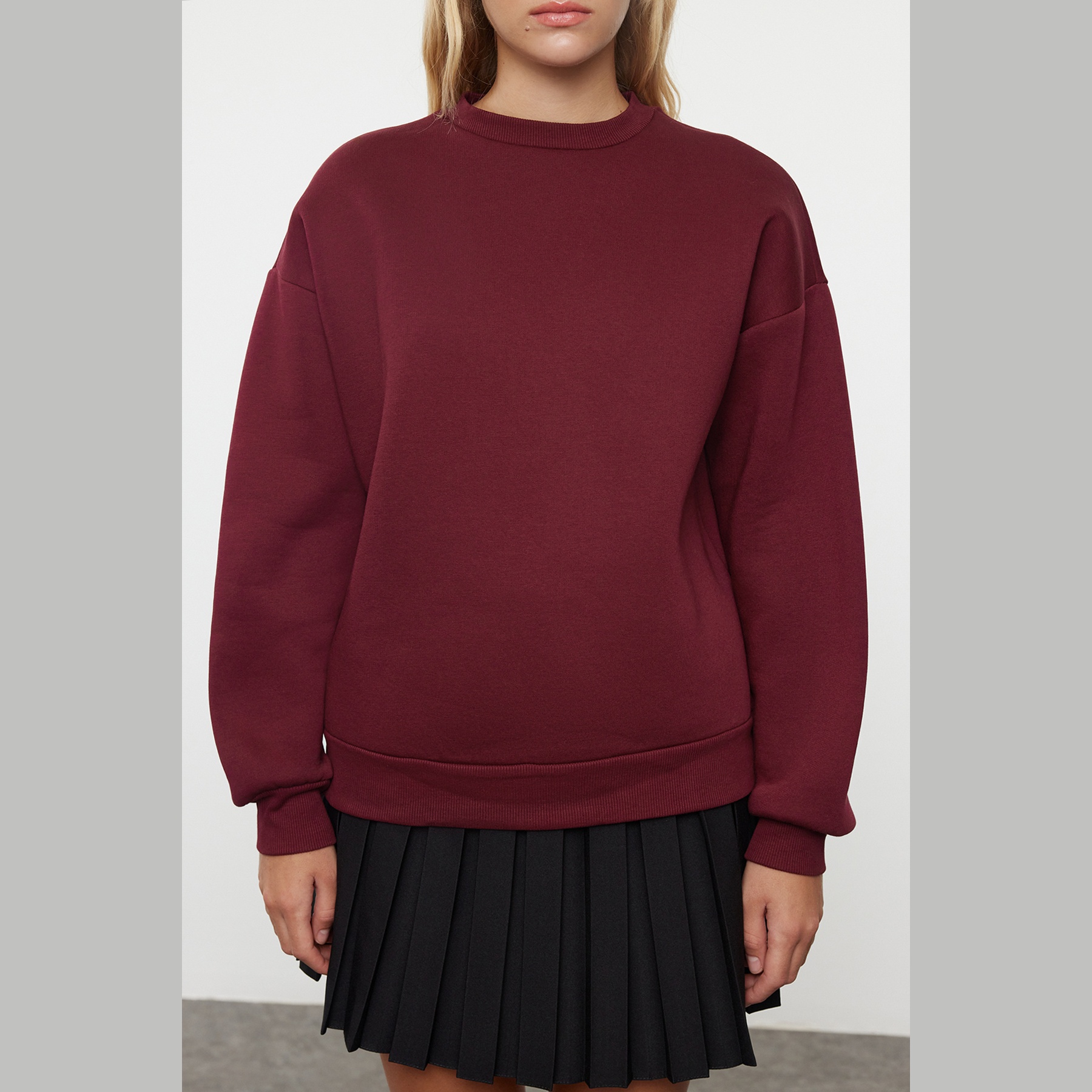 سويت شيرت نسائي – بوردو بقصة واسعة وياقة دائرية (راحة شتوية بإطلالة عملية وعصرية)