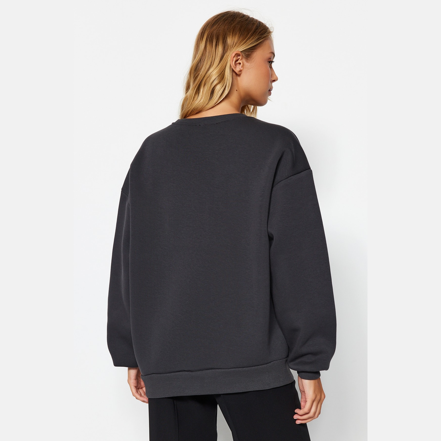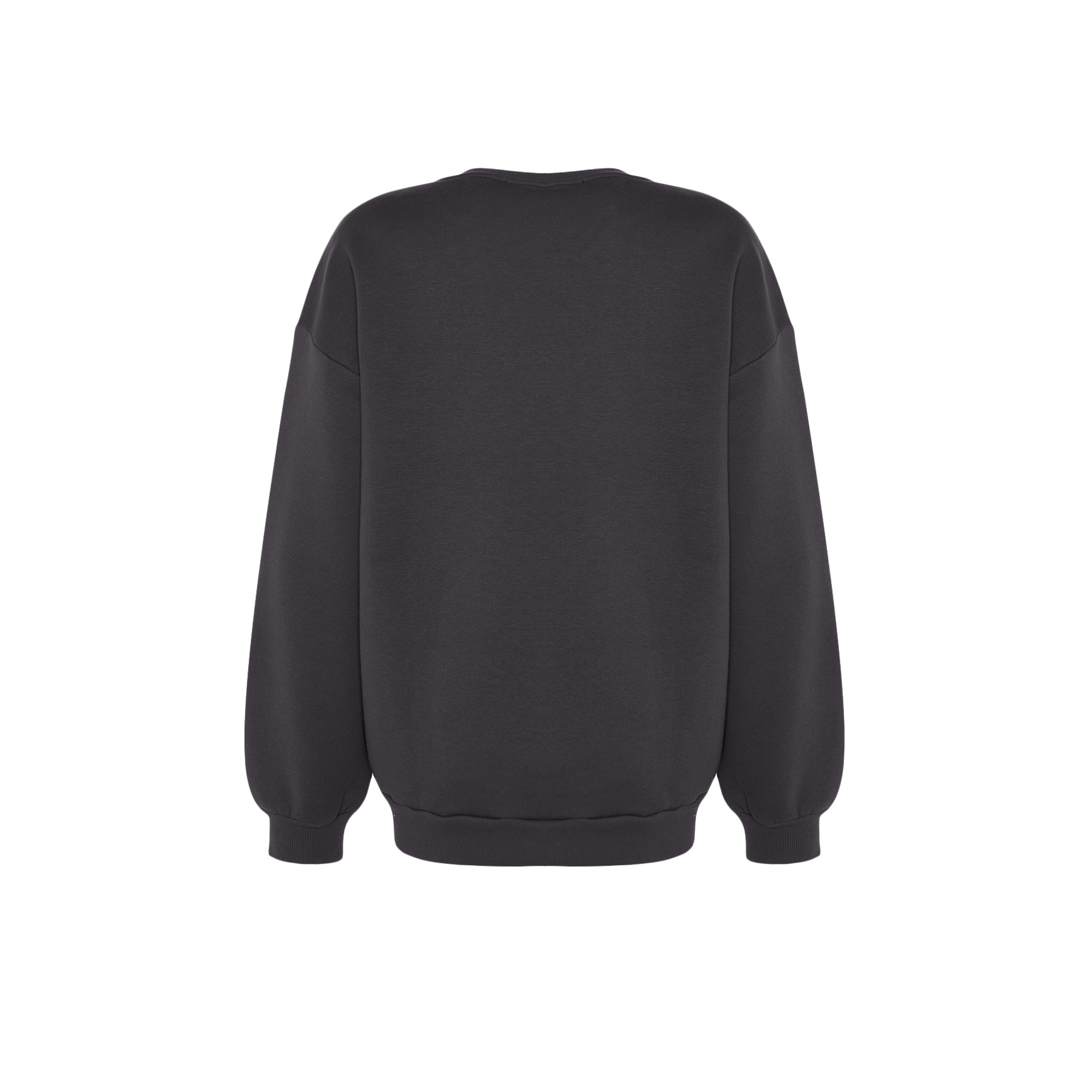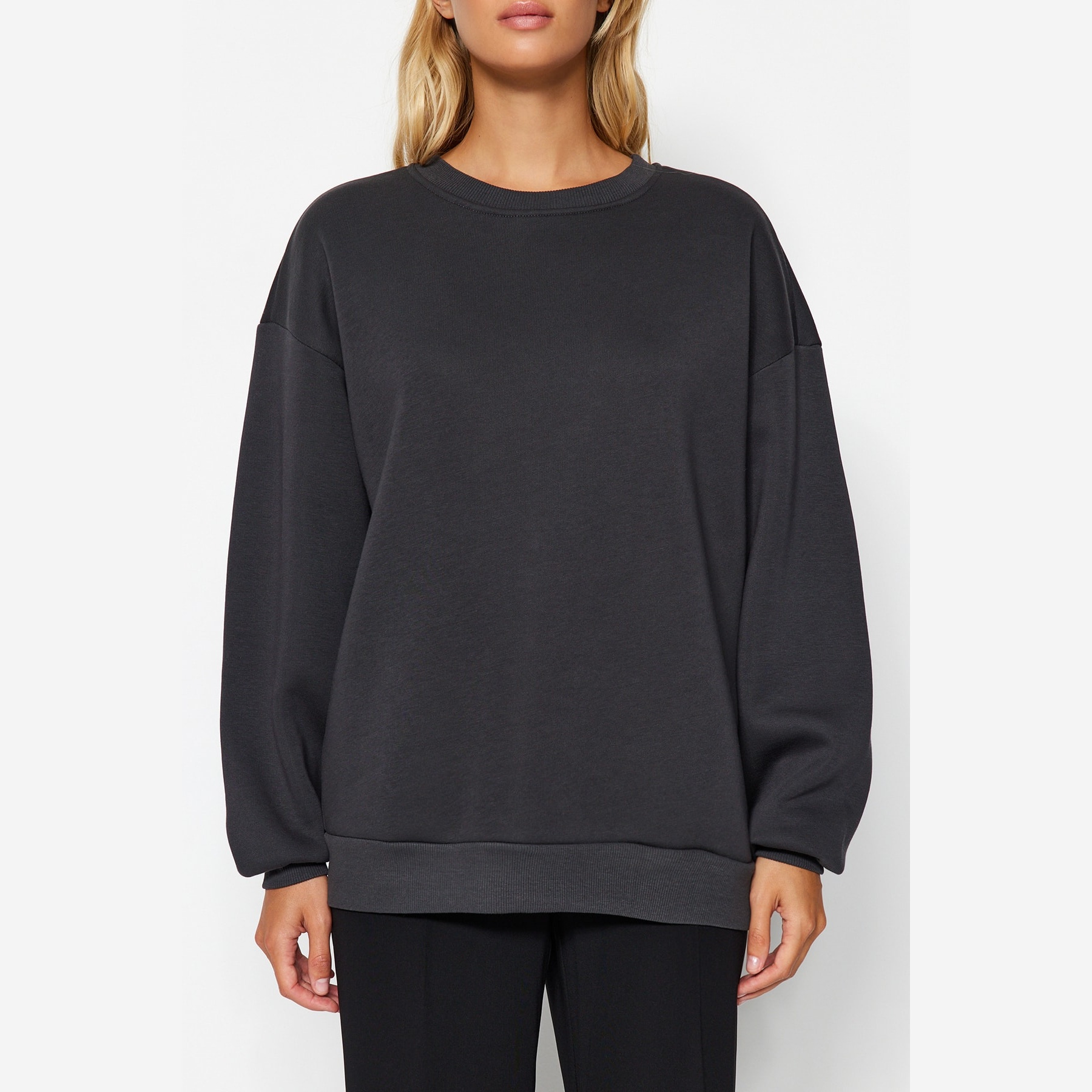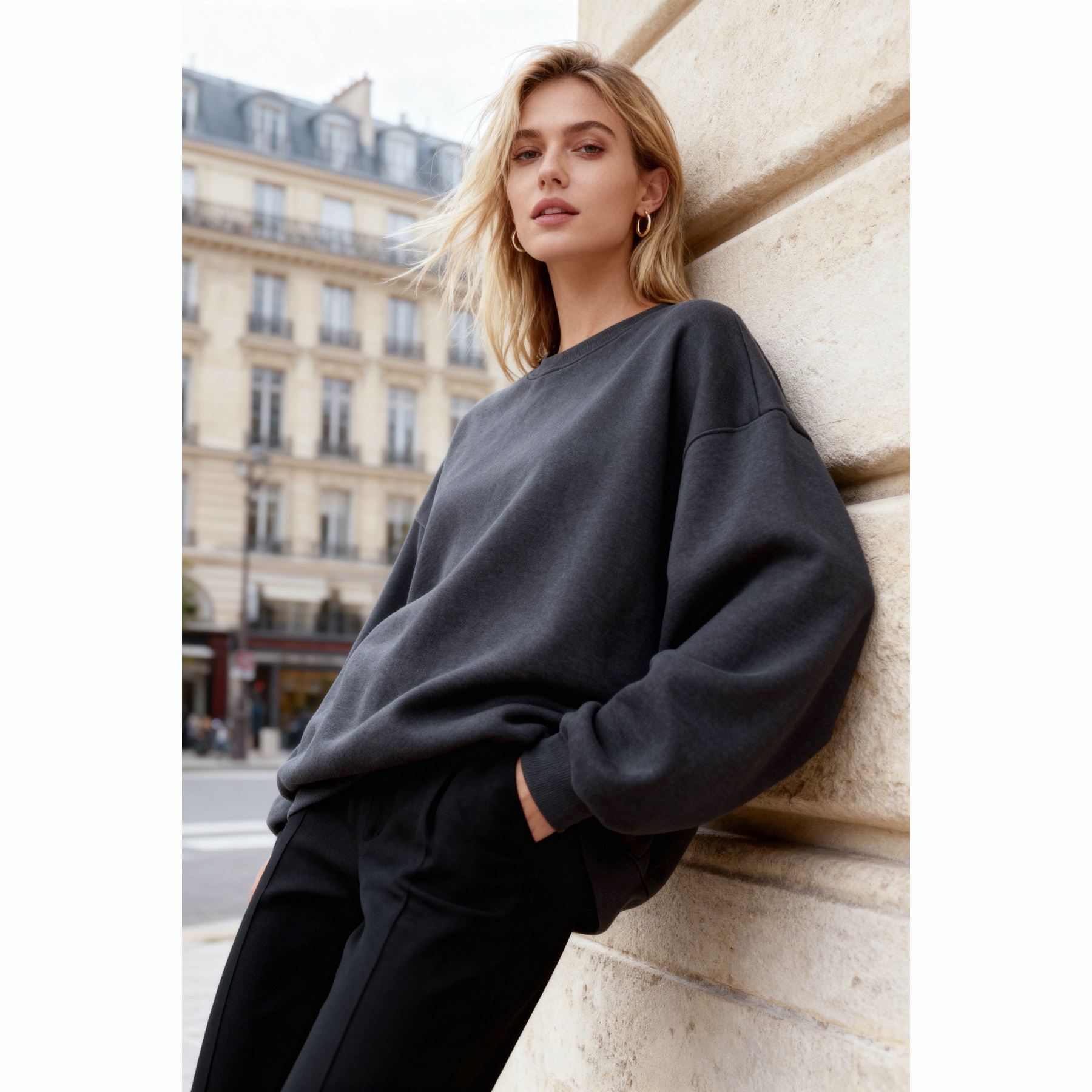 سويت شيرت نسائي – رمادي داكن بقصة واسعة وبطانة داخلية (دفء فائق بإطلالة مريحة وعصرية)