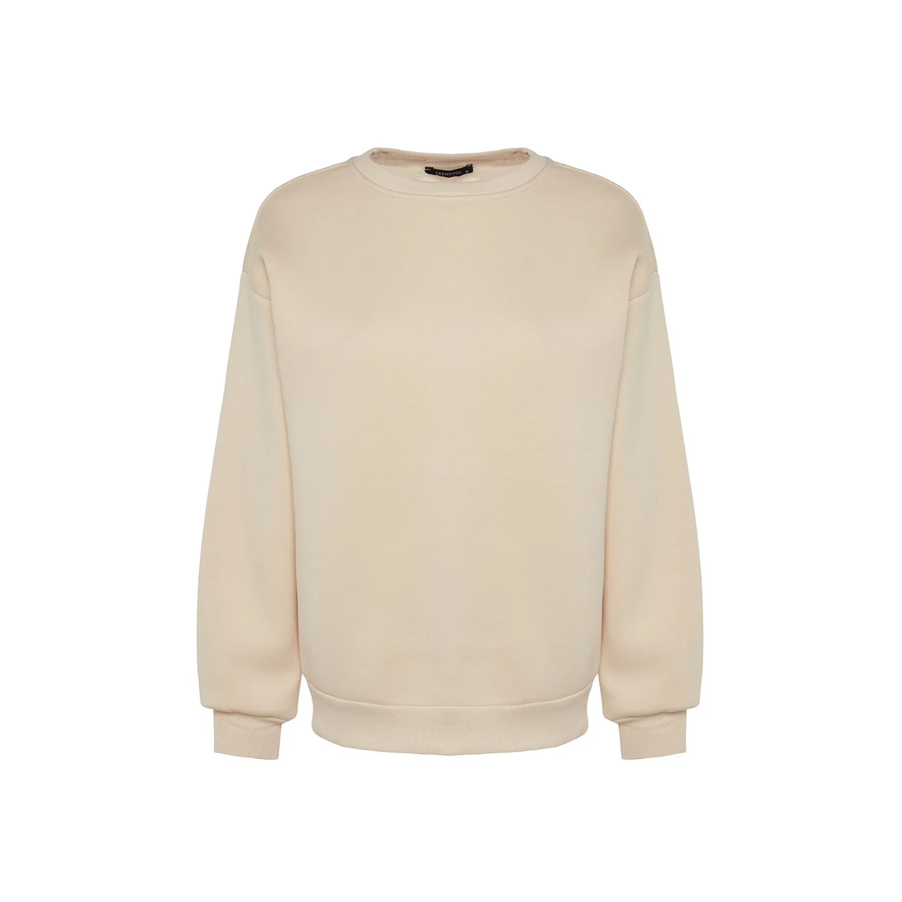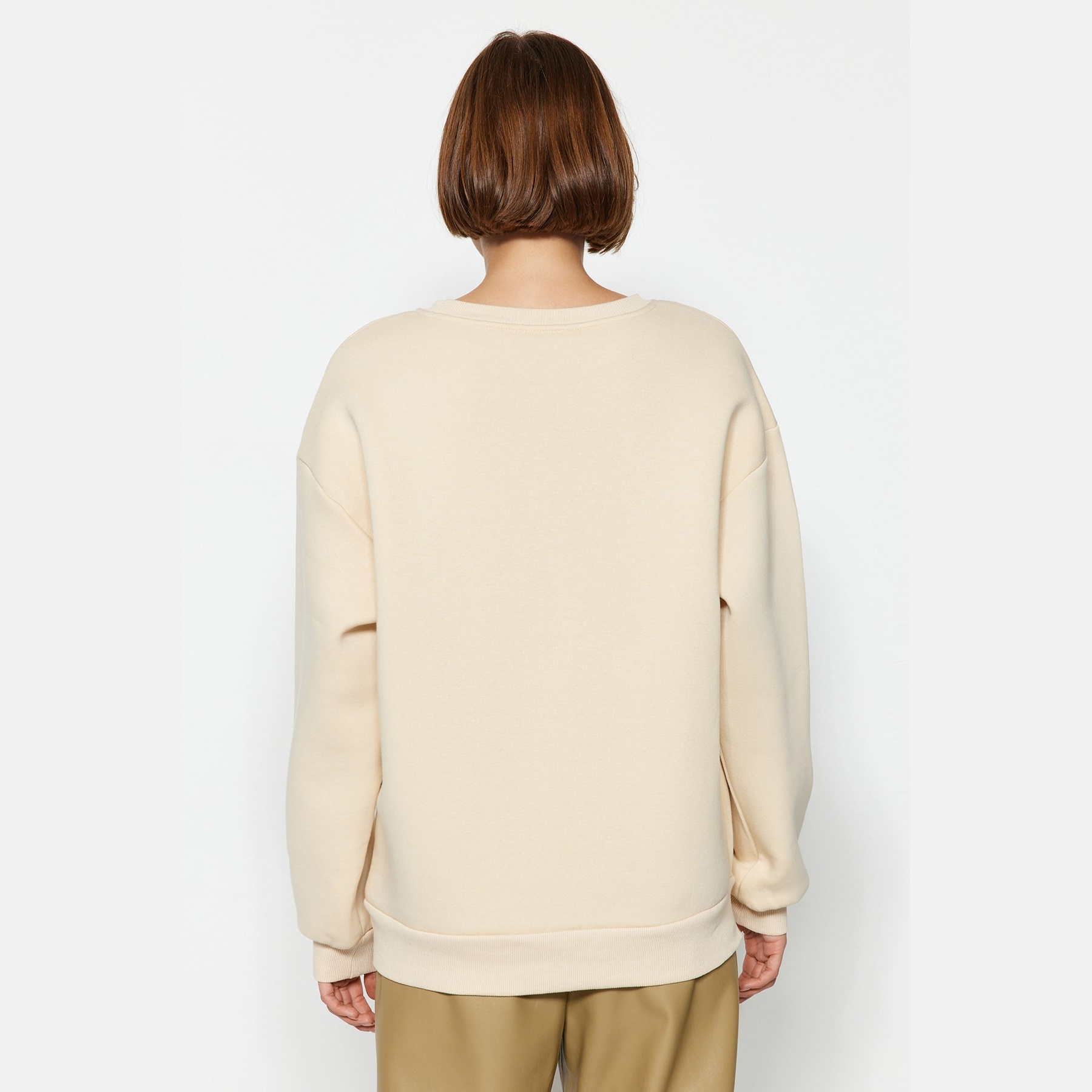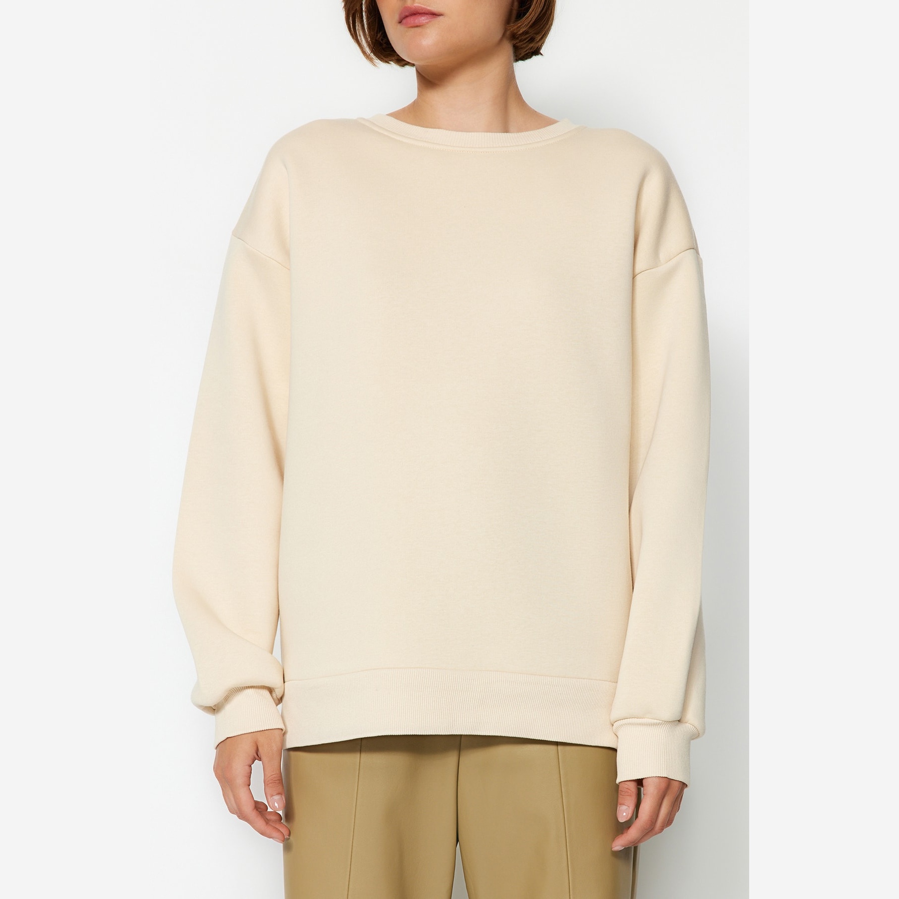 سويت شيرت نسائي – بيج فاتح بقصة واسعة وبطانة داخلية (دفء فائق بإطلالة مريحة وعصرية)