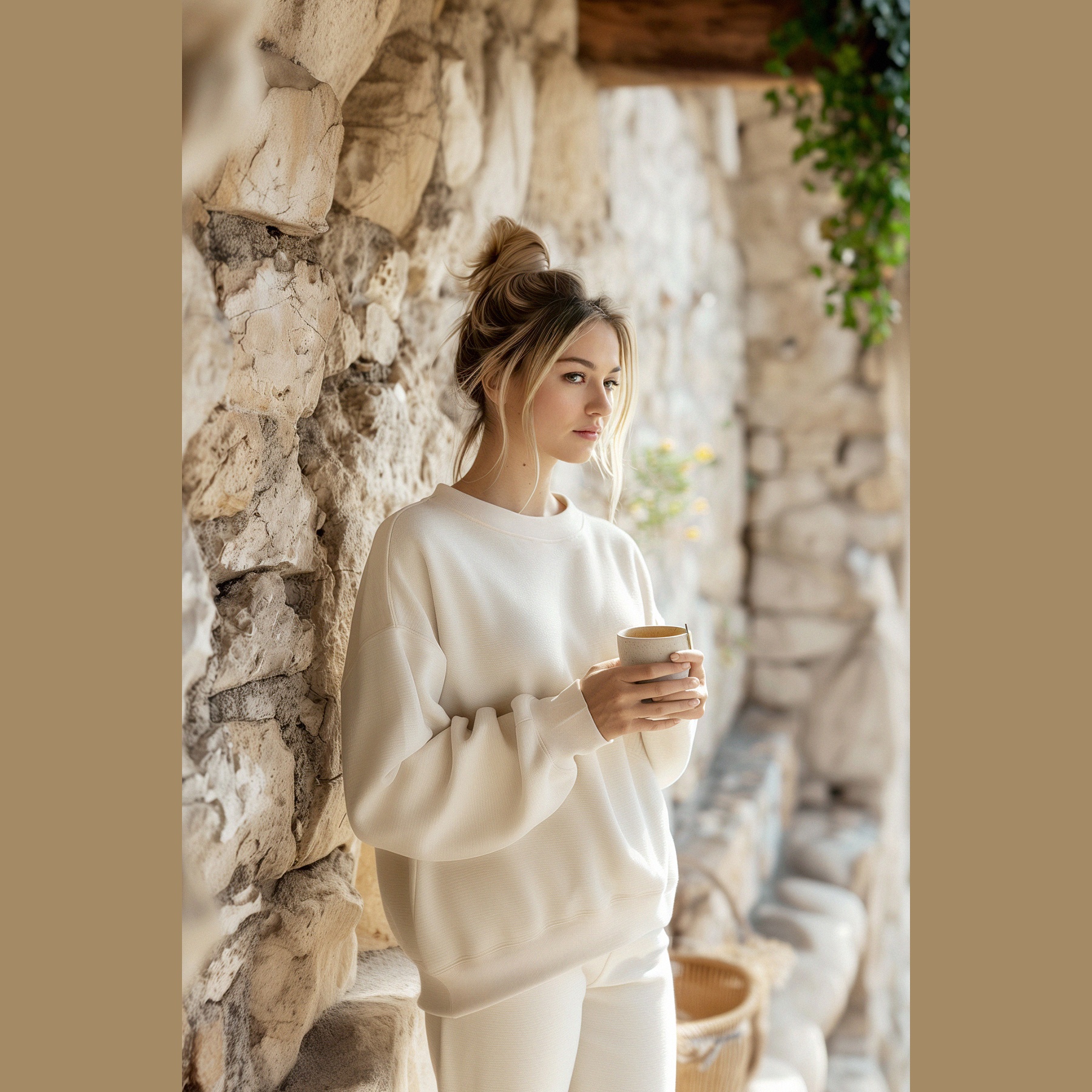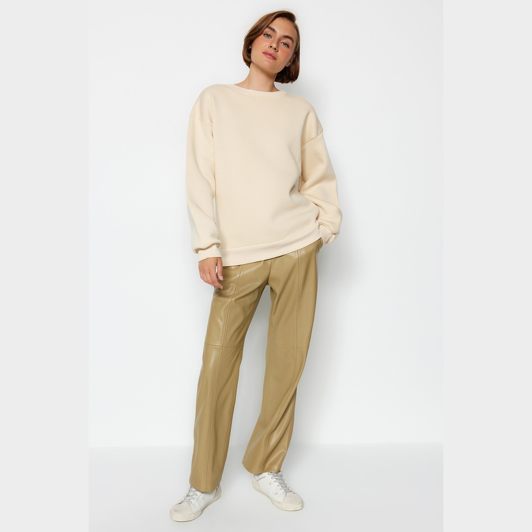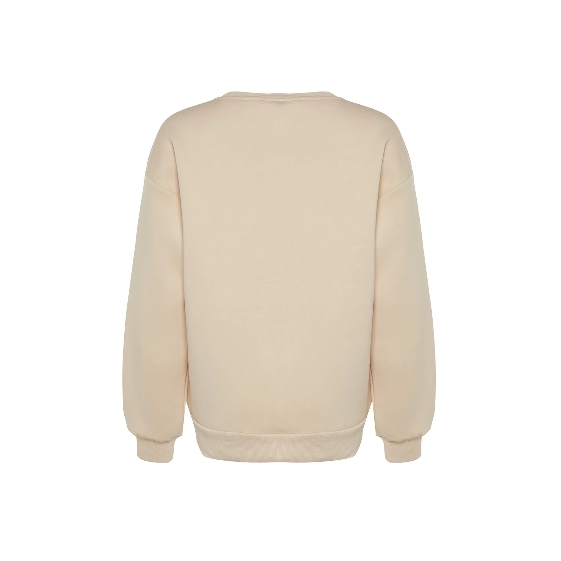 سويت شيرت نسائي – بيج فاتح بقصة واسعة وبطانة داخلية (دفء فائق بإطلالة مريحة وعصرية)