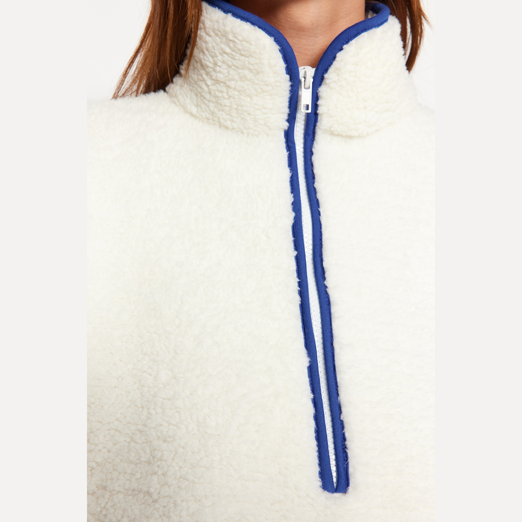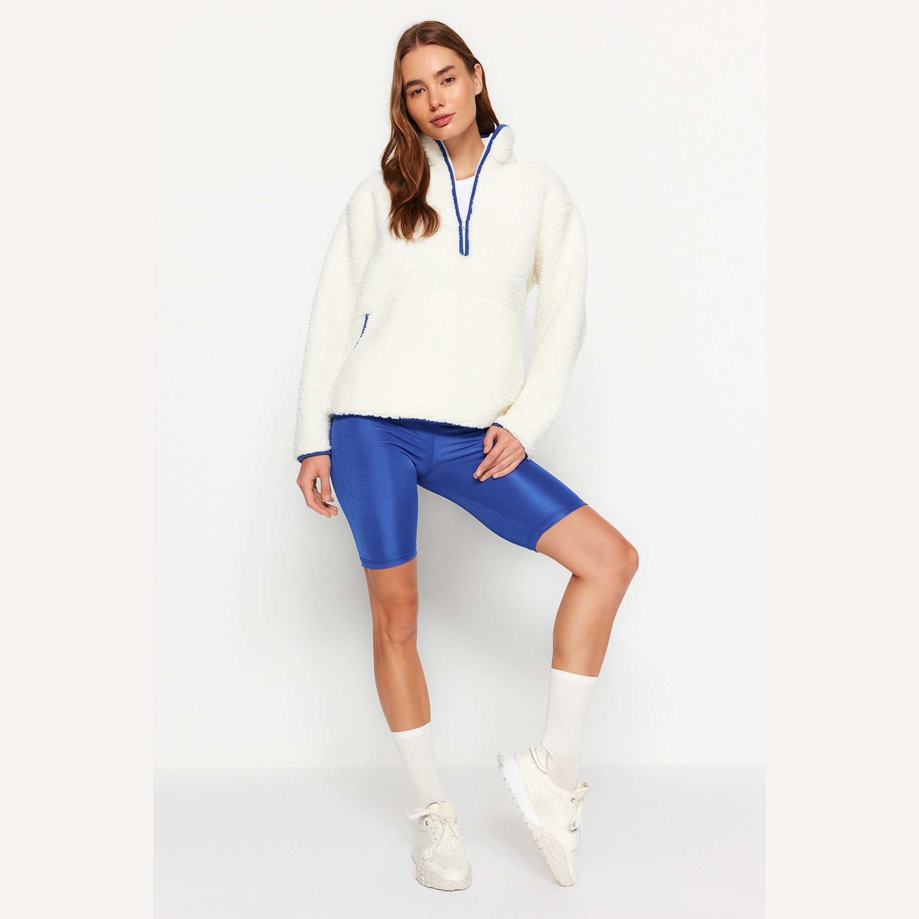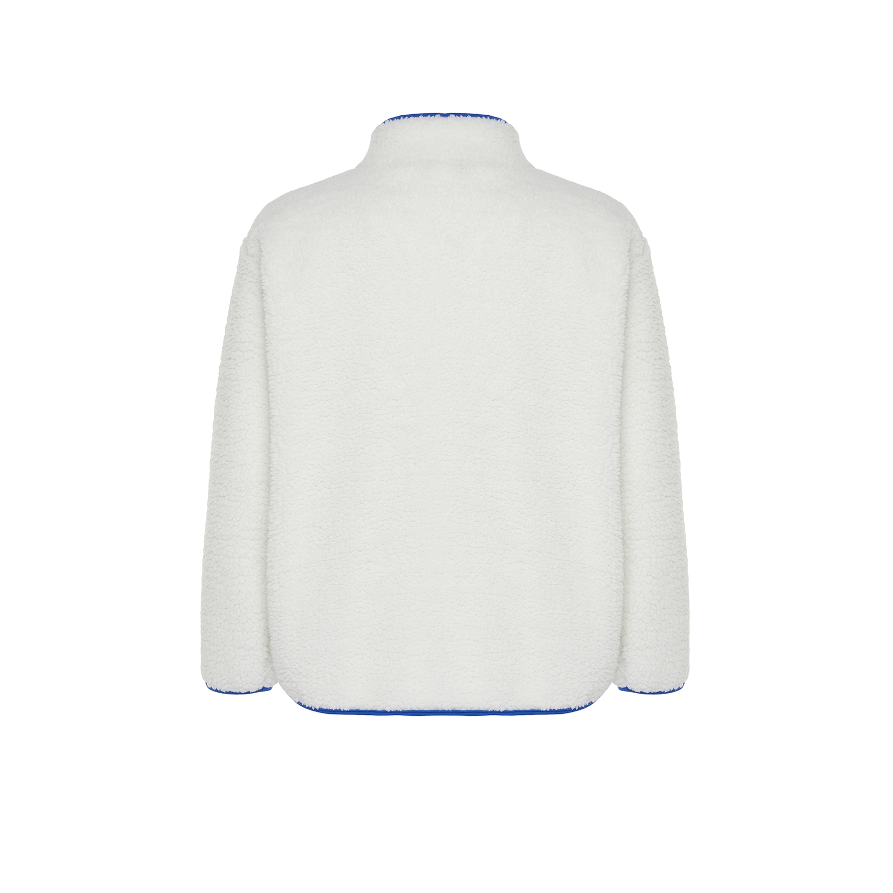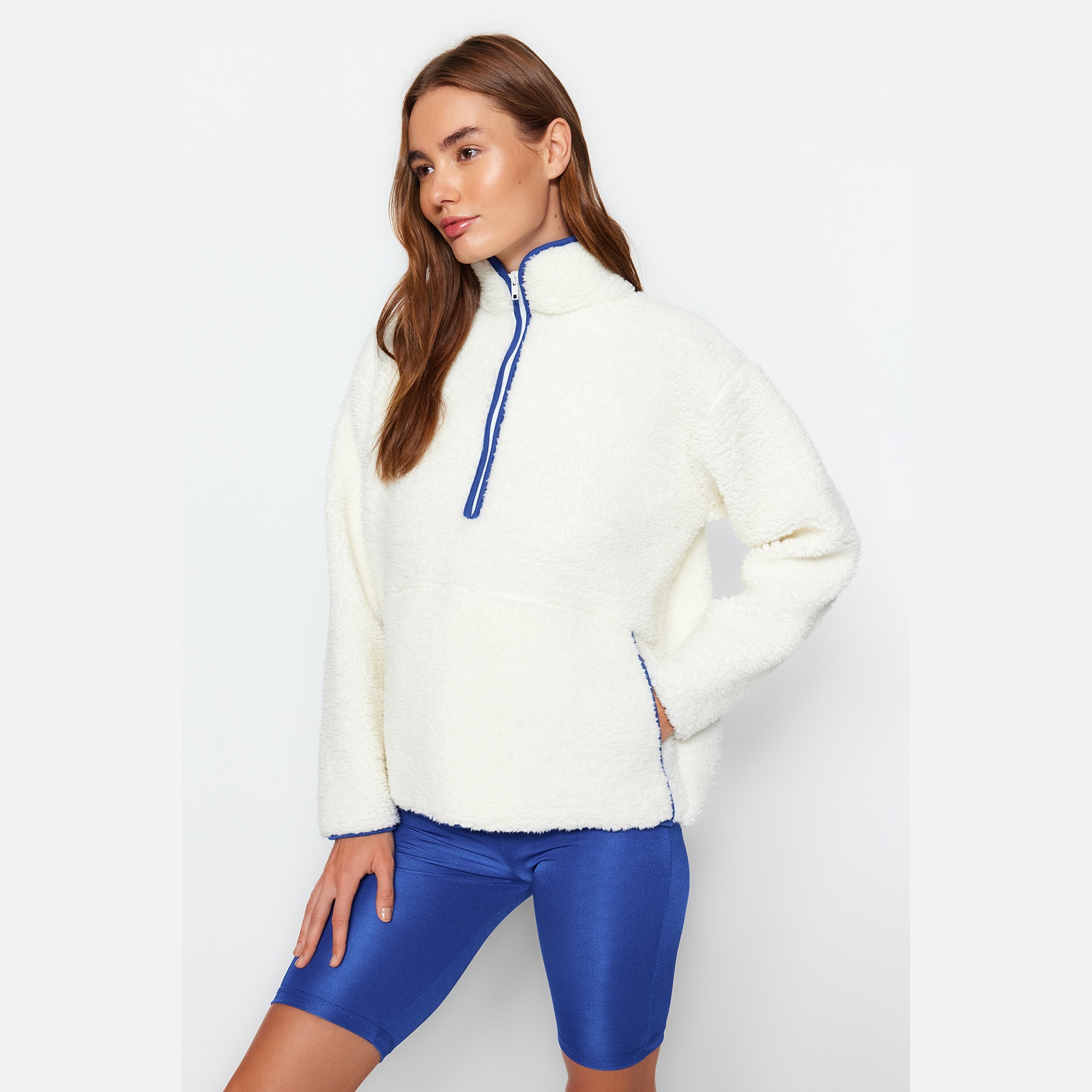 سويت شيرت نسائي – أبيض بخامة فرو صناعي وقصة منتظمة (دفء ناعم بإطلالة رياضية مريحة)