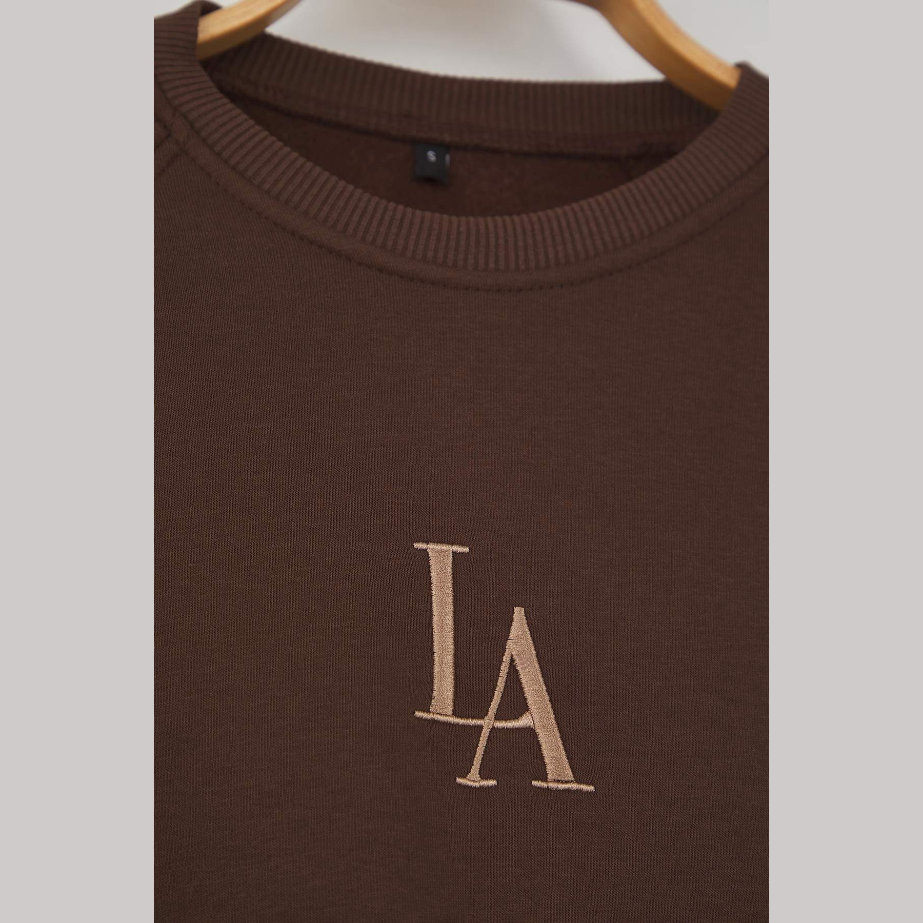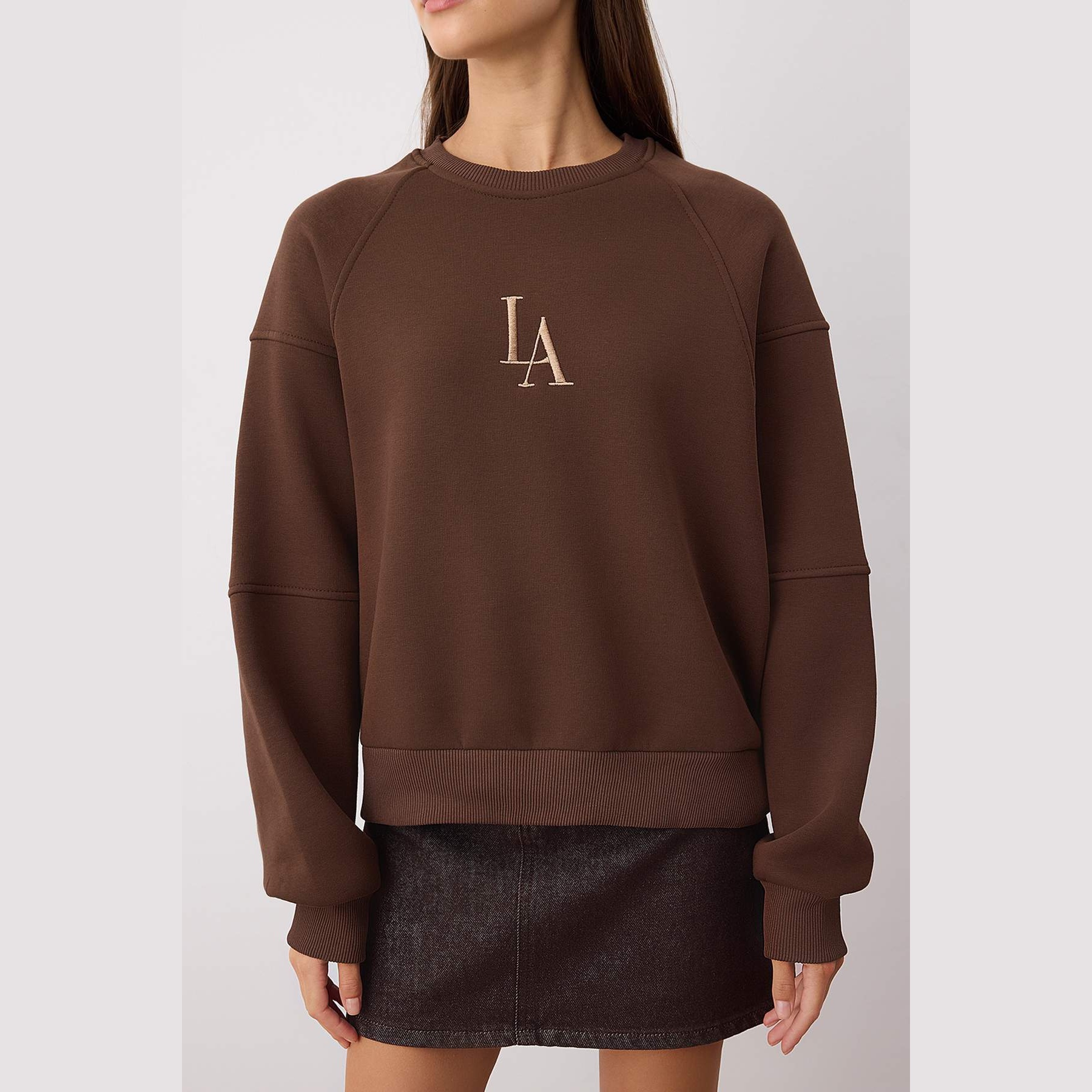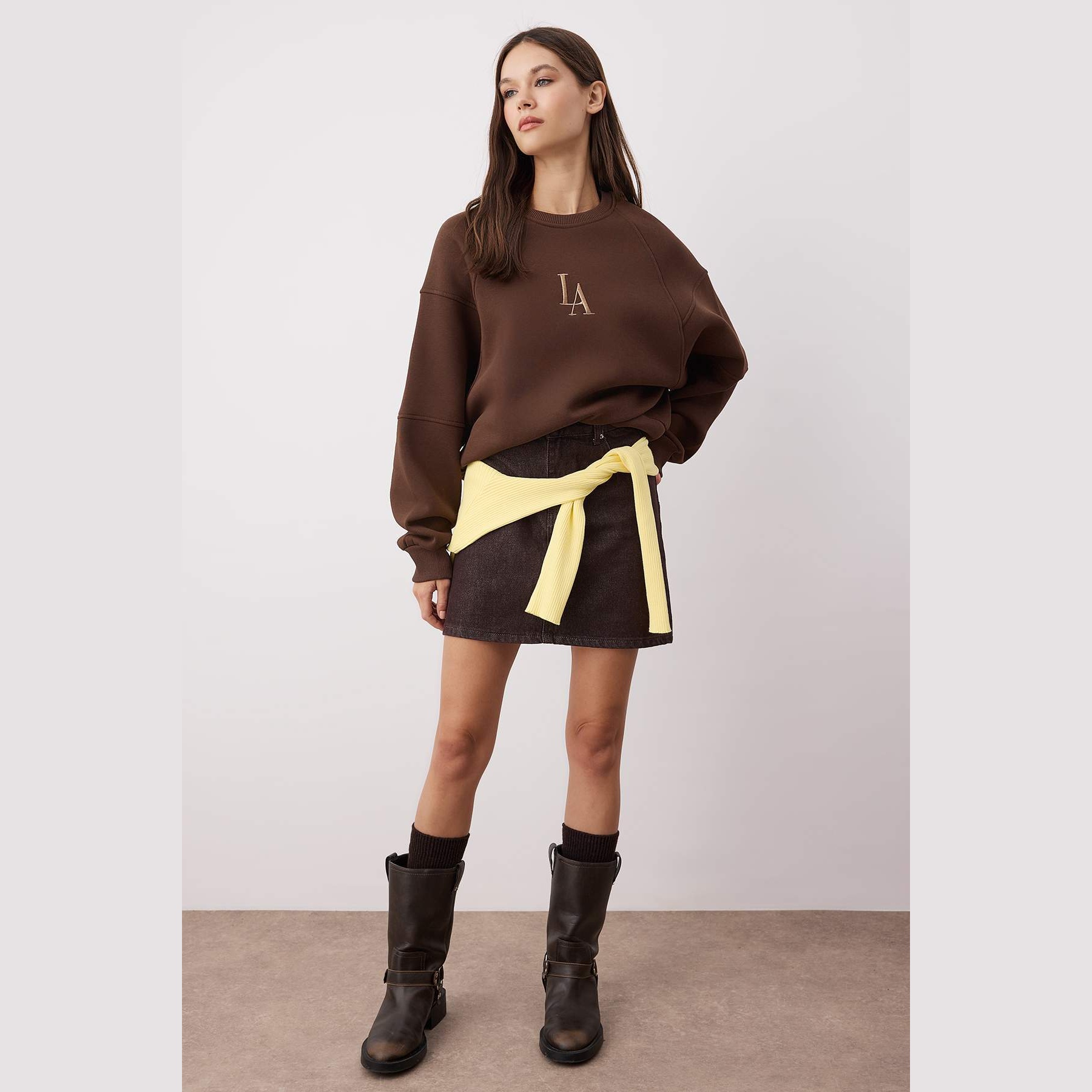 سويت شيرت نسائي – بني بتطريز أمامي وقصة منتظمة (دفء شتوي بإطلالة أساسية أنيقة)