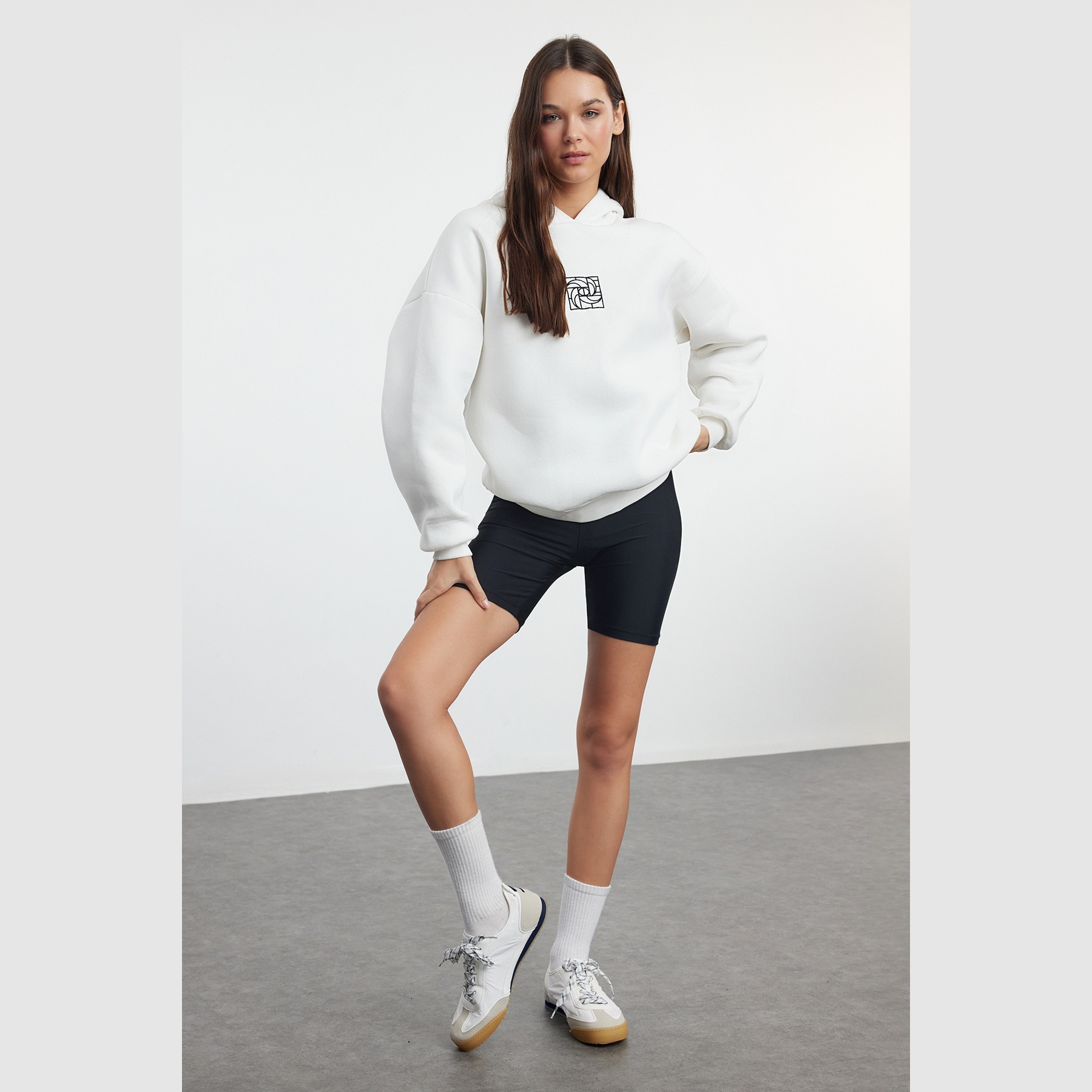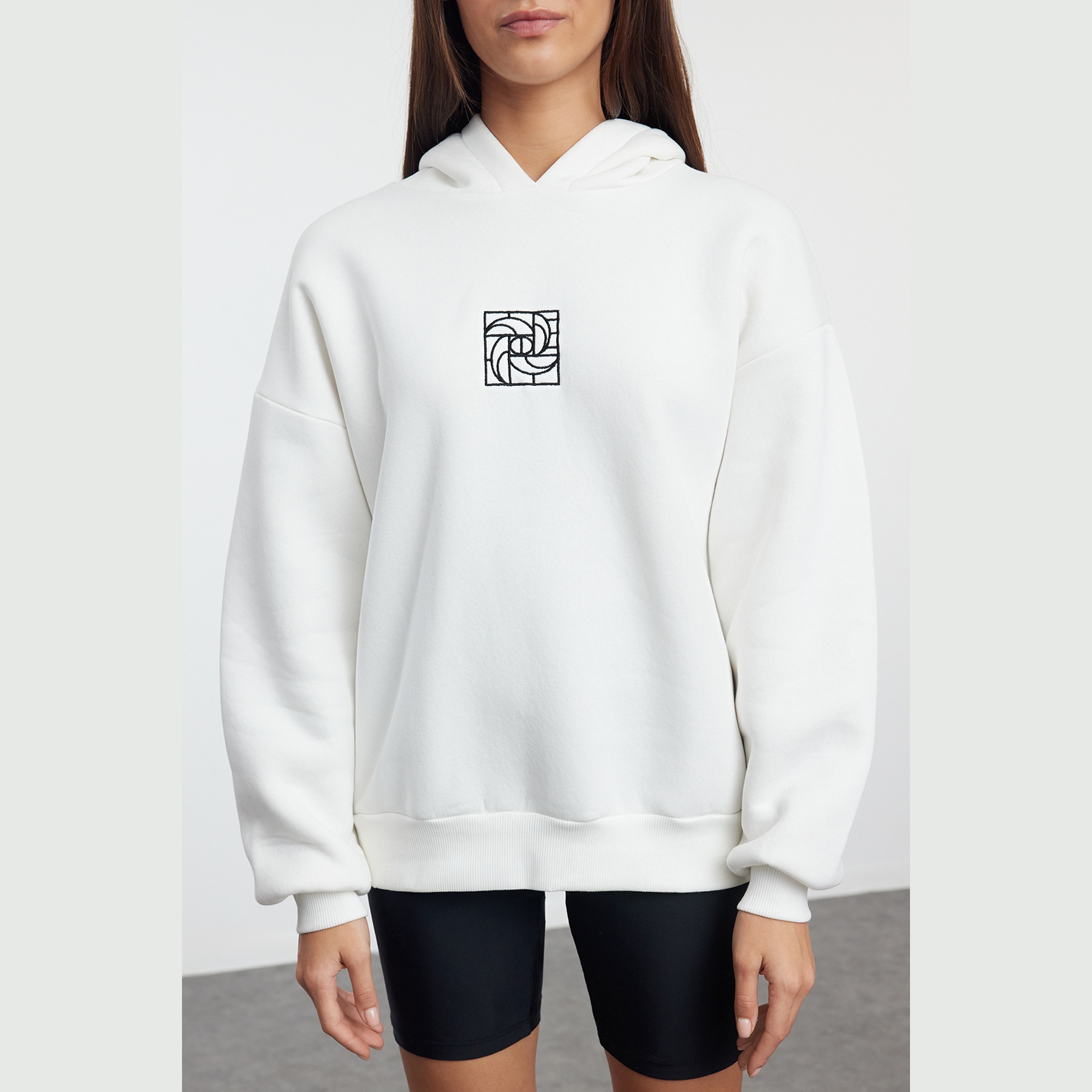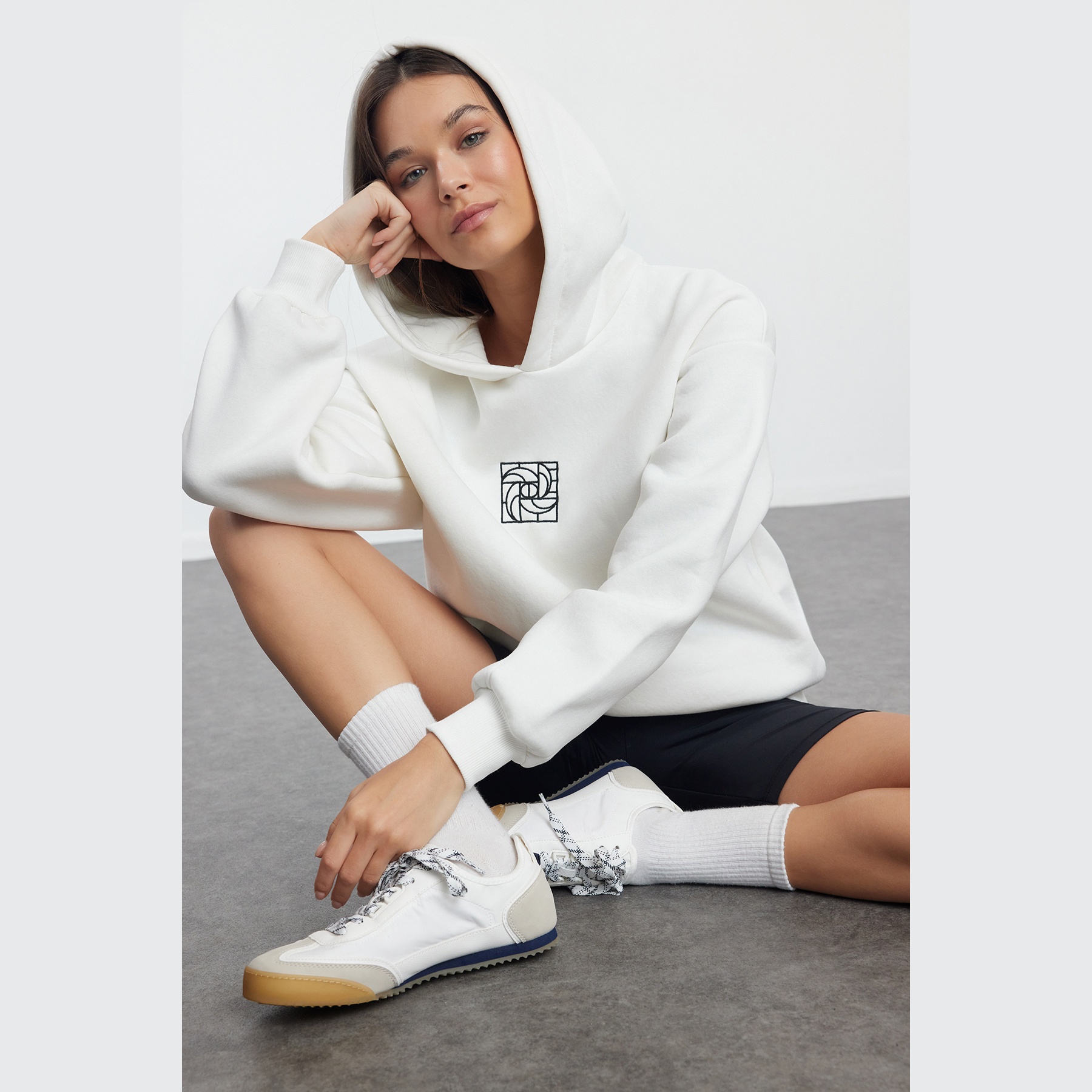 سويت شيرت نسائي – أوف وايت بتطريز أمامي وقصة واسعة (دفء فائق بإطلالة ناعمة وعصرية)