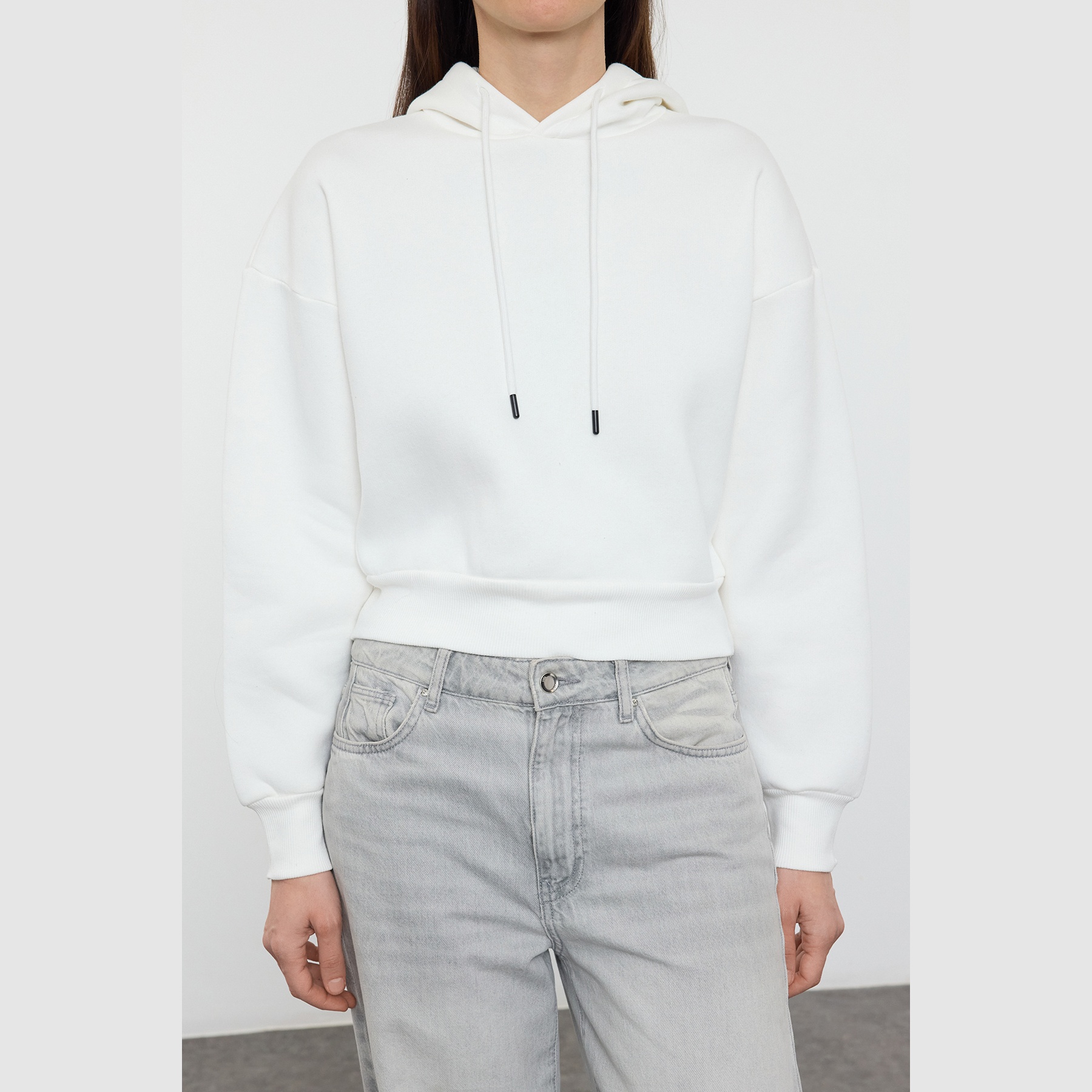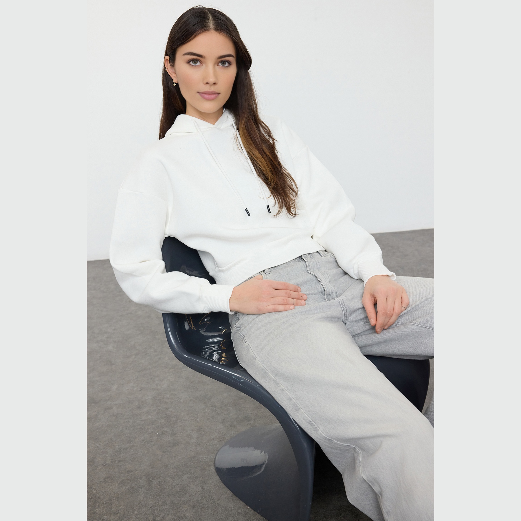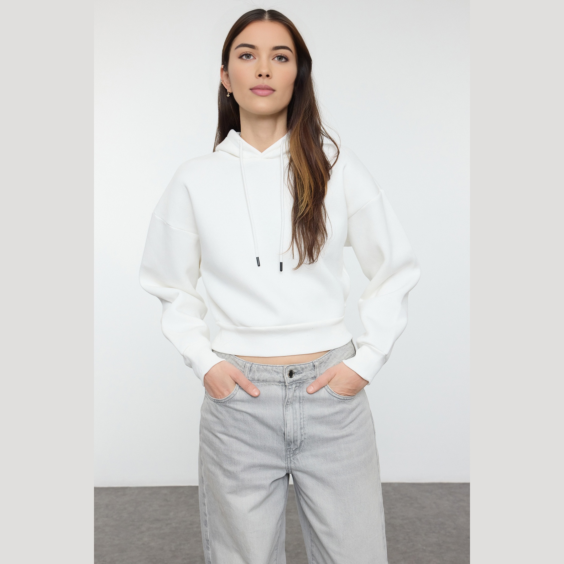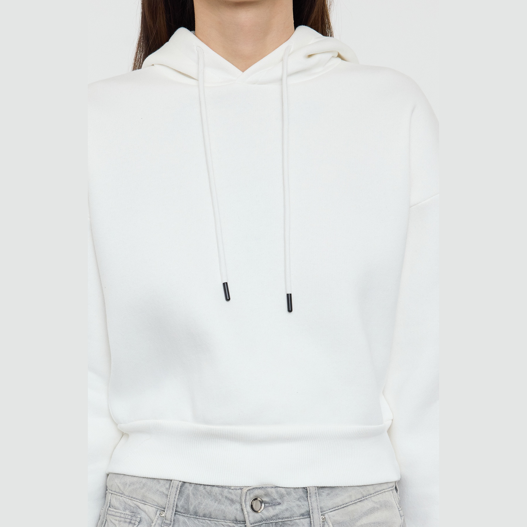 سويت شيرت نسائي – أوف وايت بغطاء رأس وقصة قصيرة مريحة (دفء شتوي بإطلالة كاجوال أساسية)