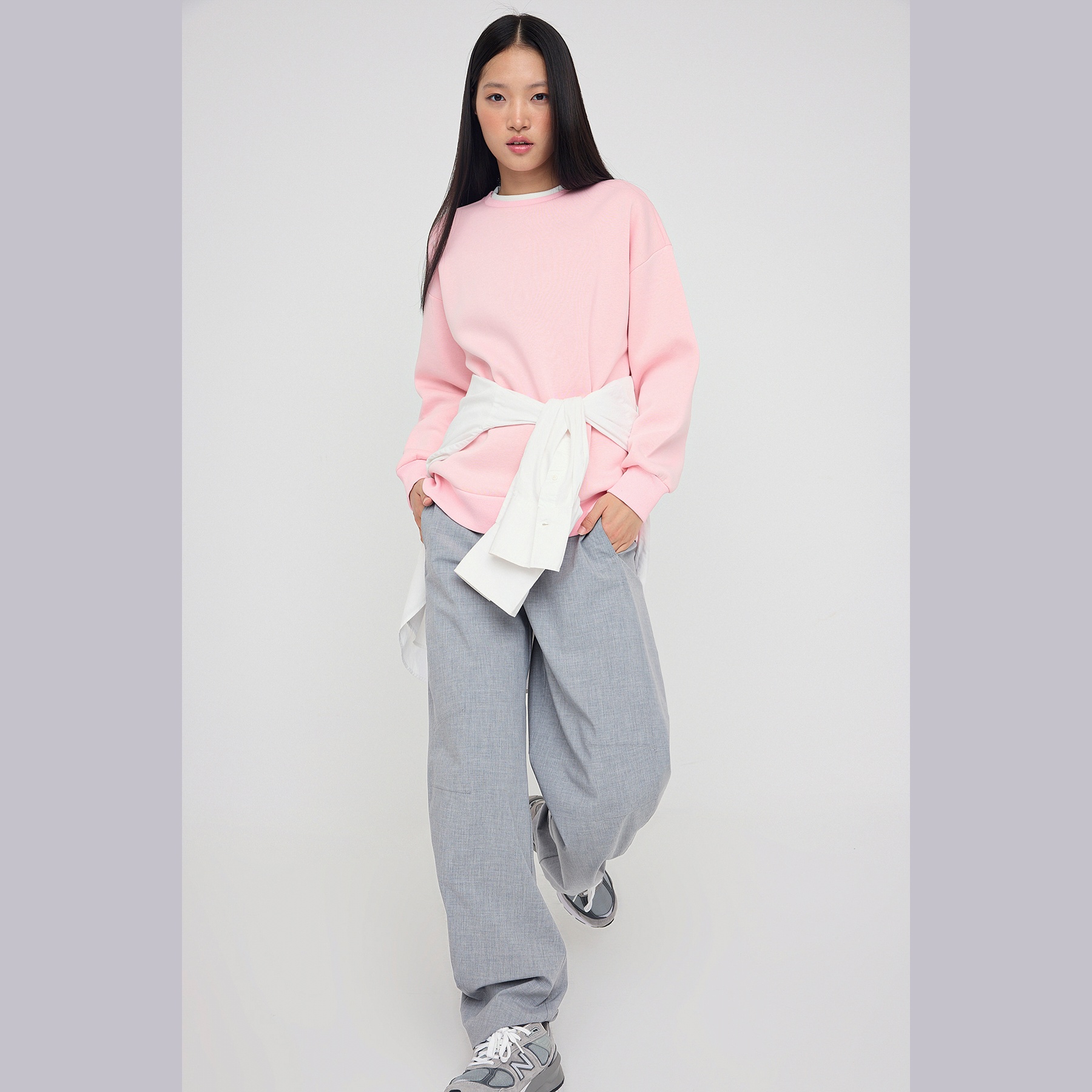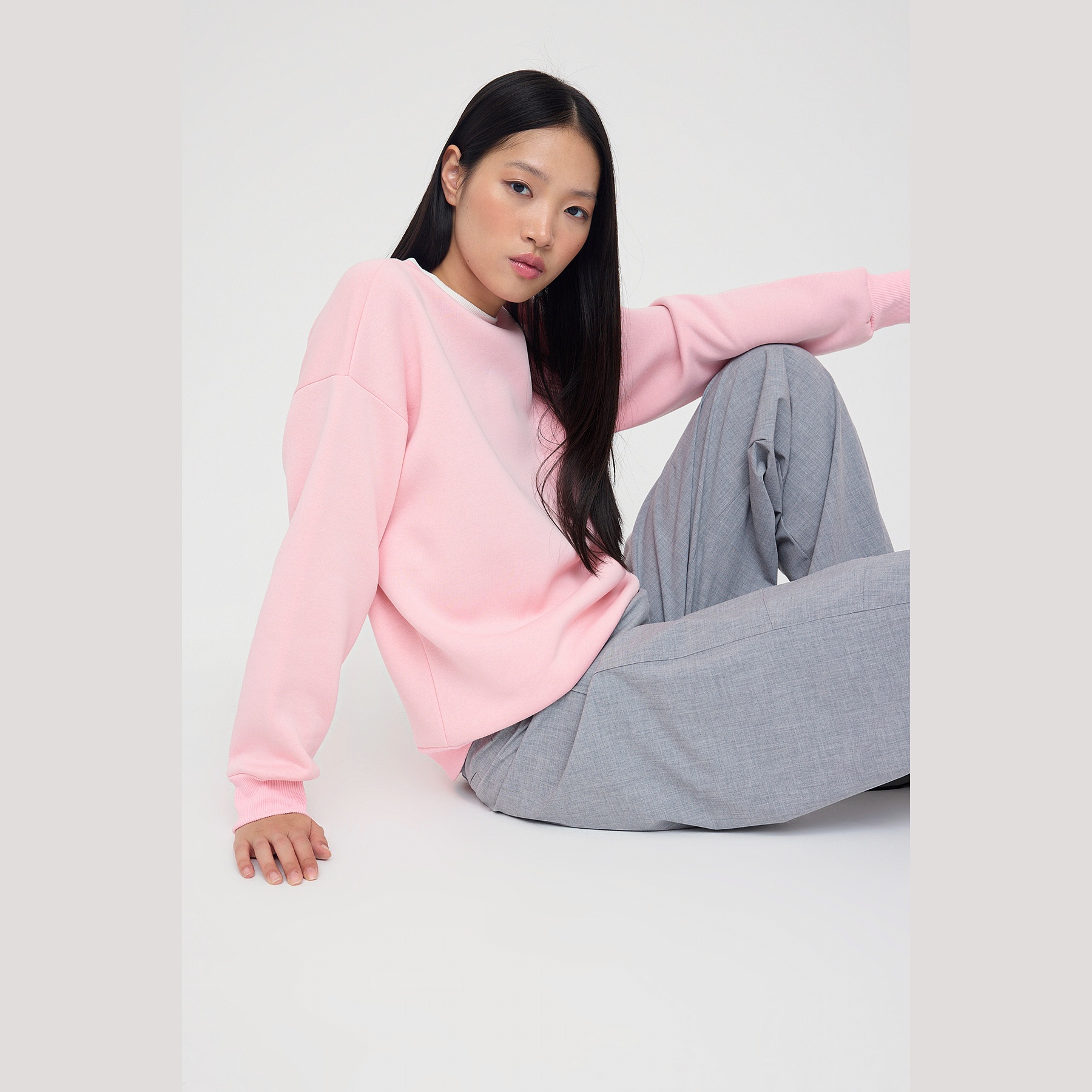 سويت شيرت نسائي – وردي فاتح بلونين وقصة واسعة (دفء شتوي بإطلالة كاجوال عصرية)