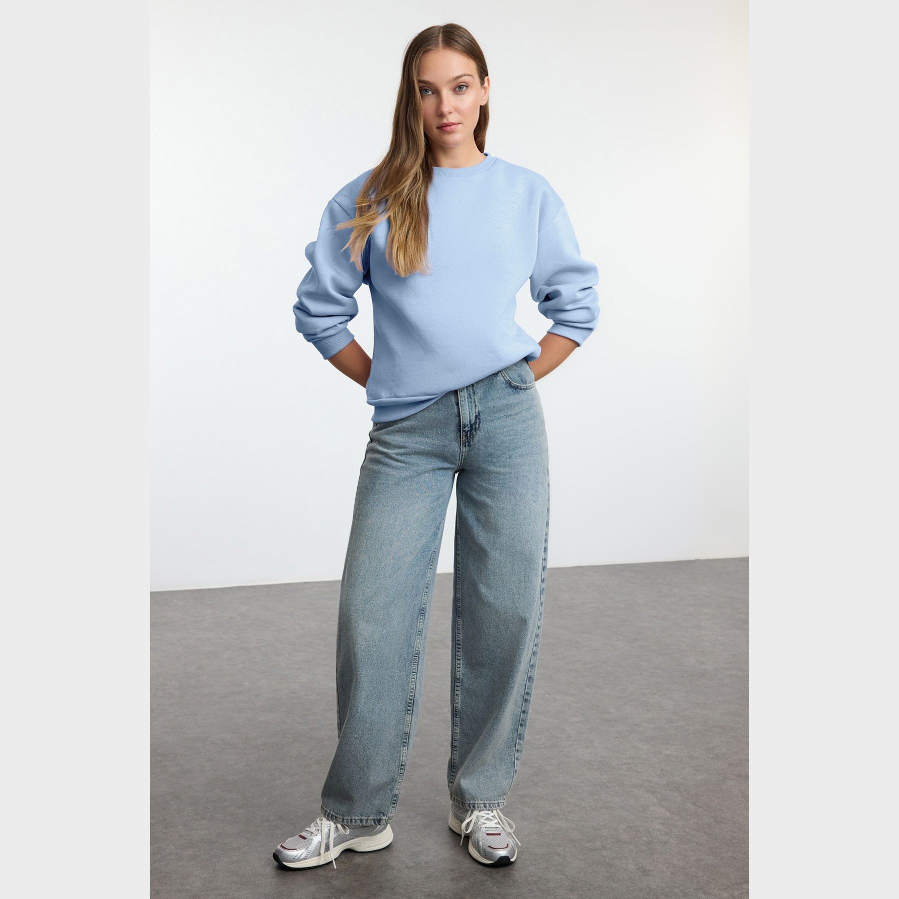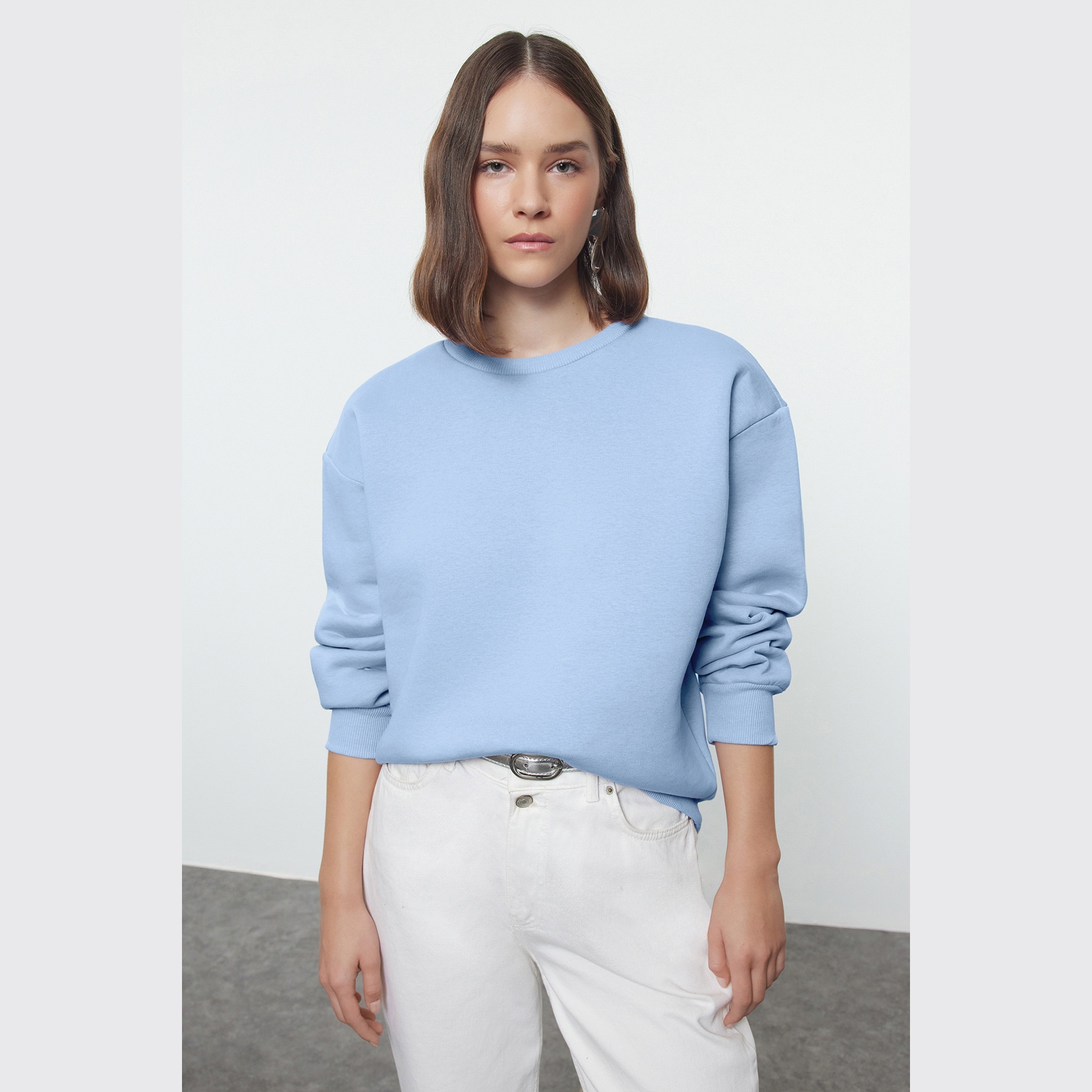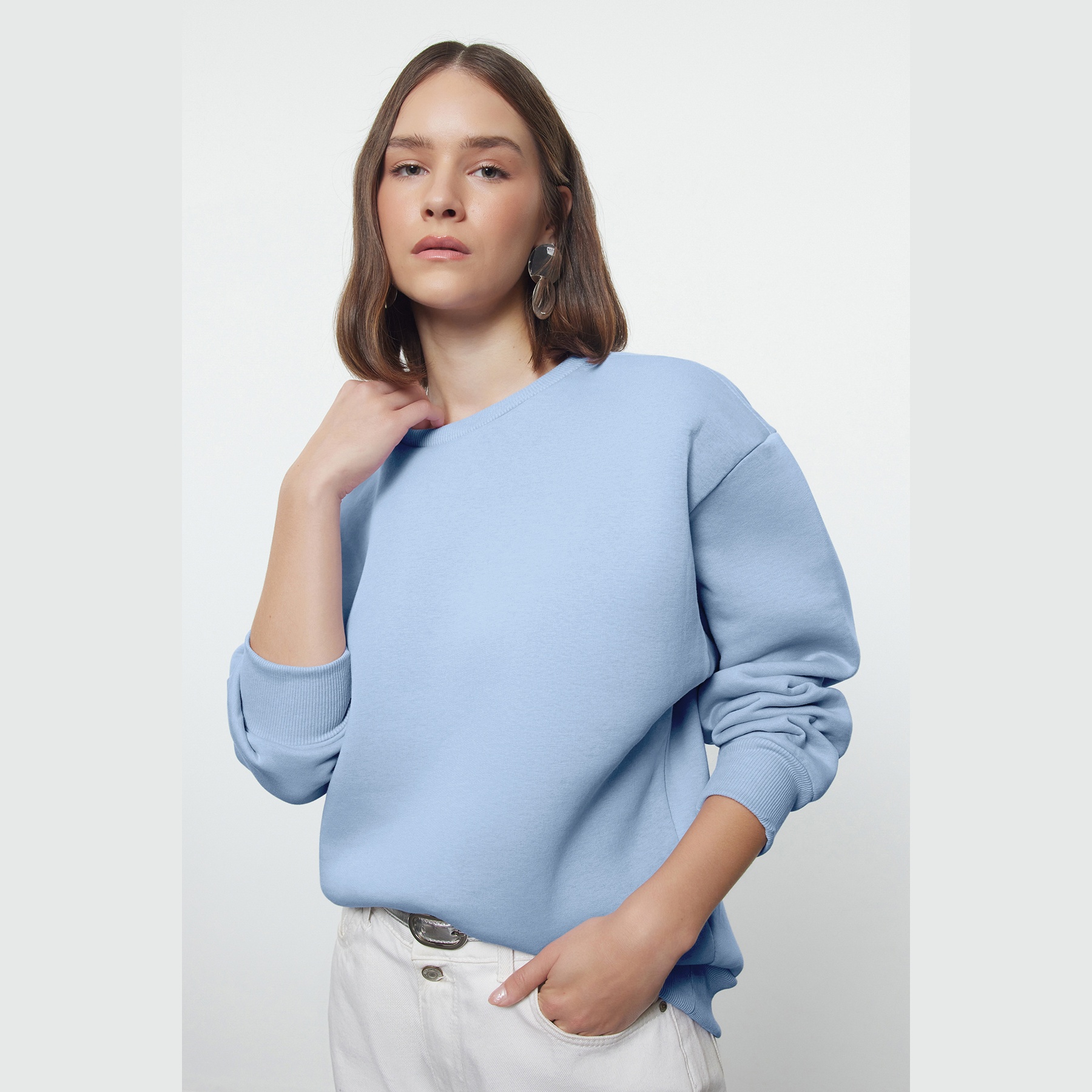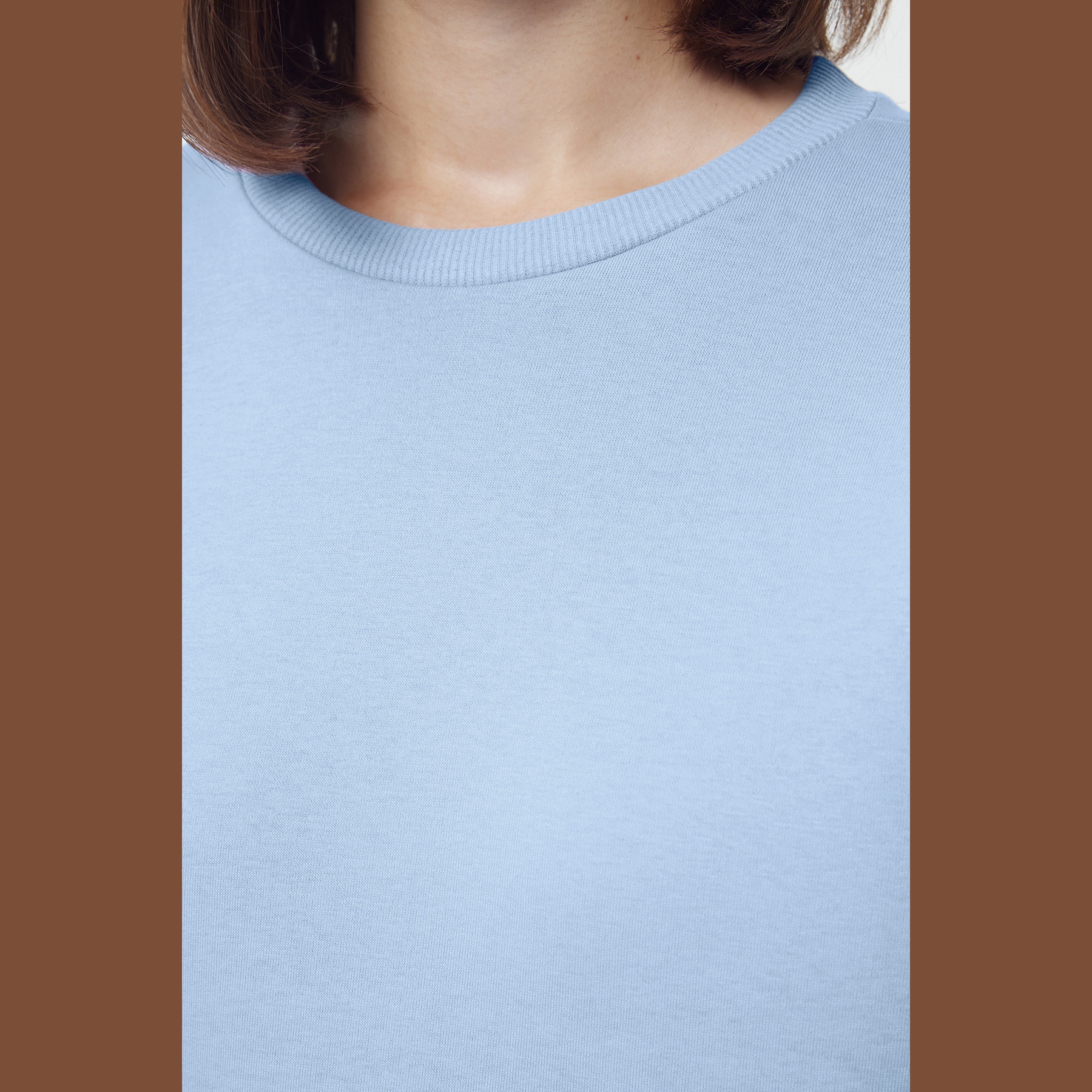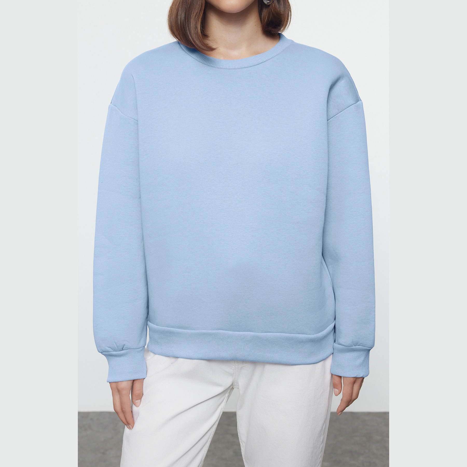 سويت شيرت نسائي – أزرق فاتح بقصة منتظمة وياقة دائرية (دفء شتوي بإطلالة أساسية ناعمة)