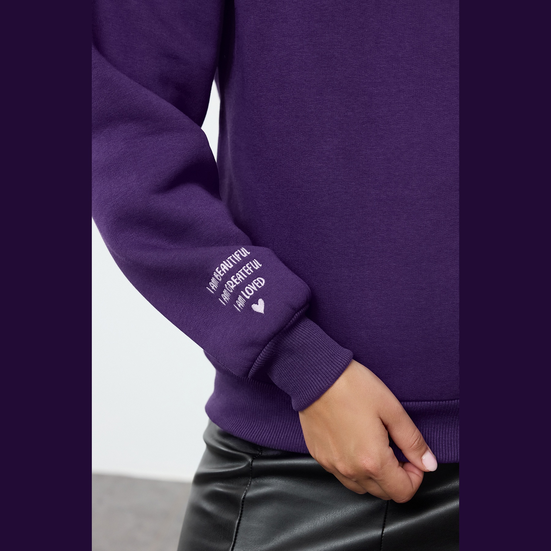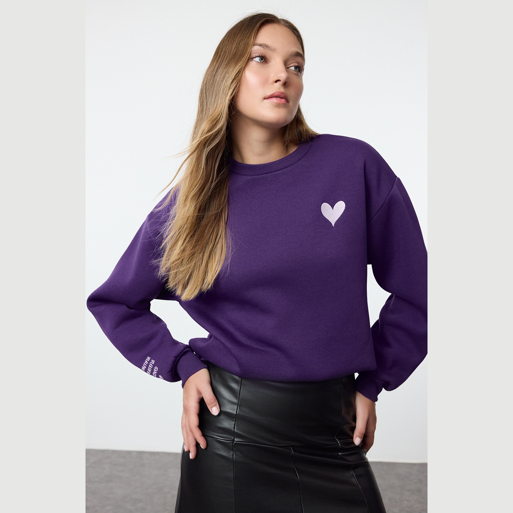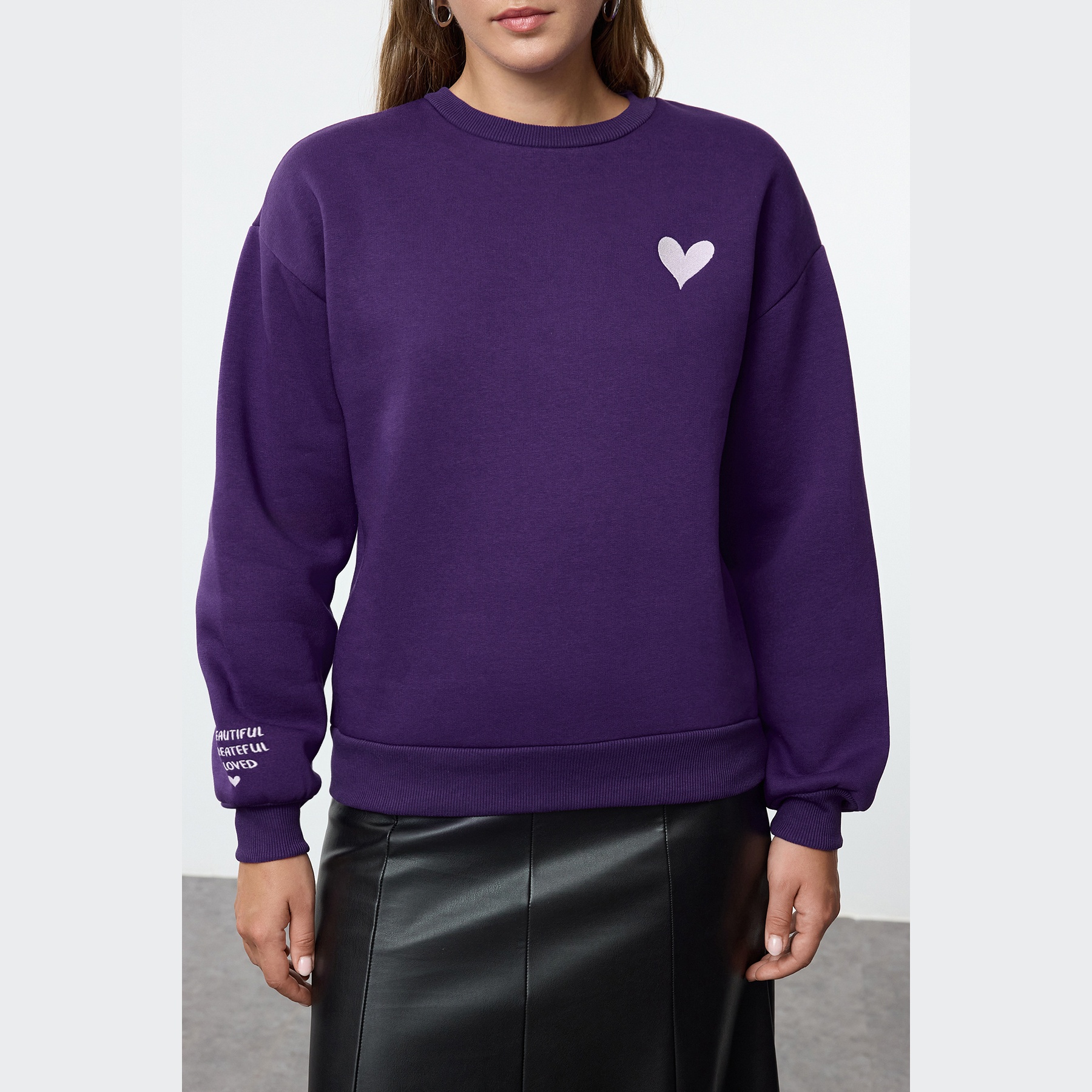 سويت شيرت نسائي – بنفسجي بتطريز شعار وقصة منتظمة (دفء شتوي بإطلالة كاجوال أنيقة)