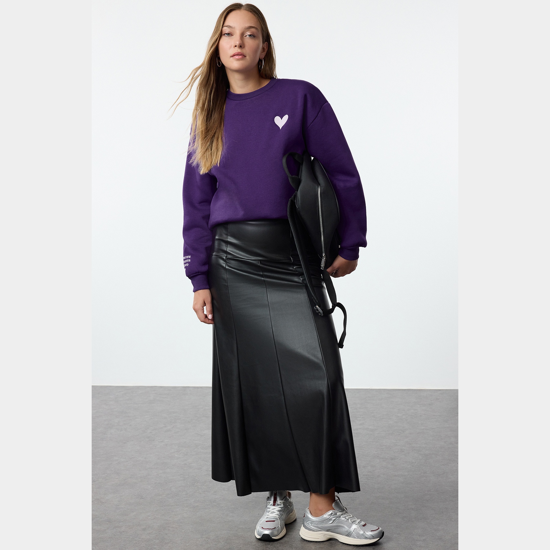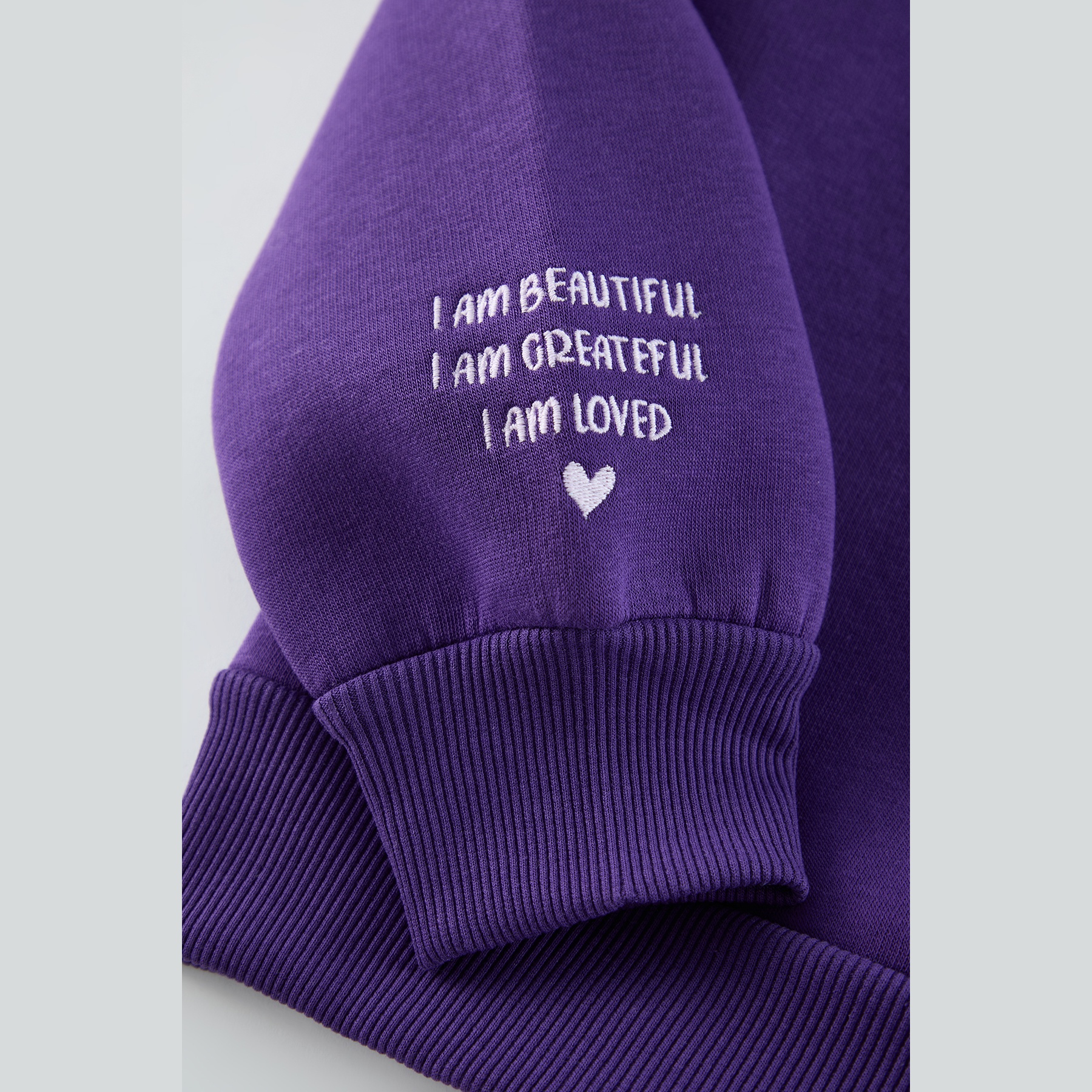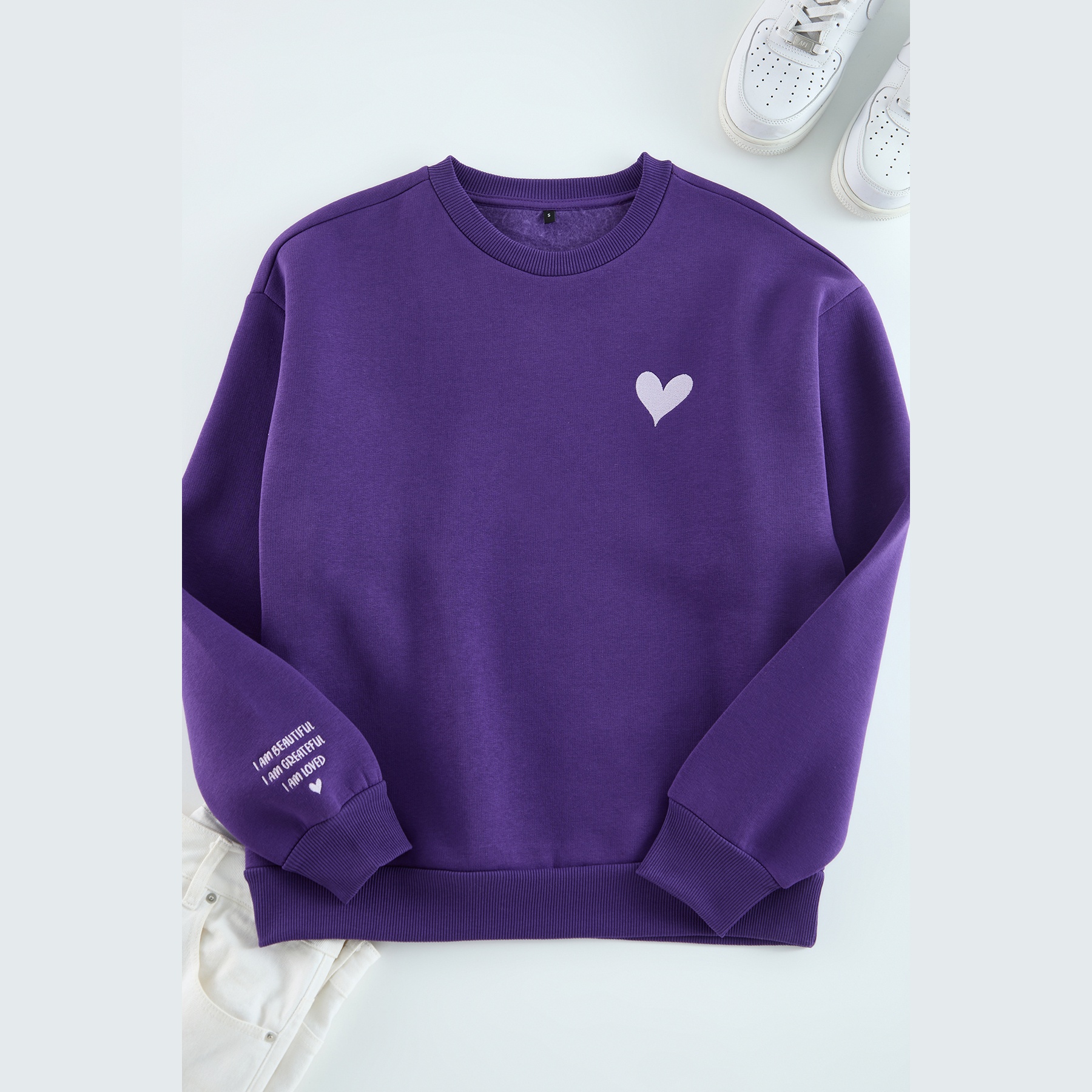 سويت شيرت نسائي – بنفسجي بتطريز شعار وقصة منتظمة (دفء شتوي بإطلالة كاجوال أنيقة)