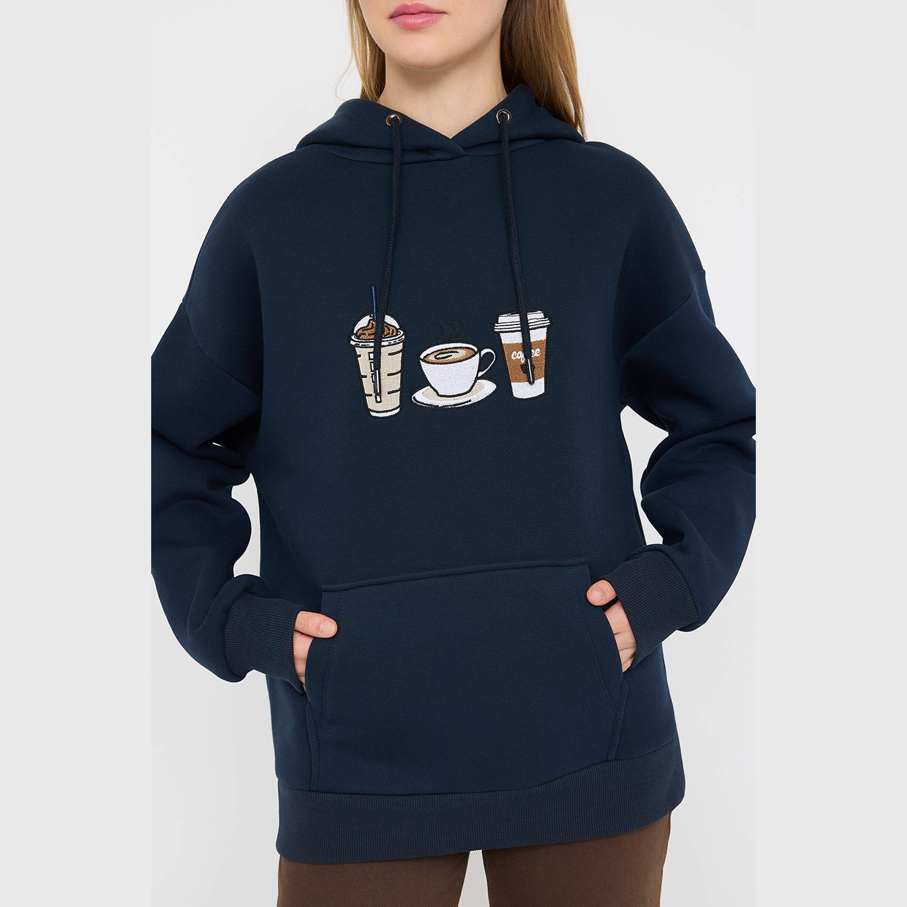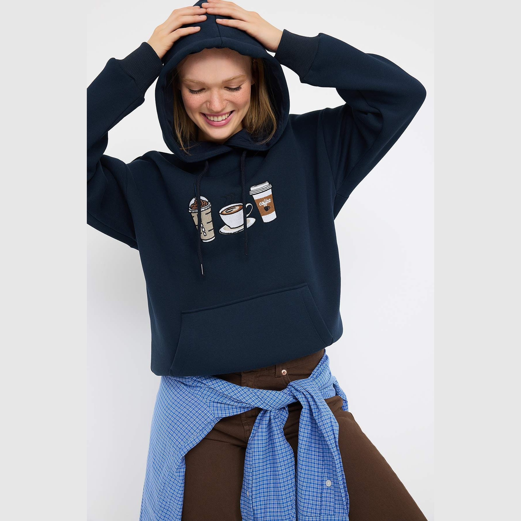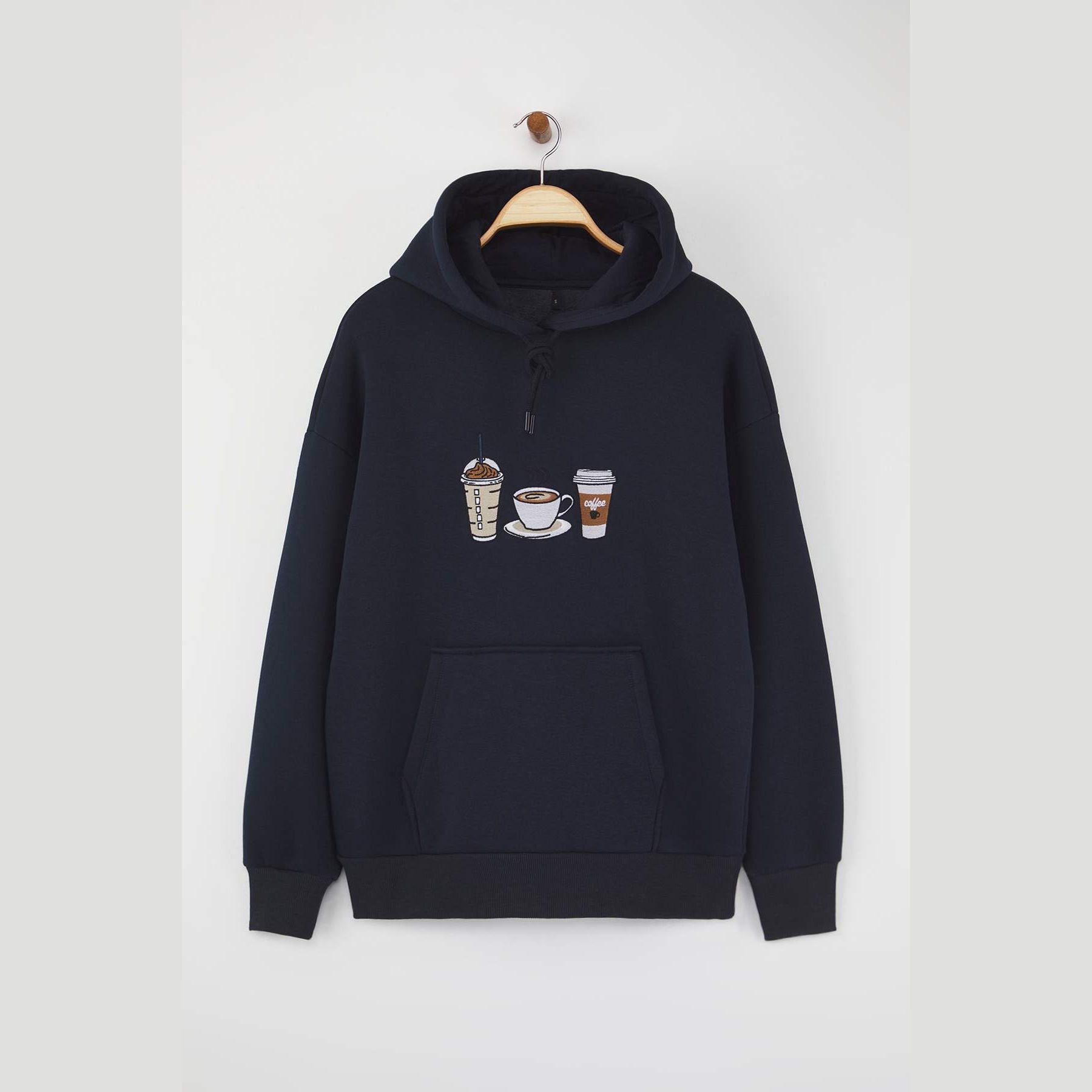 سويت شيرت تين – كحلي بتطريز شعار وغطاء رأس وقصة واسعة (دفء شتوي بإطلالة شبابية عملية)