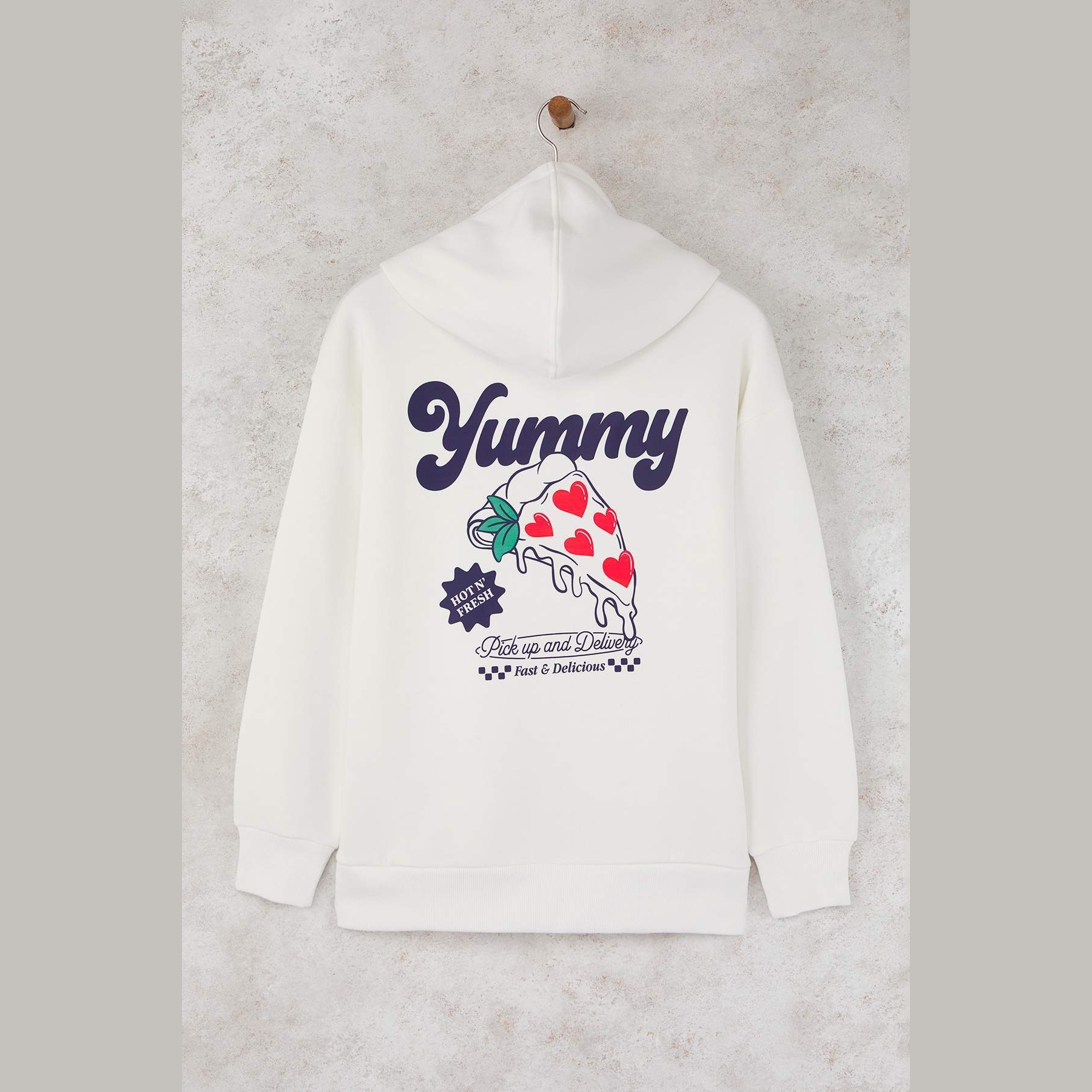 سويت شيرت تين بلون أوف وايت، مصنوع من خامة محاكة بتركيبة ثنائية من القطن والبوليستر، يتميز بنسيج شاردون ثلاثي الطبقات يمنح دفئًا فائقًا وراحة مثالية في الأجواء الشتوية. يأتي بقصة واسعة وياقة بغطاء رأس وأكمام طويلة بتصميم كتف منخفض، ويبرز بطباعة خلفية تضيف لمسة شبابية عصرية.