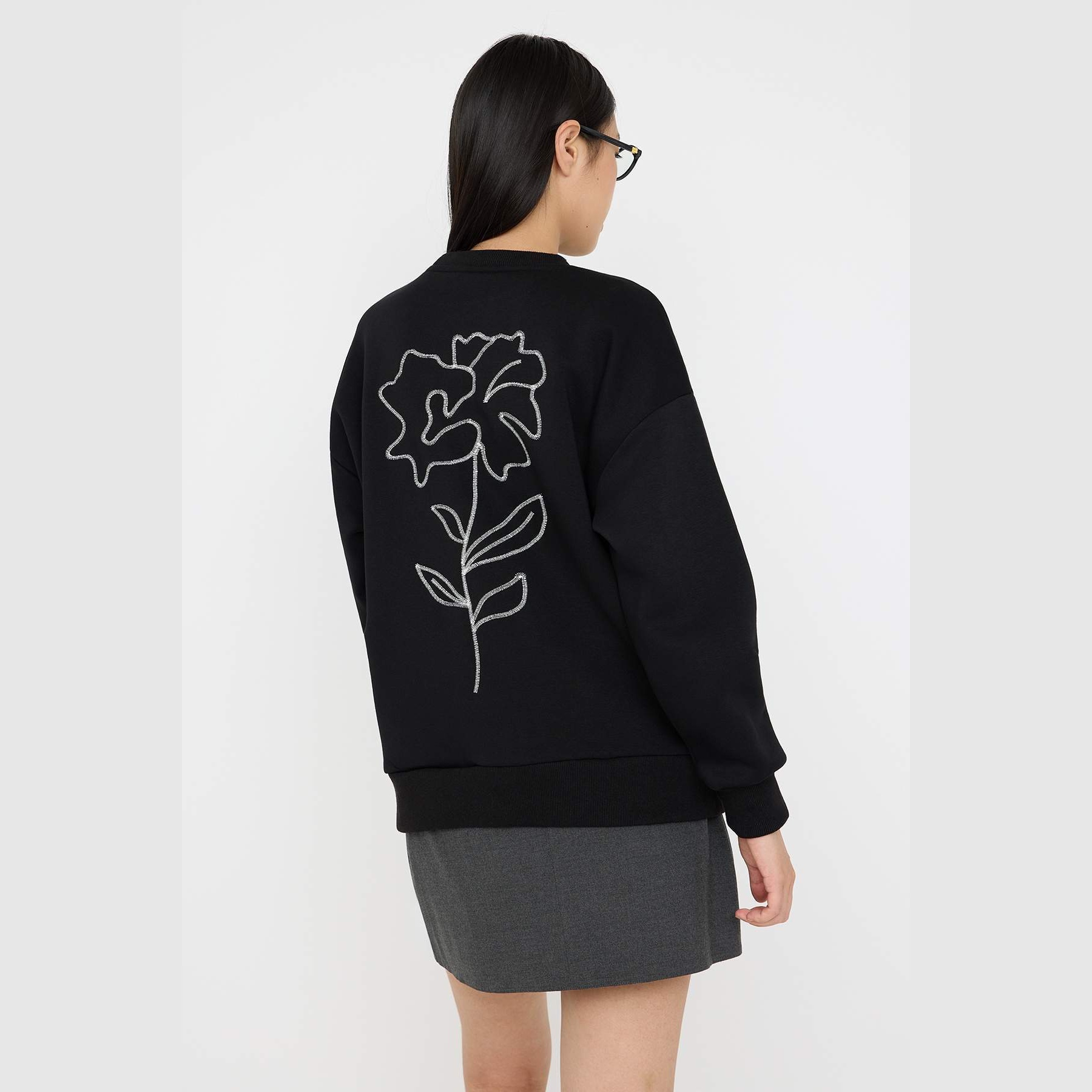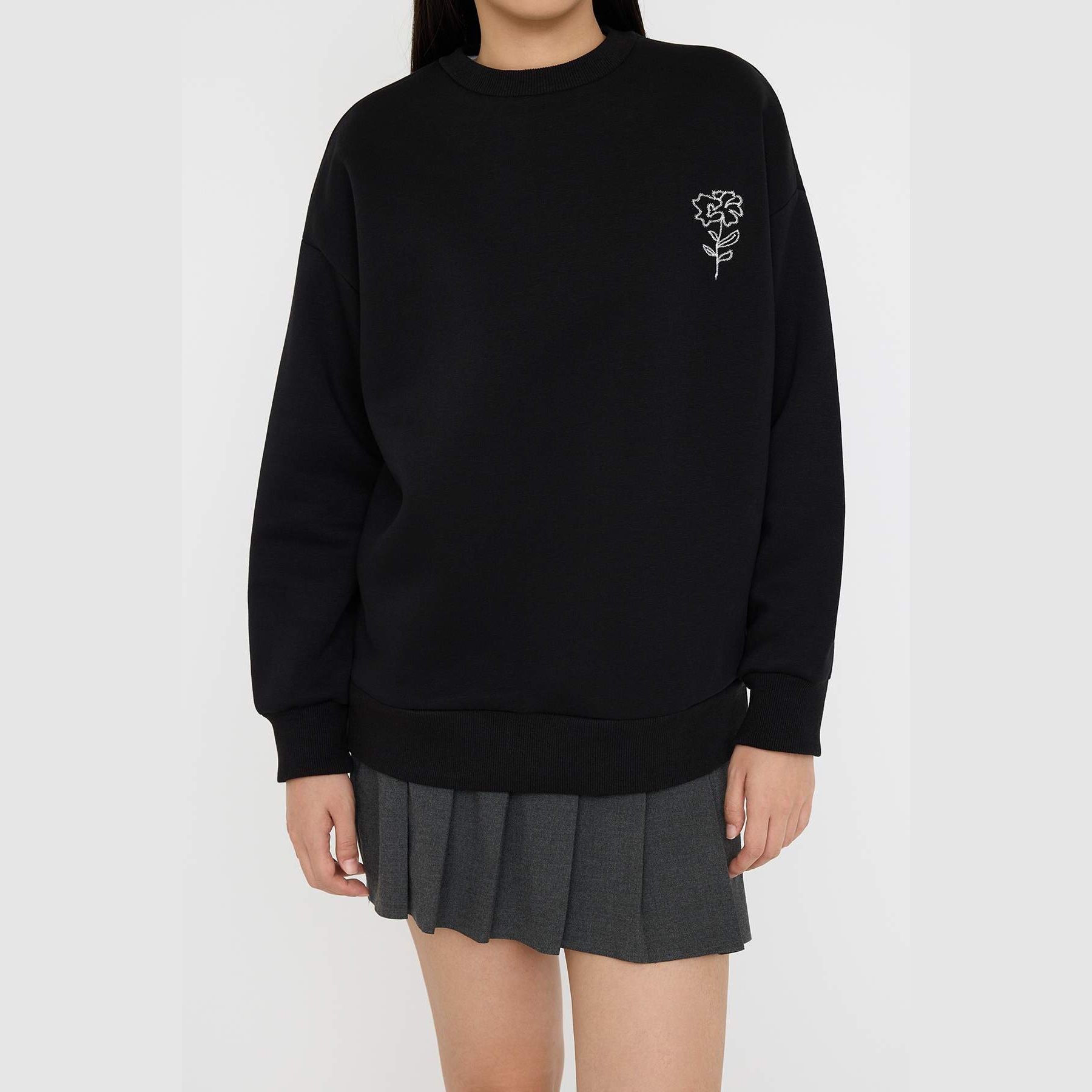 سويت شيرت تين – أسود بياقة عالية وتطريز زهور وقصة واسعة (دفء شتوي بإطلالة أنيقة شبابية)