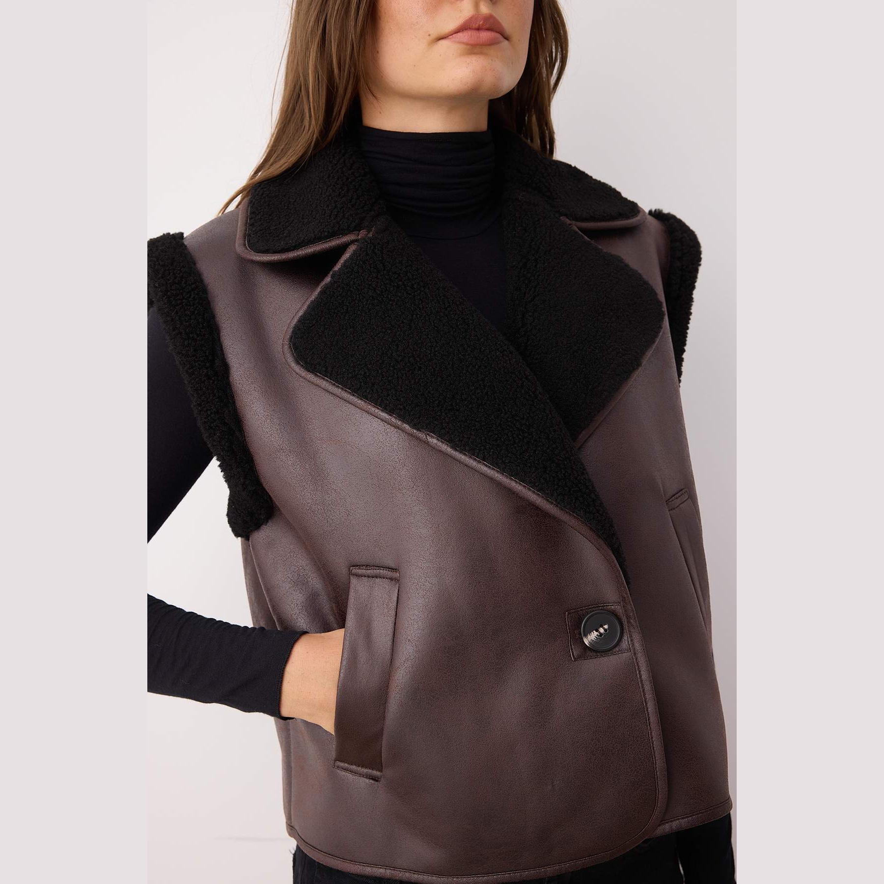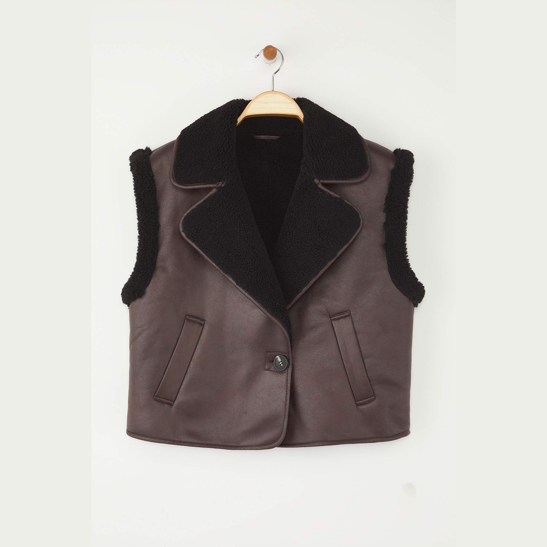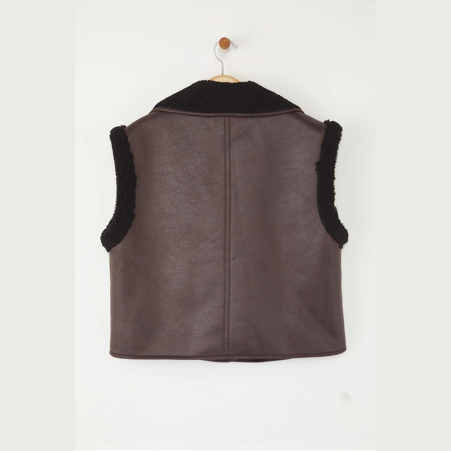 فيست نسائي بلون بني داكن، مصنوع من خامة سويد ناعمة ومبطّن بالكامل، مزين بتفاصيل من الفرو الصناعي تضيف لمسة دافئة وأنيقة. يأتي بقصة Regular مريحة لا تلتصق بالجسم، مما يوفر حرية في الحركة، ويمنح إطلالة شتوية عملية ومميزة.