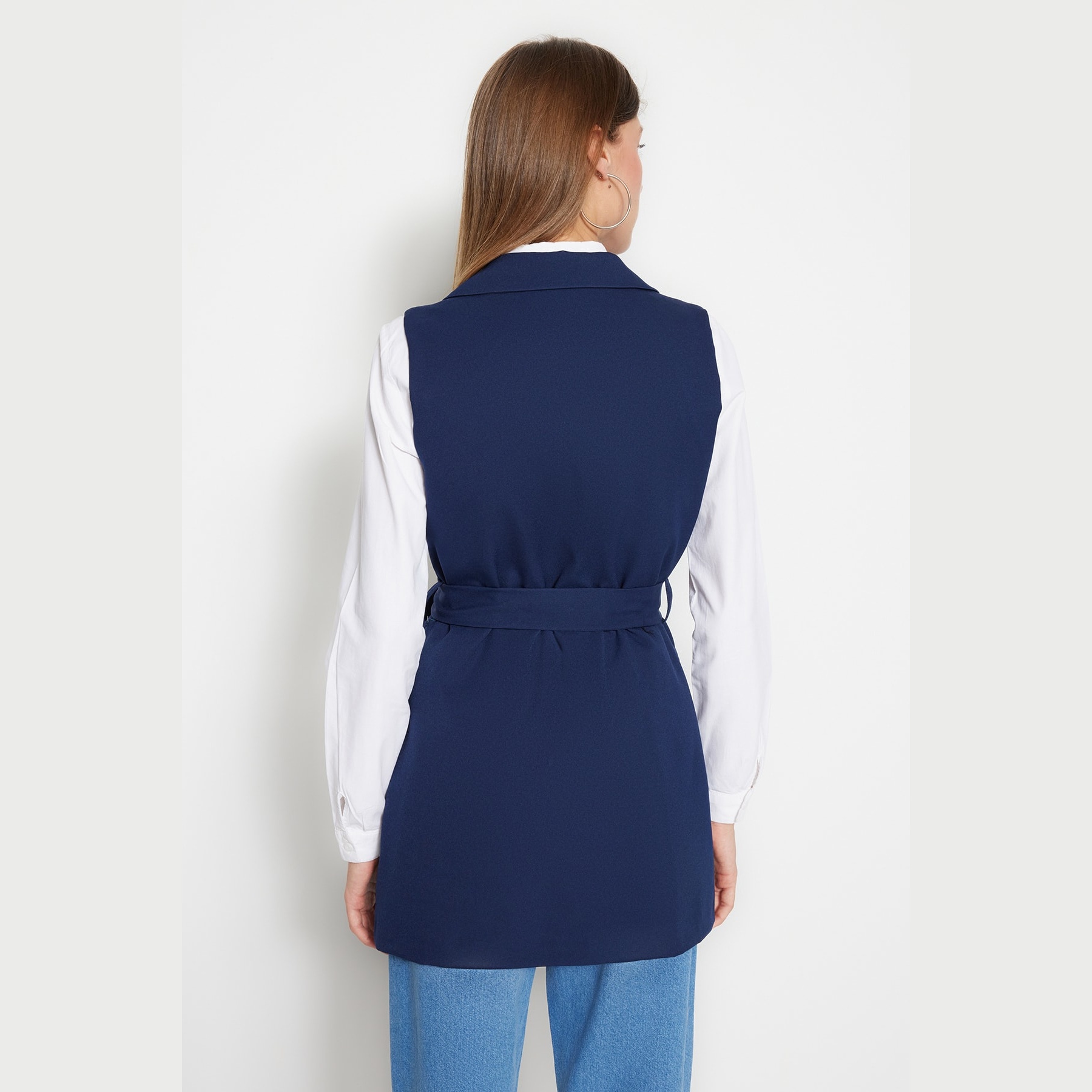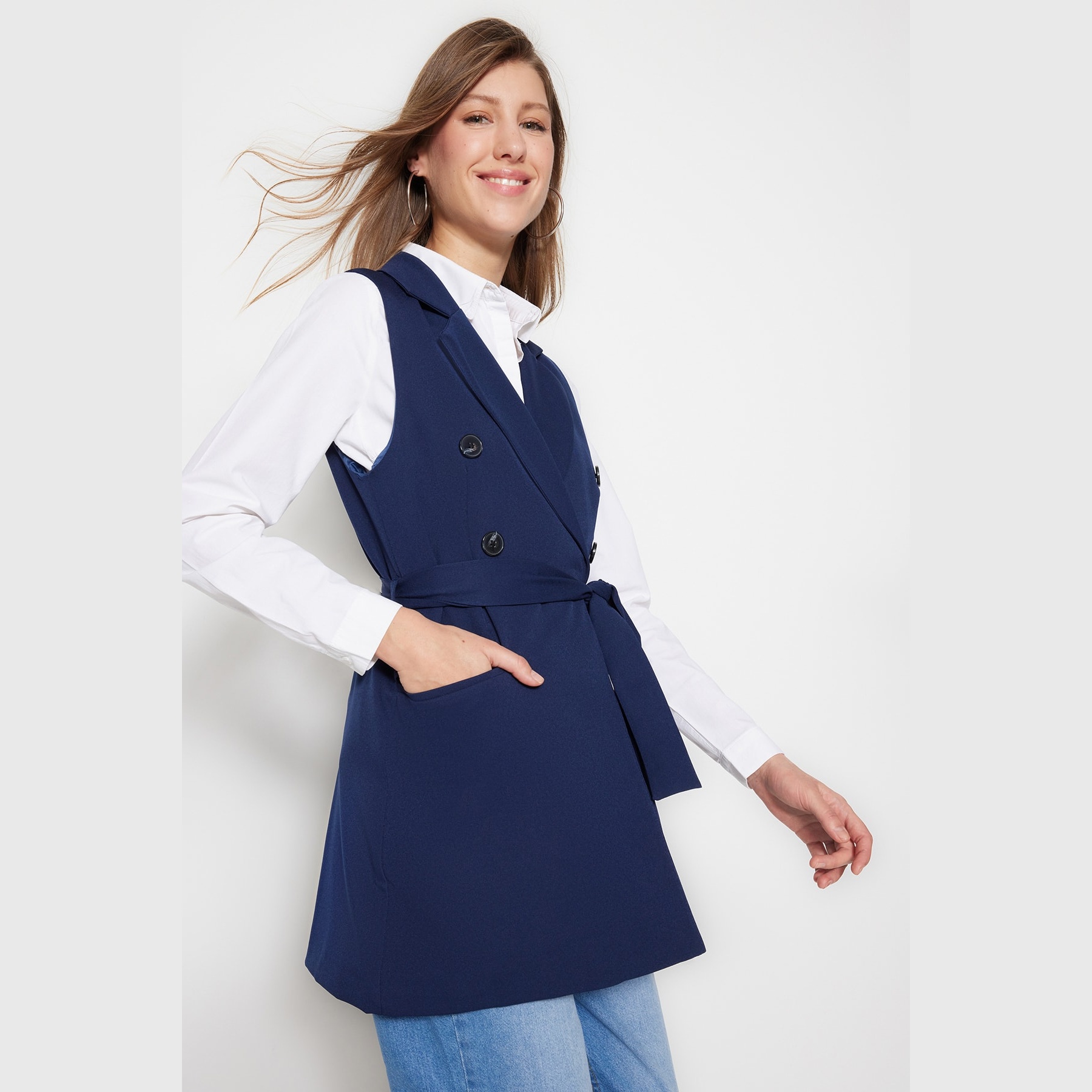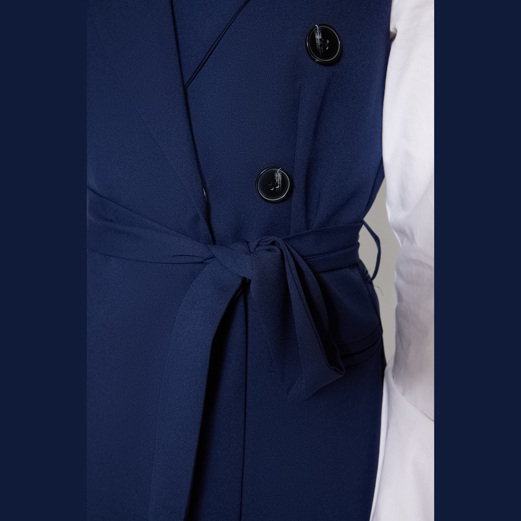 فيست نسائي – كحلي بقصة Regular وربطة خصر (تصميم محتشم أنيق بخامة دوكّوما مبطنة)