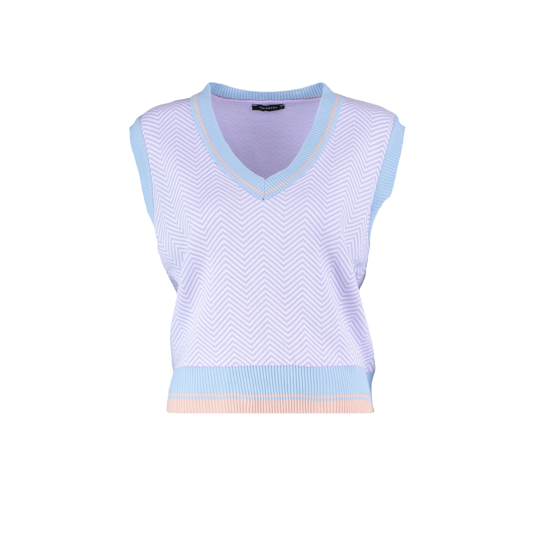 سُويڤتر نسائي بلون ليلكي، مصنوع من خامة تريكو ناعمة بتركيبة أكرليك، يتميز بقصة Oversize واسعة تمنح راحة في الحركة، وياقة V أنثوية تضفي لمسة ناعمة على الإطلالة، مع نقشة هندسية تضيف طابعًا عصريًا مميزًا. تصميم بدون أكمام مثالي للتنسيق مع قمصان بيضاء أو بلوزات خفيفة.