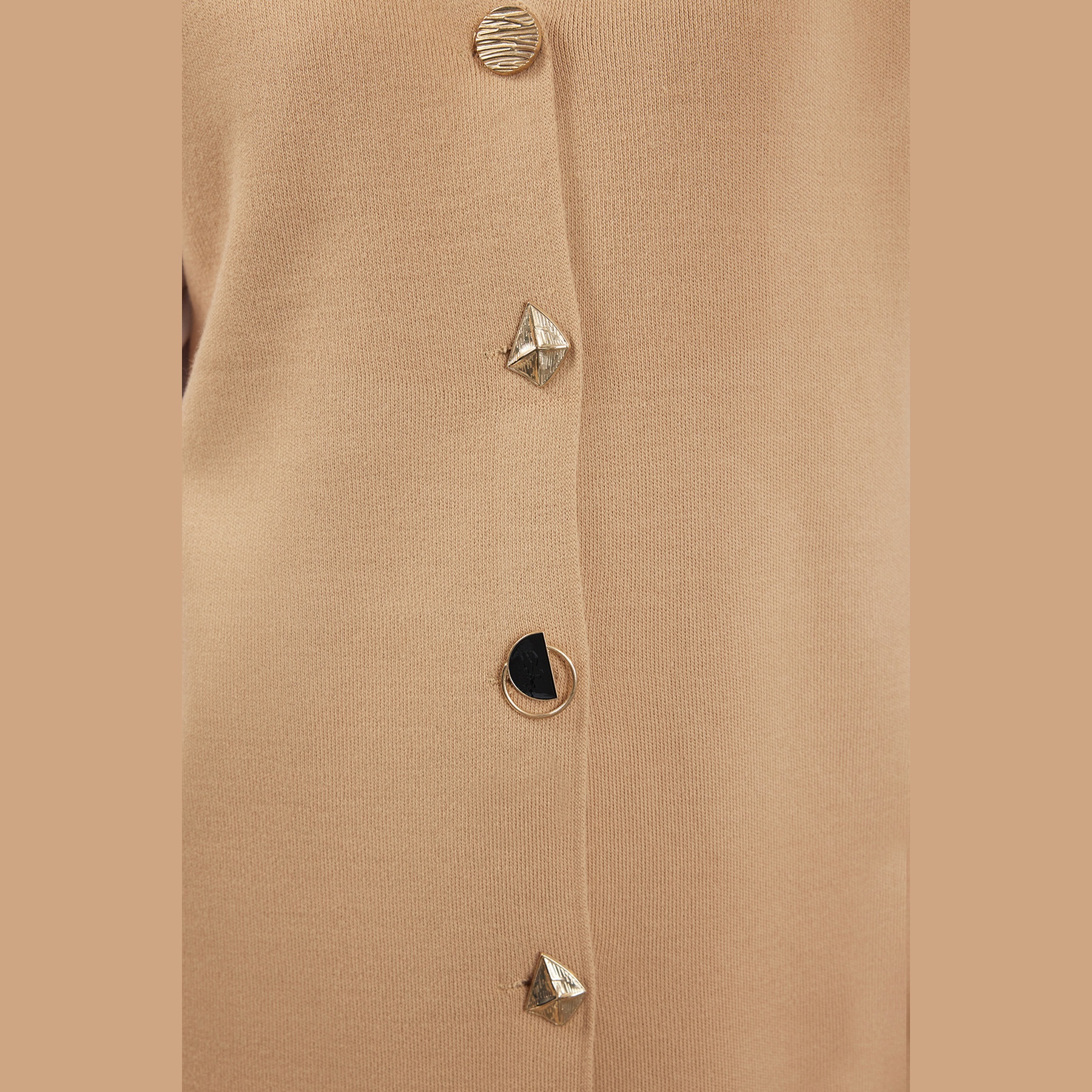 سُويڤتر نسائي – بيج بأزرار إكسسوارية وخامة تريكو (تصميم محتشم مريح بلمسة أنثوية)