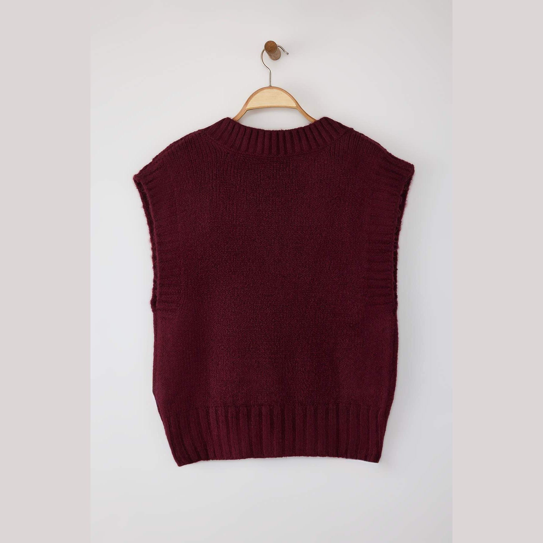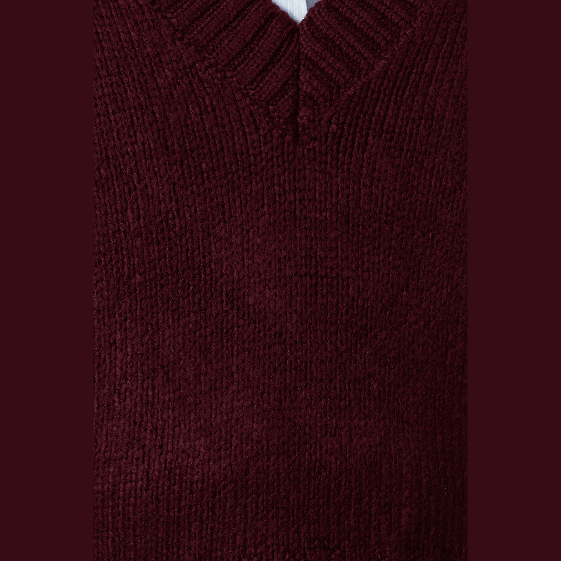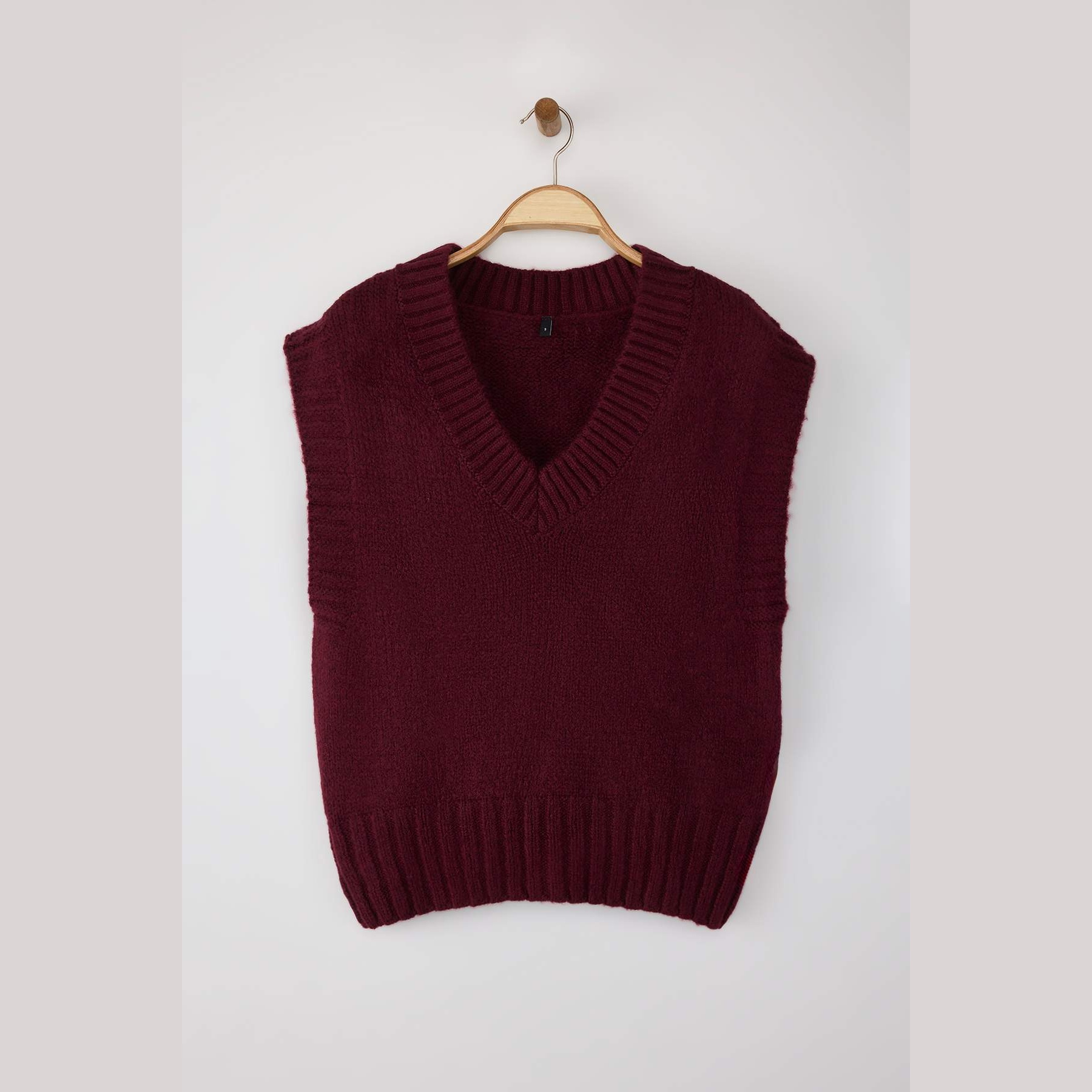 سُويڤتر نسائي بلون بوردو، مصنوع من خامة تريكو ناعمة وسميكة، يتميز بقصة Oversize واسعة تمنح راحة في الحركة، وياقة V أنثوية تضفي لمسة ناعمة على الإطلالة، مع تصميم بدون أكمام مثالي للتنسيق مع قمصان أو بلوزات خفيفة. خيار مثالي للإطلالات اليومية في الأجواء الباردة.