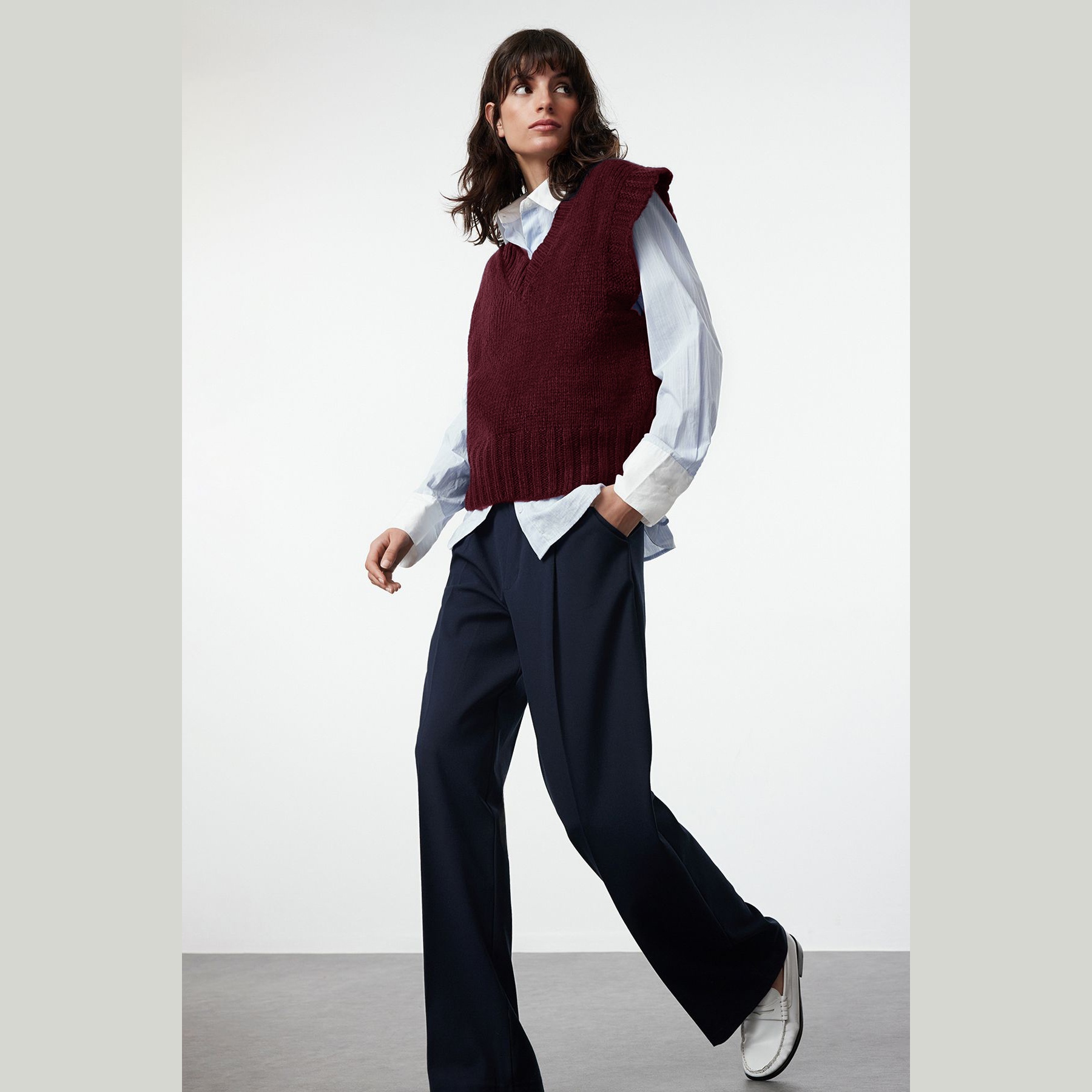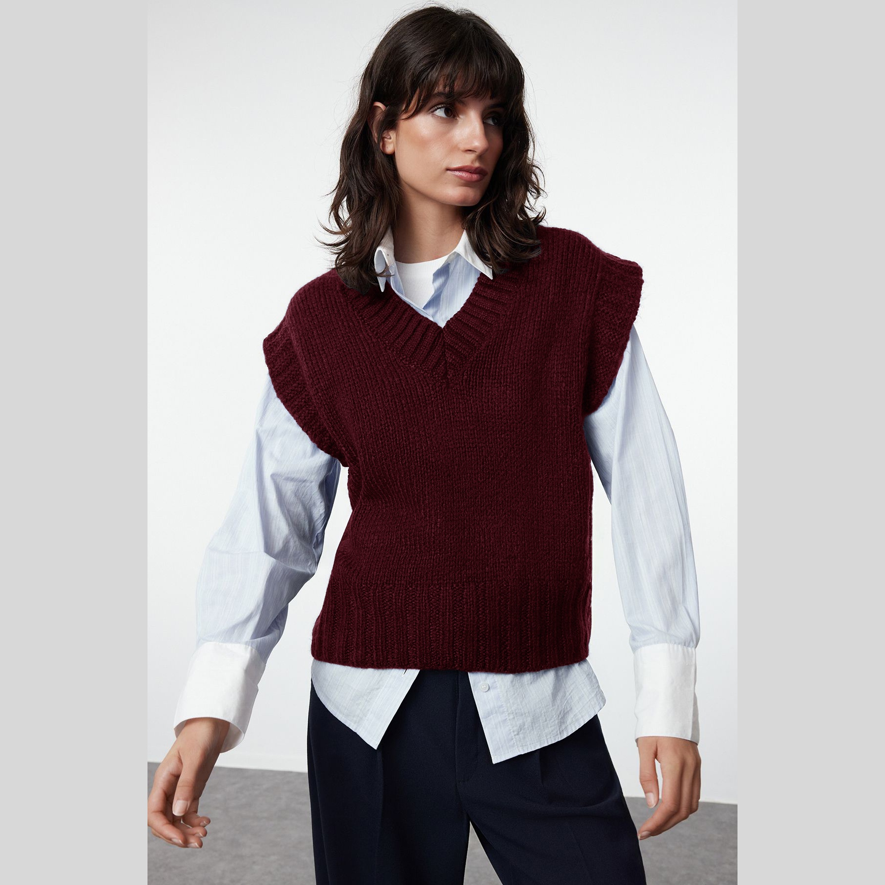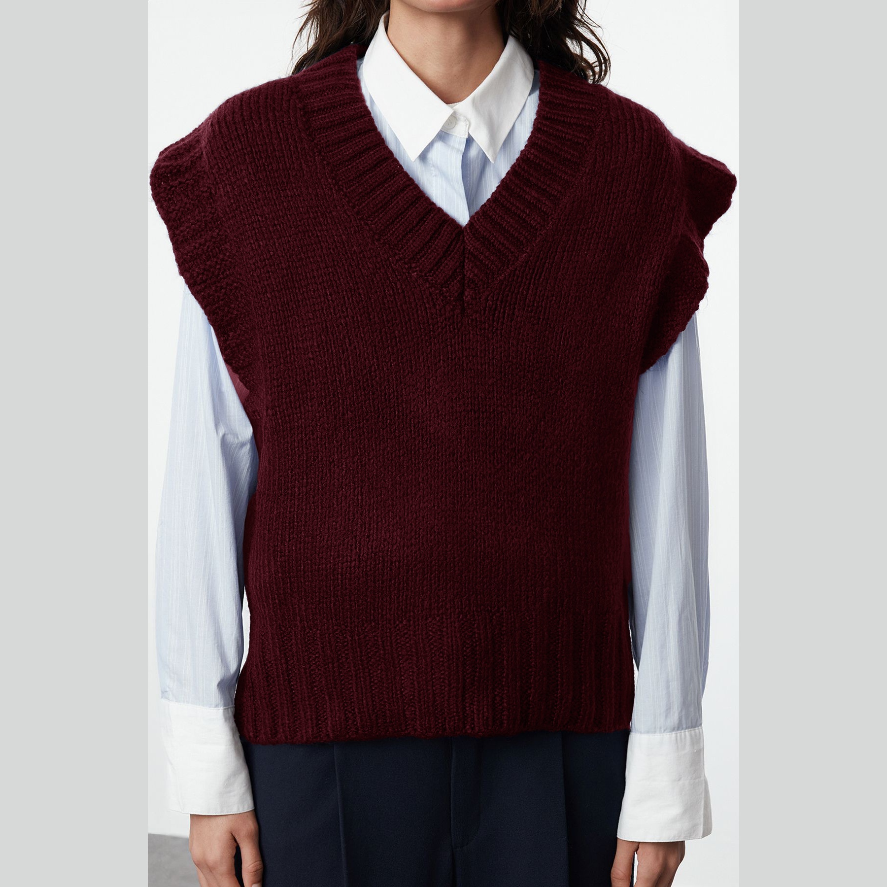 سُويڤتر نسائي بلون بوردو، مصنوع من خامة تريكو ناعمة وسميكة، يتميز بقصة Oversize واسعة تمنح راحة في الحركة، وياقة V أنثوية تضفي لمسة ناعمة على الإطلالة، مع تصميم بدون أكمام مثالي للتنسيق مع قمصان أو بلوزات خفيفة. خيار مثالي للإطلالات اليومية في الأجواء الباردة.