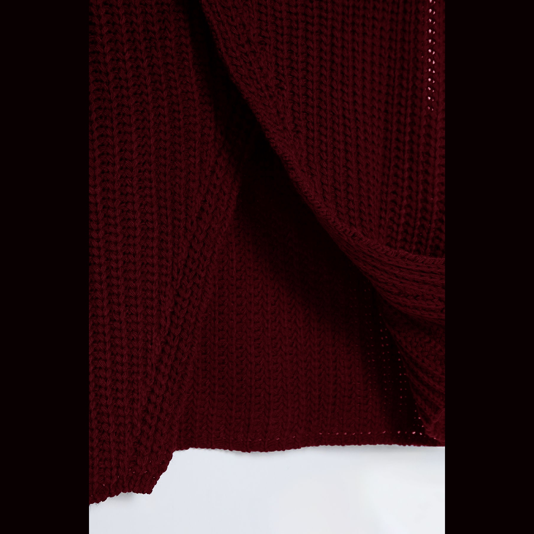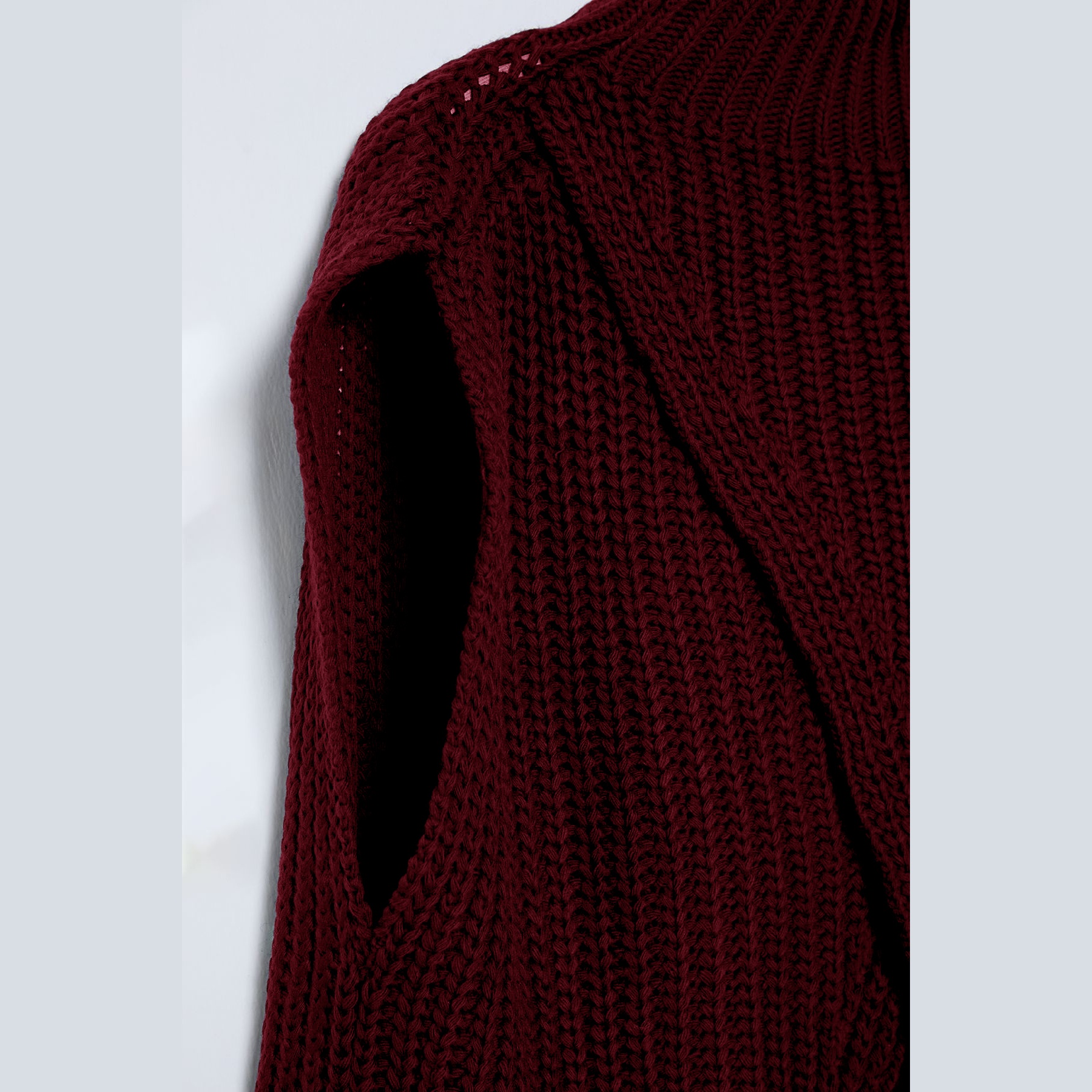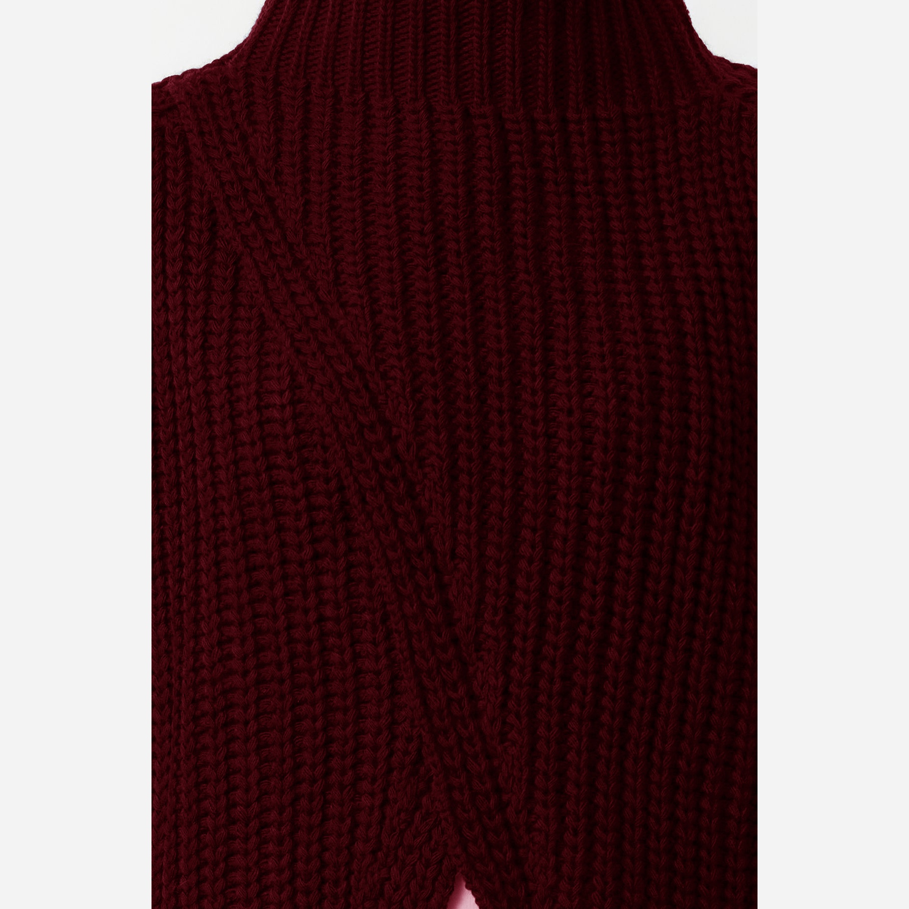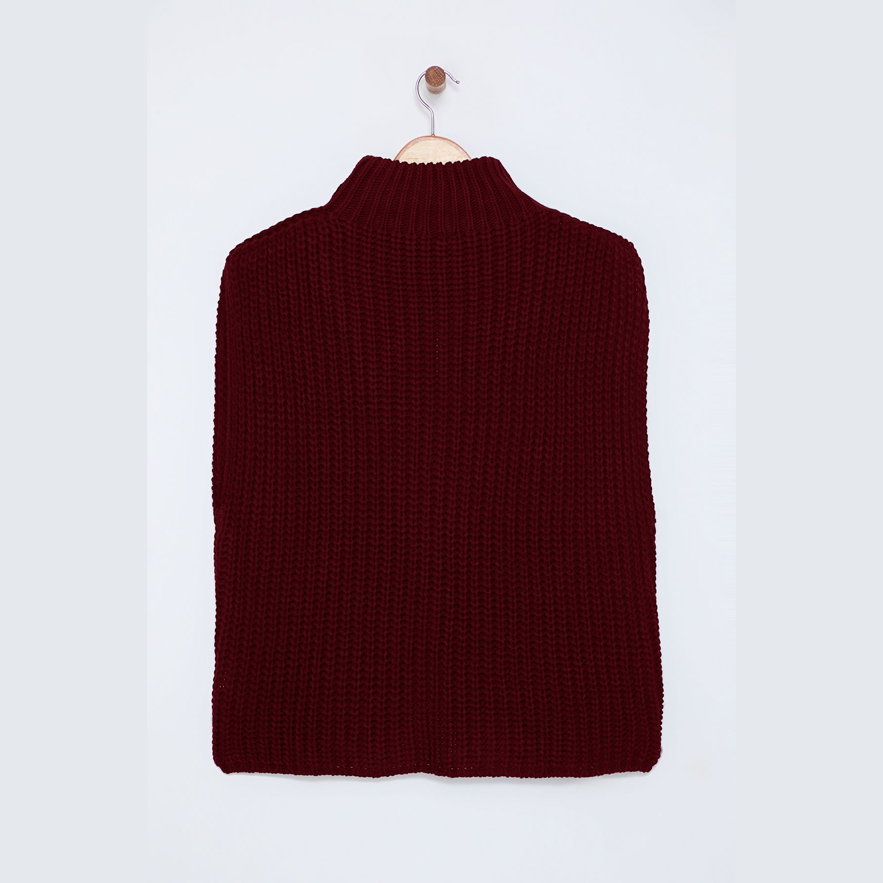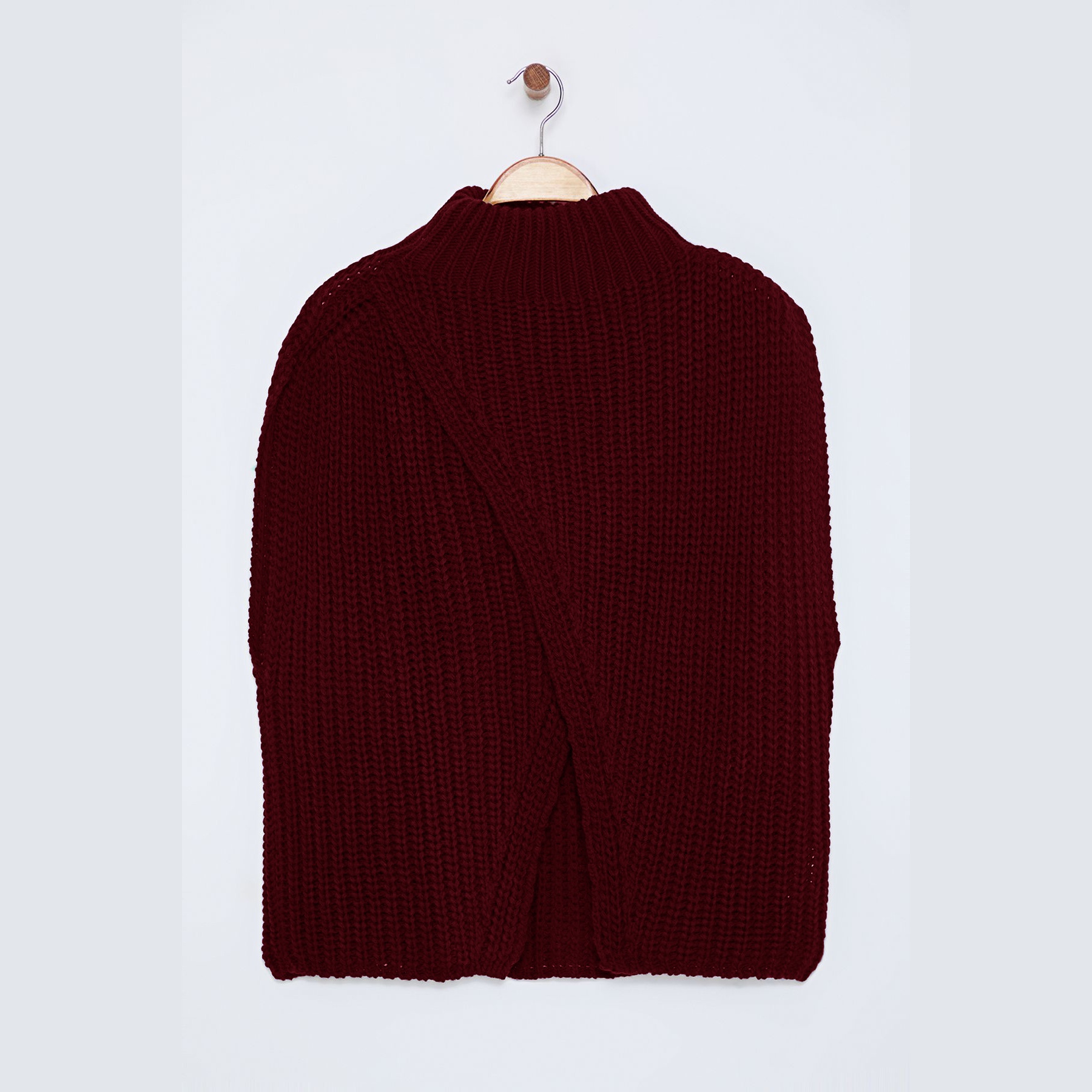سُويڤتر نسائي – بوردو بياقة عالية وشق جانبي (تصميم شتوي عصري بخامة تريكو سميكة)