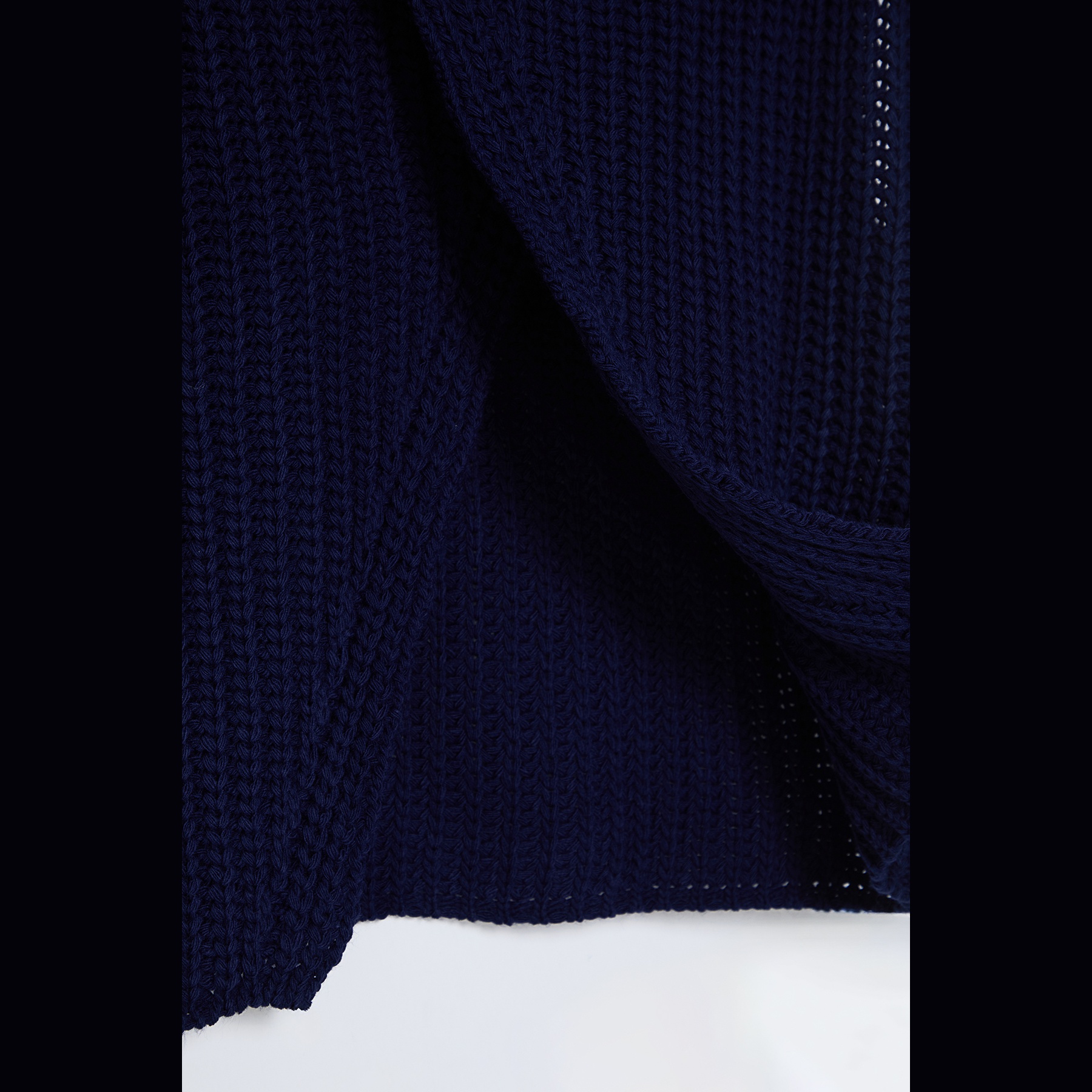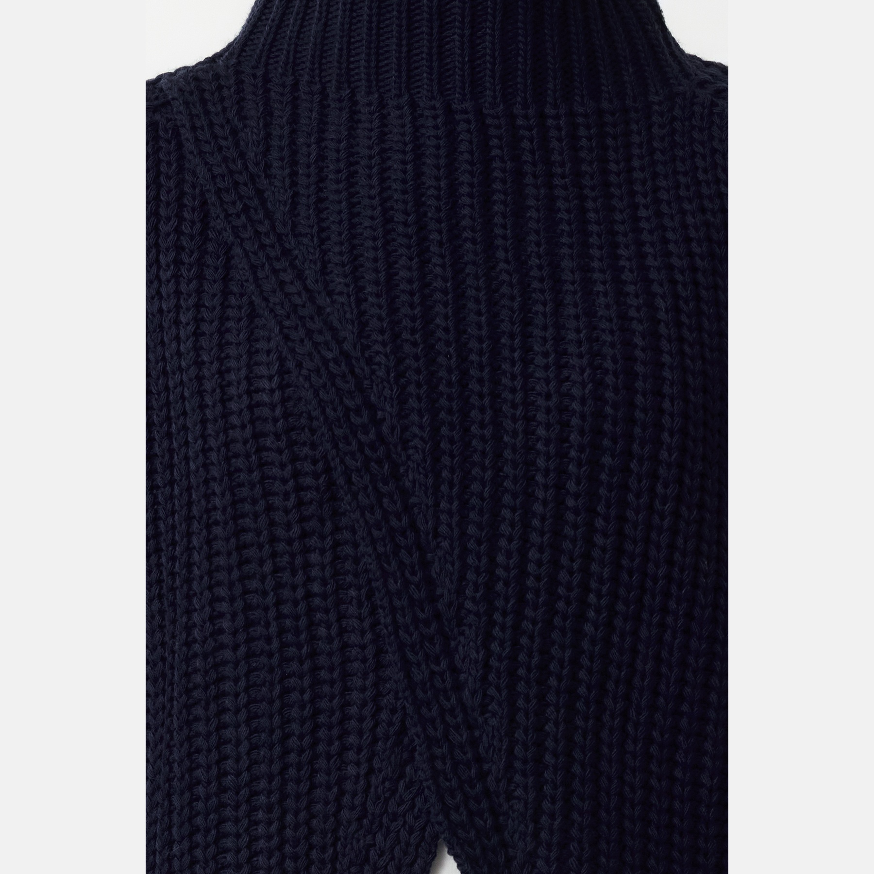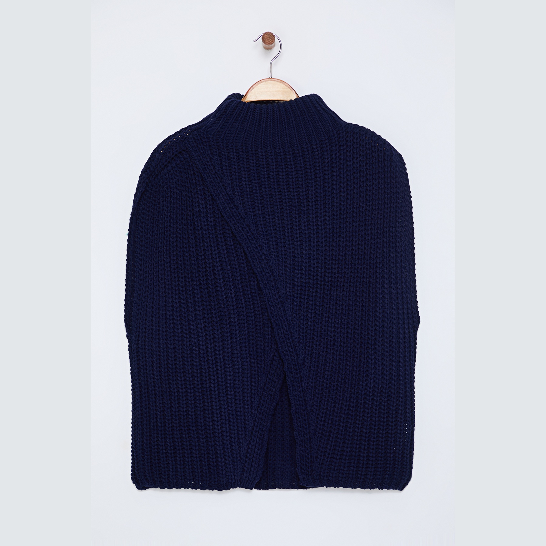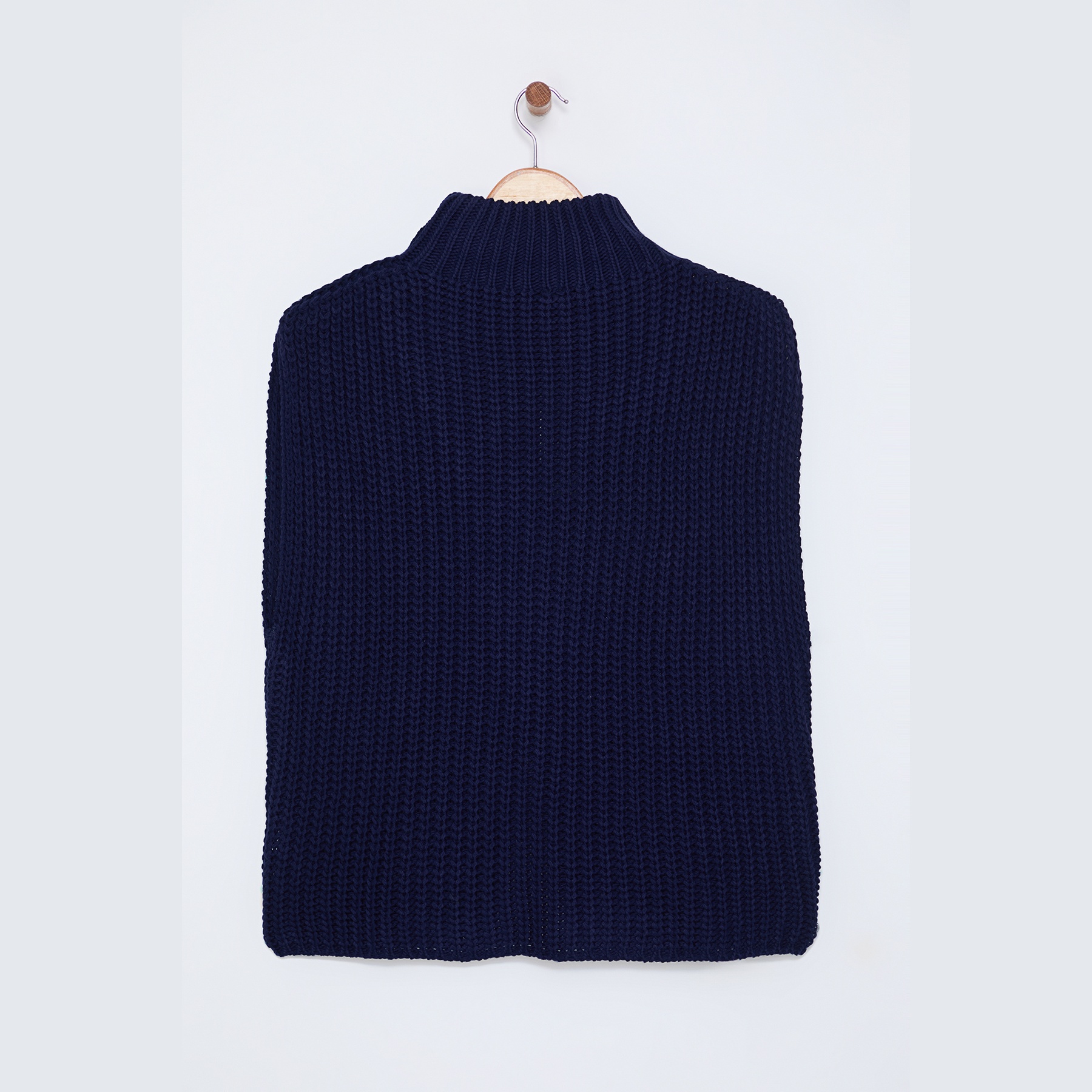 بانشو نسائي – كحلي بياقة عالية وشق جانبي (تصميم شتوي واسع بخامة تريكو سميكة)