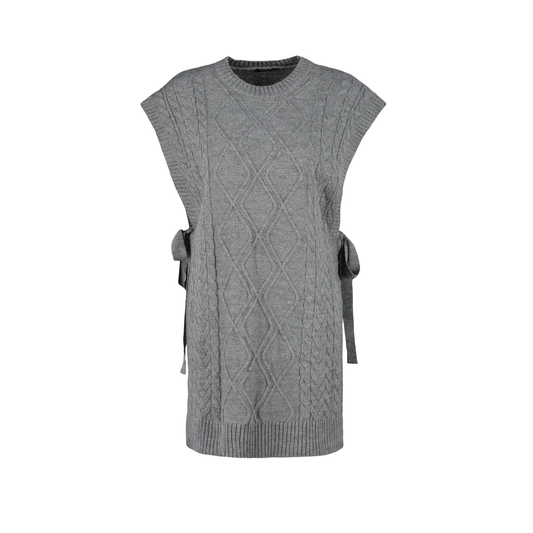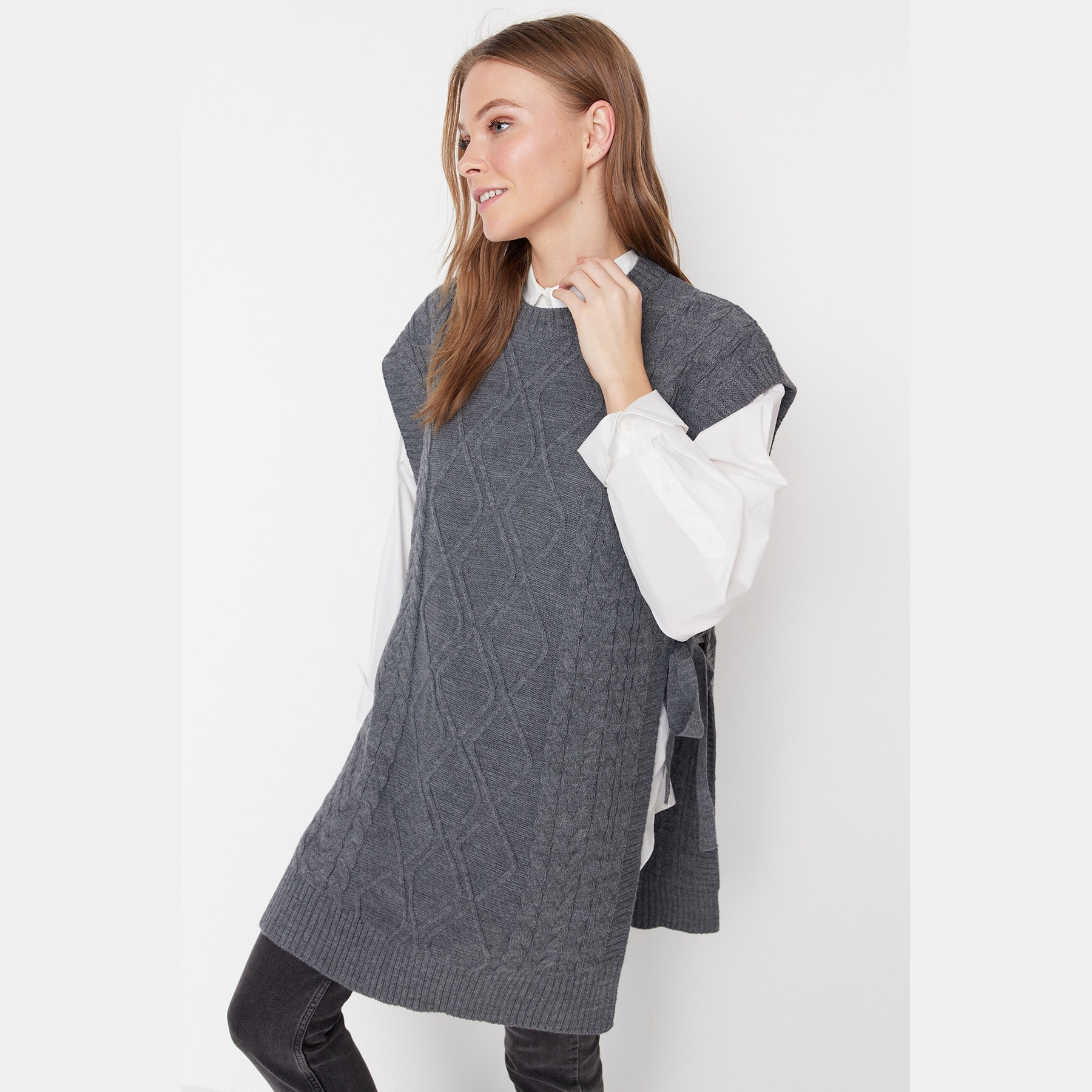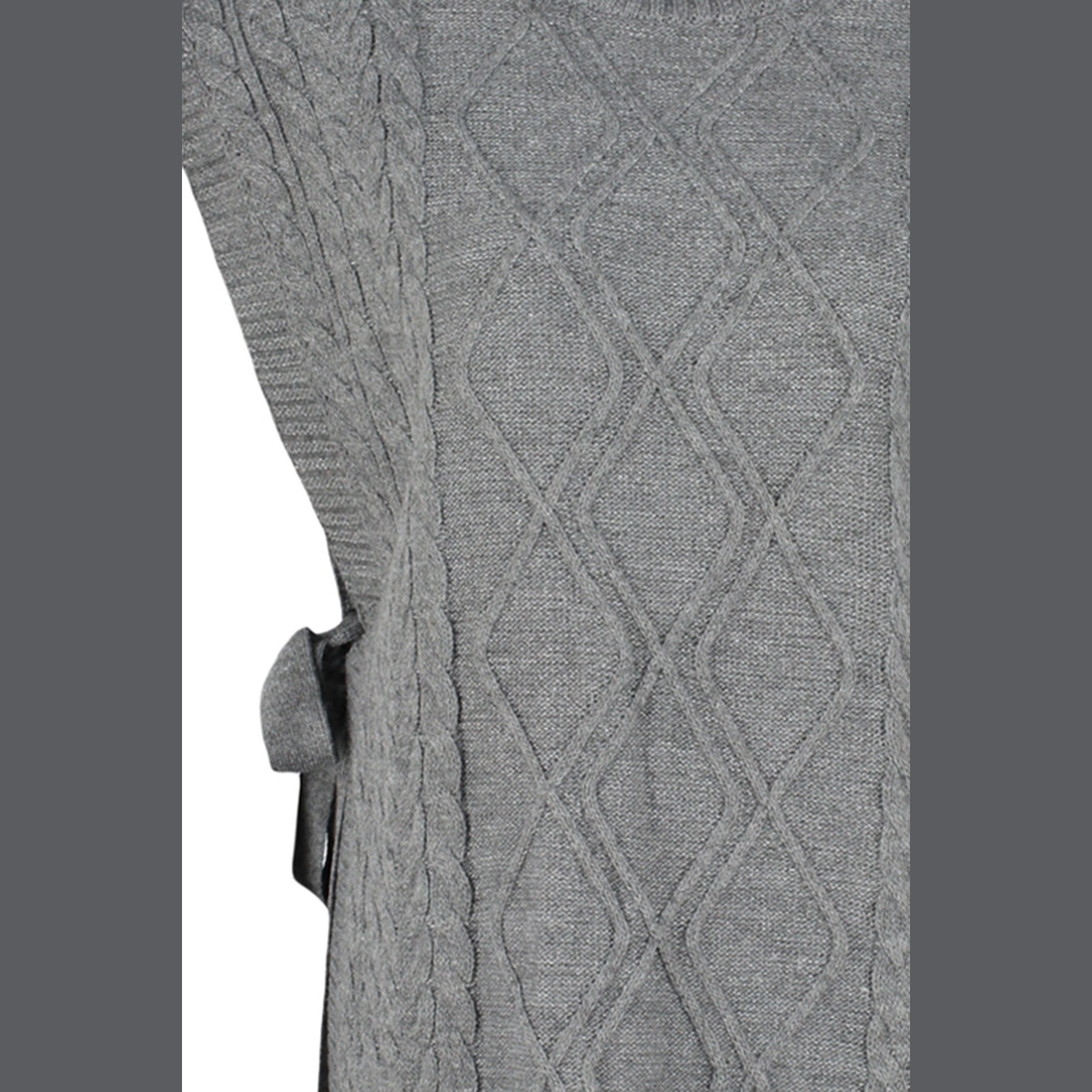سُويڤتر نسائي بلون أنثراسايت، مصنوع من خامة تريكو ناعمة بتركيبة أكرليك، يتميز بقصة Relaxed مريحة، وياقة دائرية بسيطة، مع حياكة بارزة بأسلوب "سلكة الشعر" تضيف لمسة كلاسيكية، وربطة جانبية قابلة للتعديل تمنح تحكمًا في الشكل. تصميم بدون أكمام مثالي للإطلالات اليومية المحتشمة في المواسم الانتقالية.