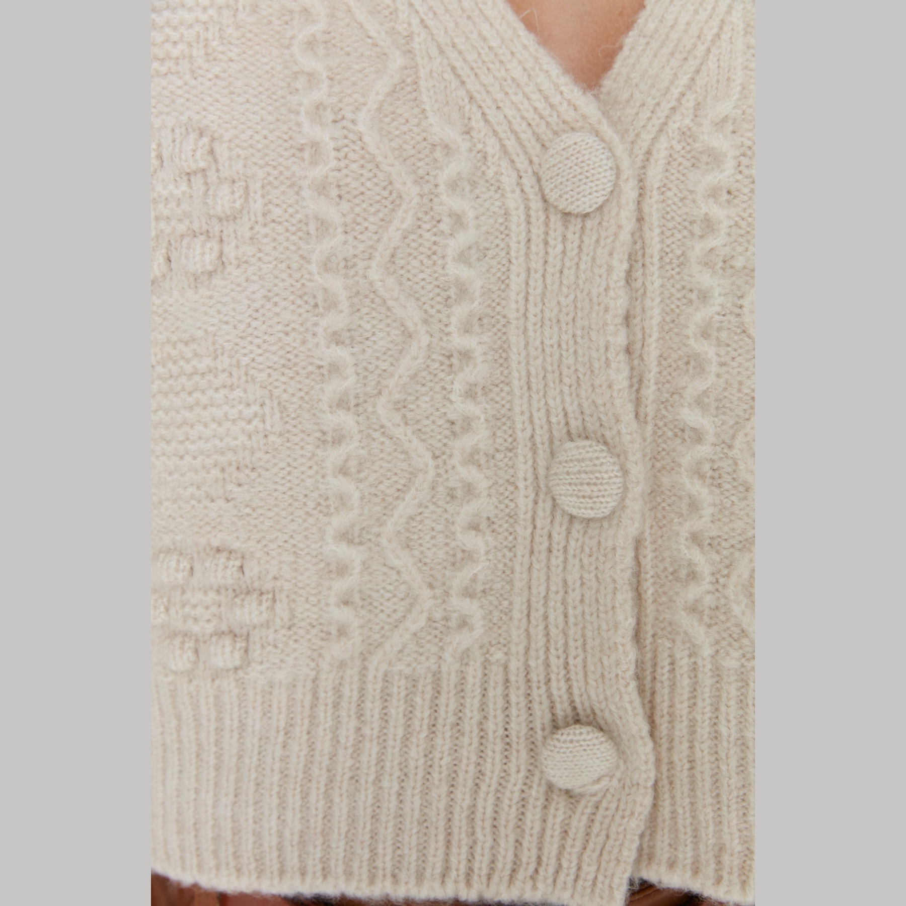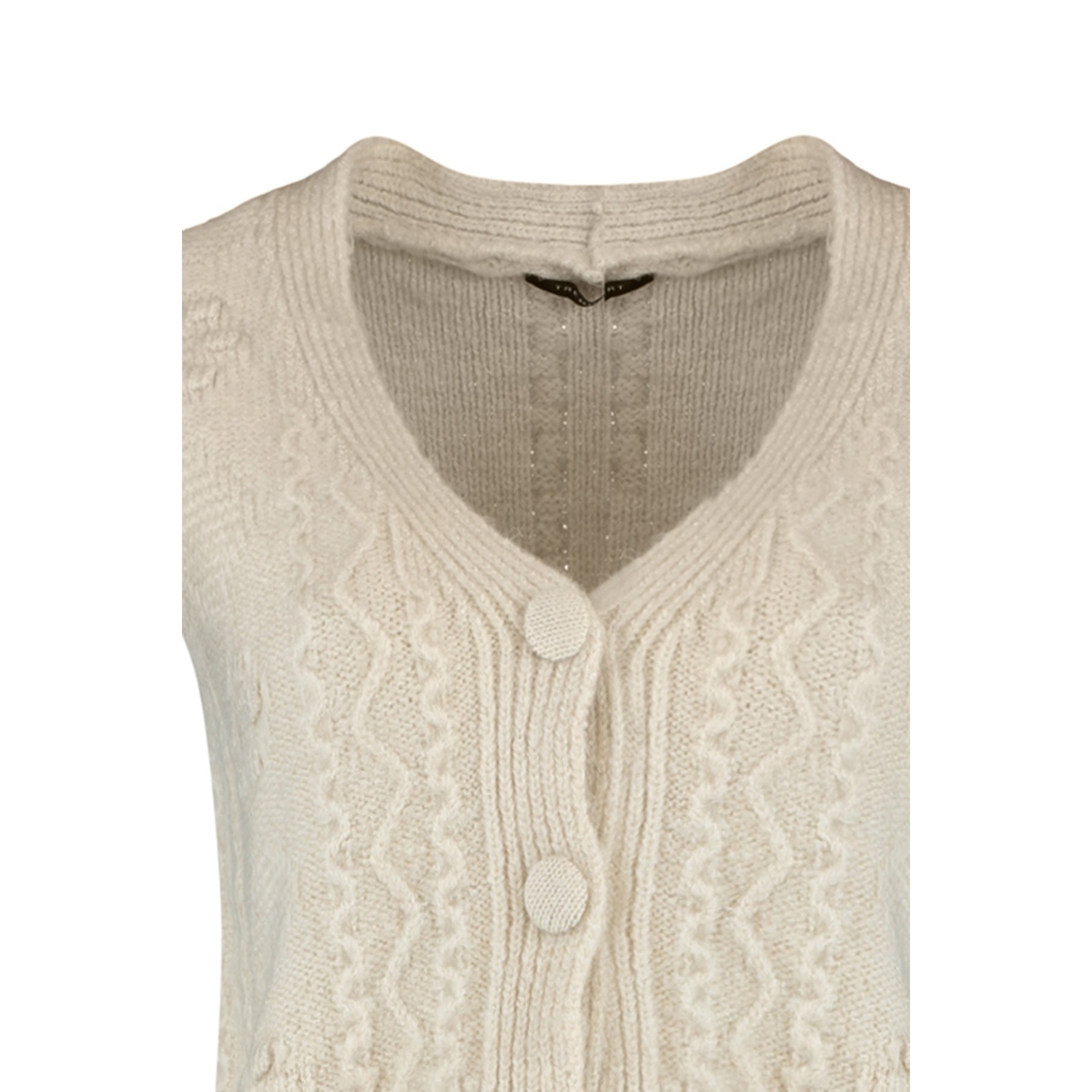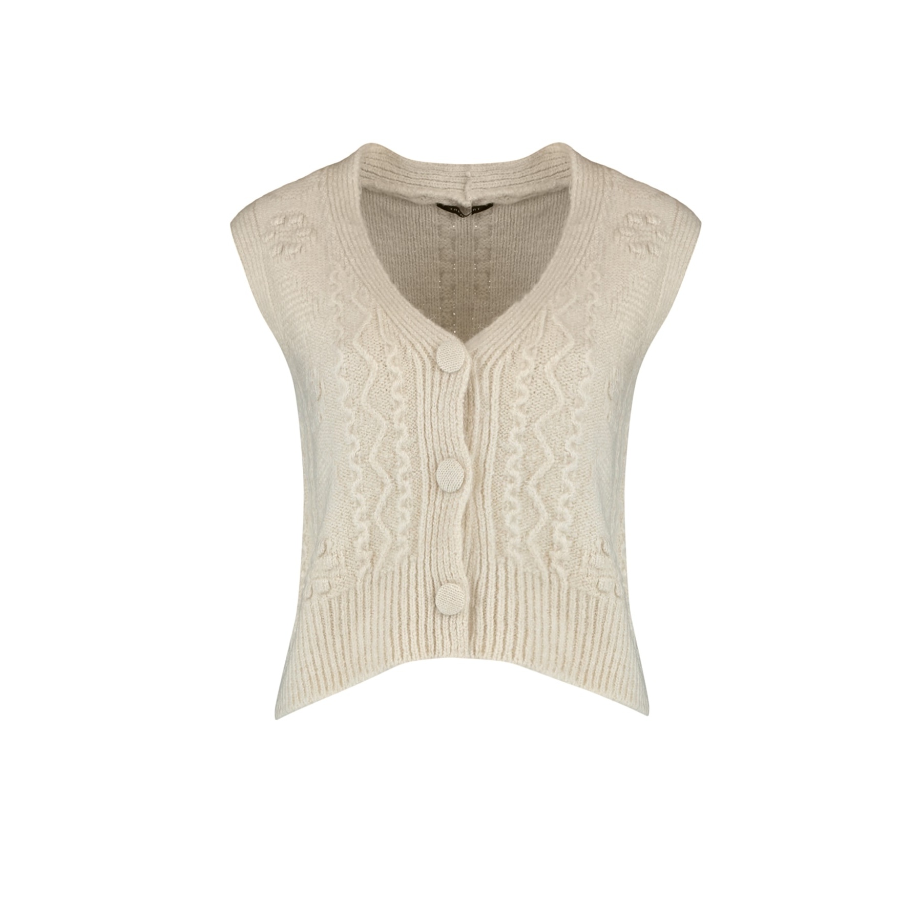سُويڤتر نسائي بلون بيج، مصنوع من خامة تريكو ناعمة بتركيبة أكرليك وبوليستر، يتميز بقصة Regular مريحة، وياقة V أنثوية، مع تصميم بدون أكمام يمنح حرية في التنسيق. خيار مثالي للإطلالات اليومية في فصلي الخريف والربيع.