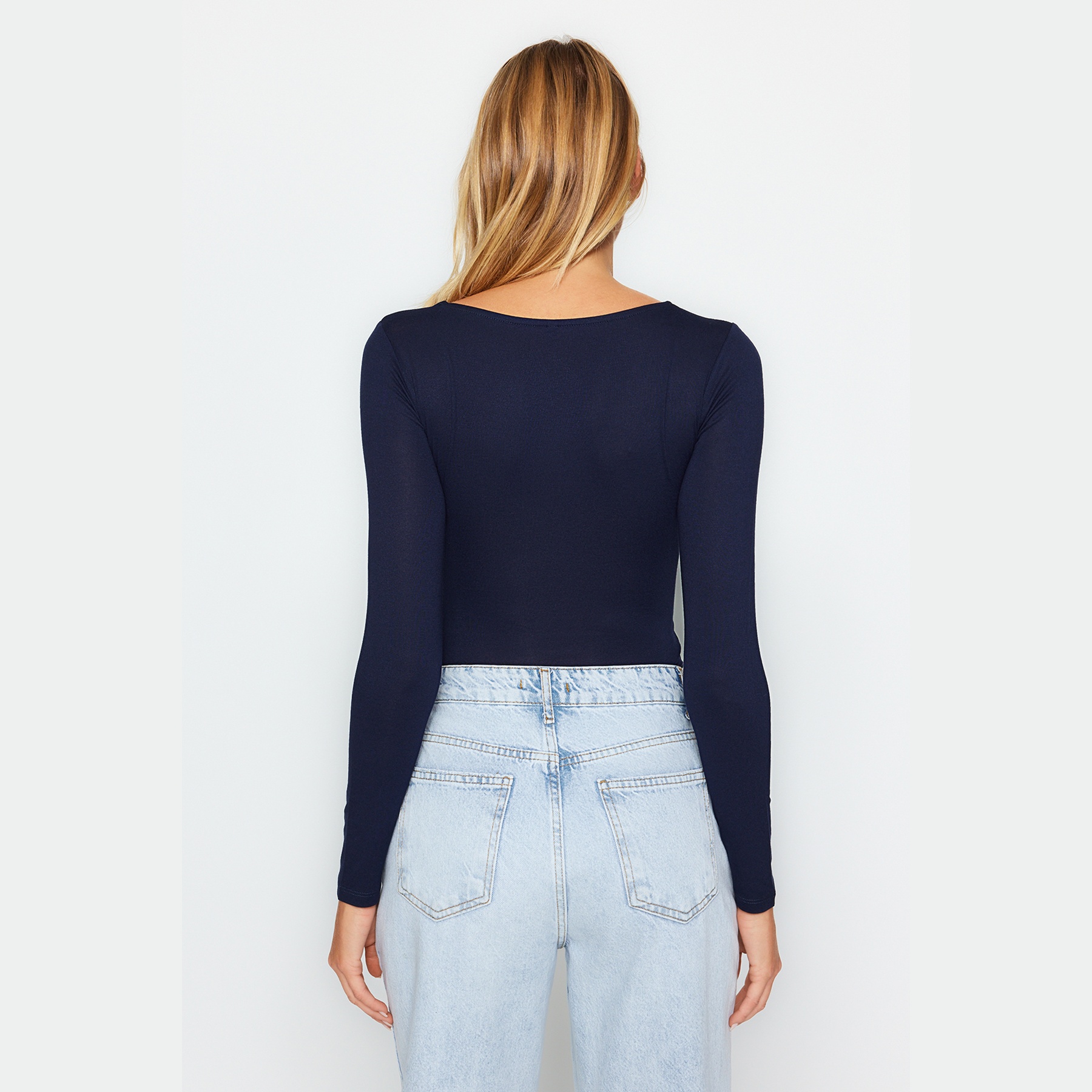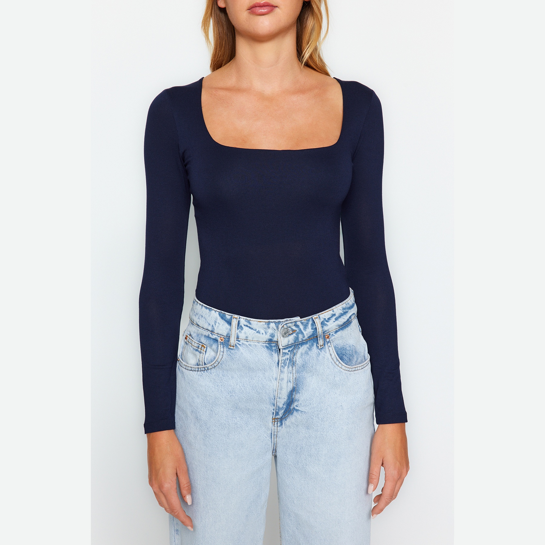 بودي نسائي – كحلي بياقة مربعة وقصة ضيقة (تصميم عملي بخامة بريميوم مطاطية)