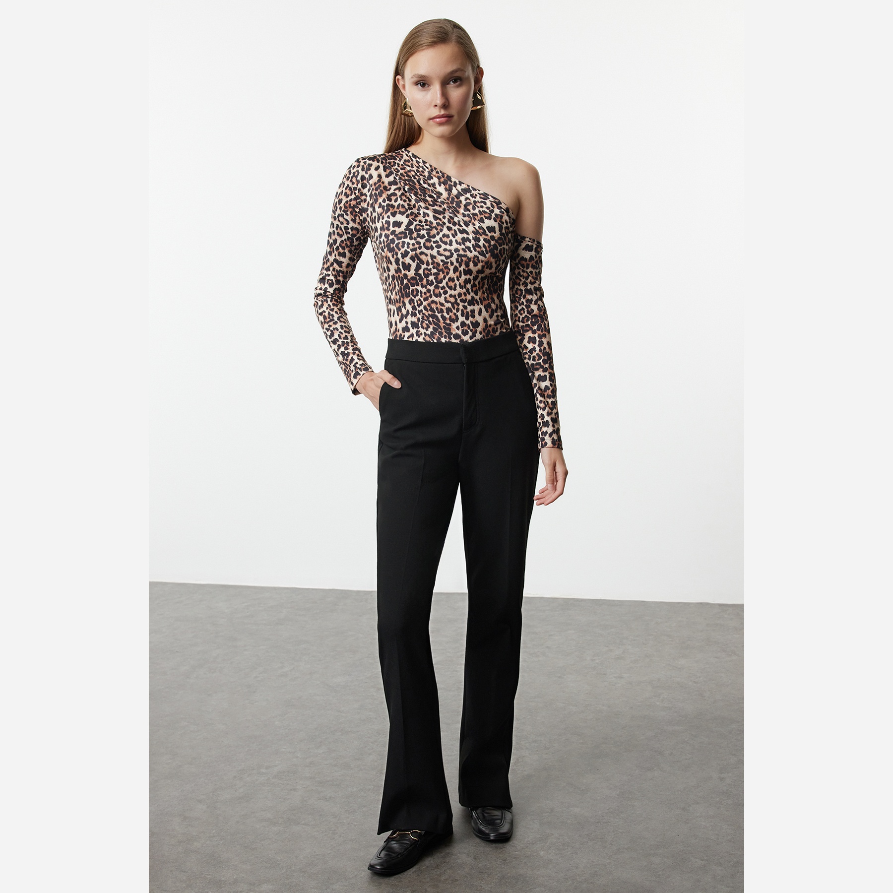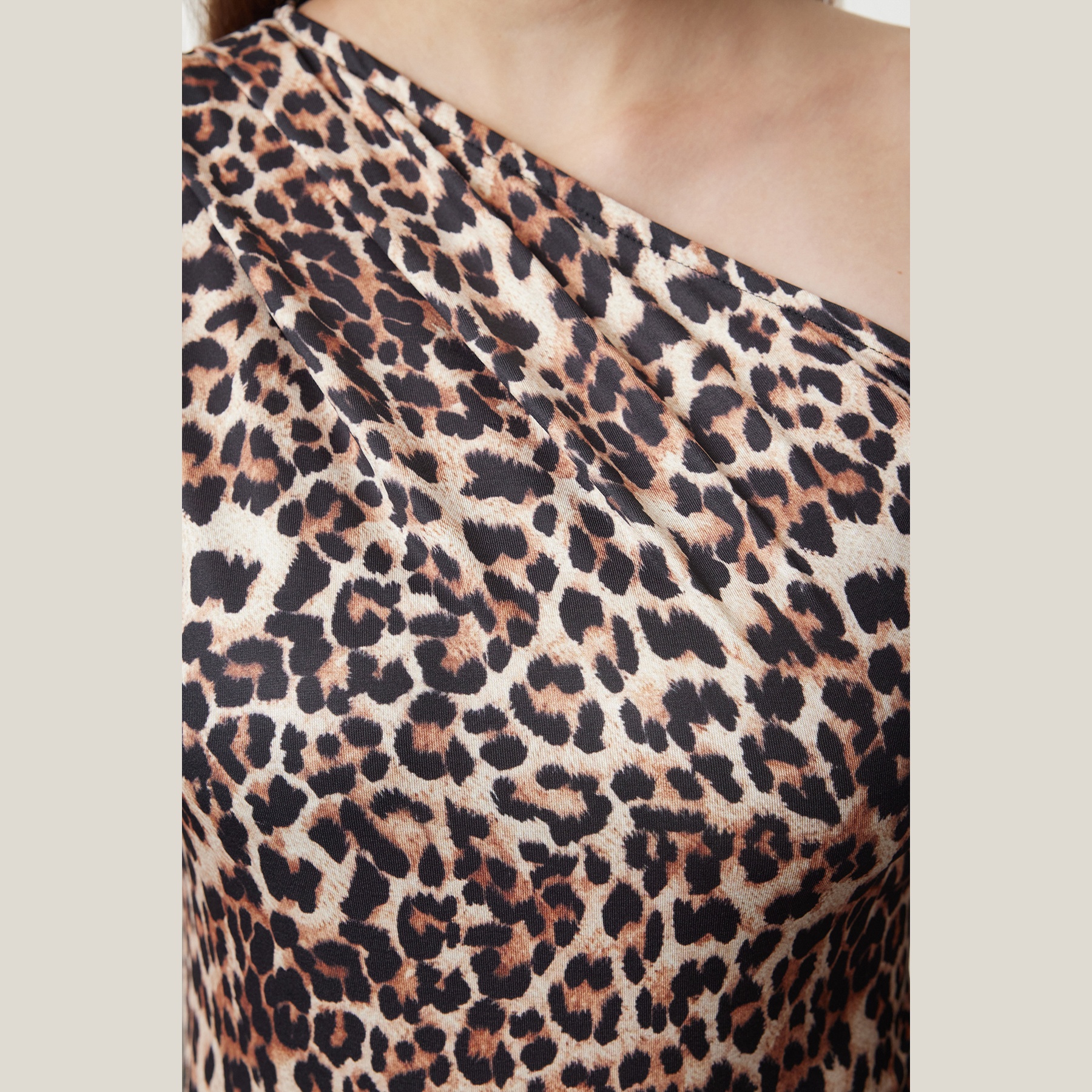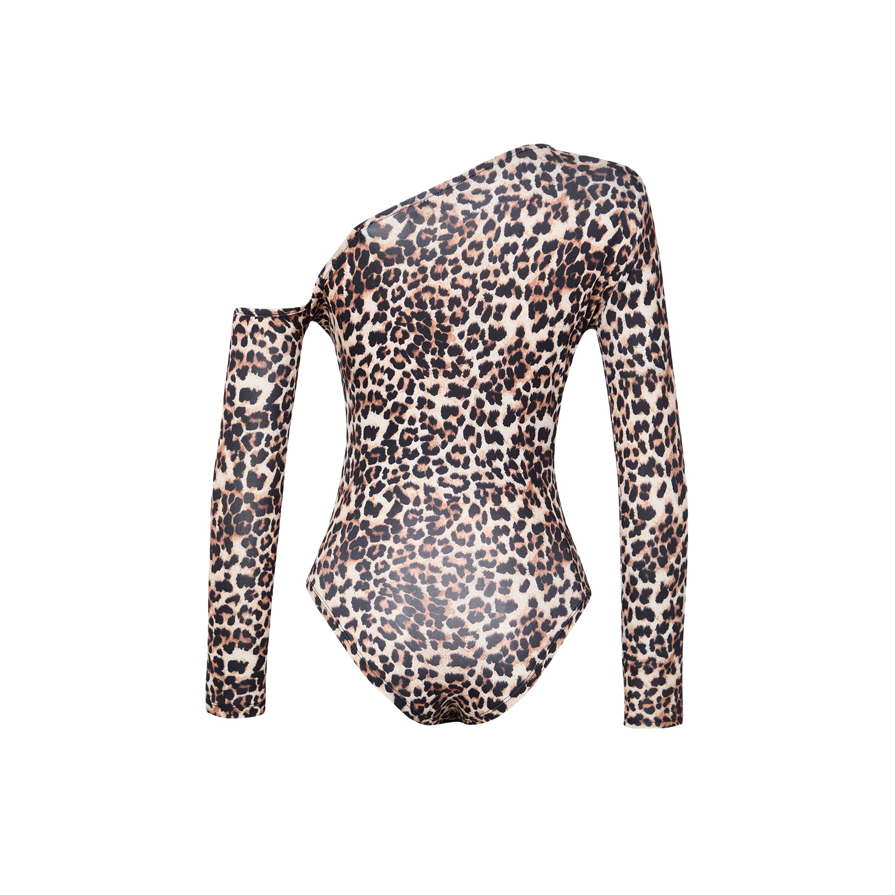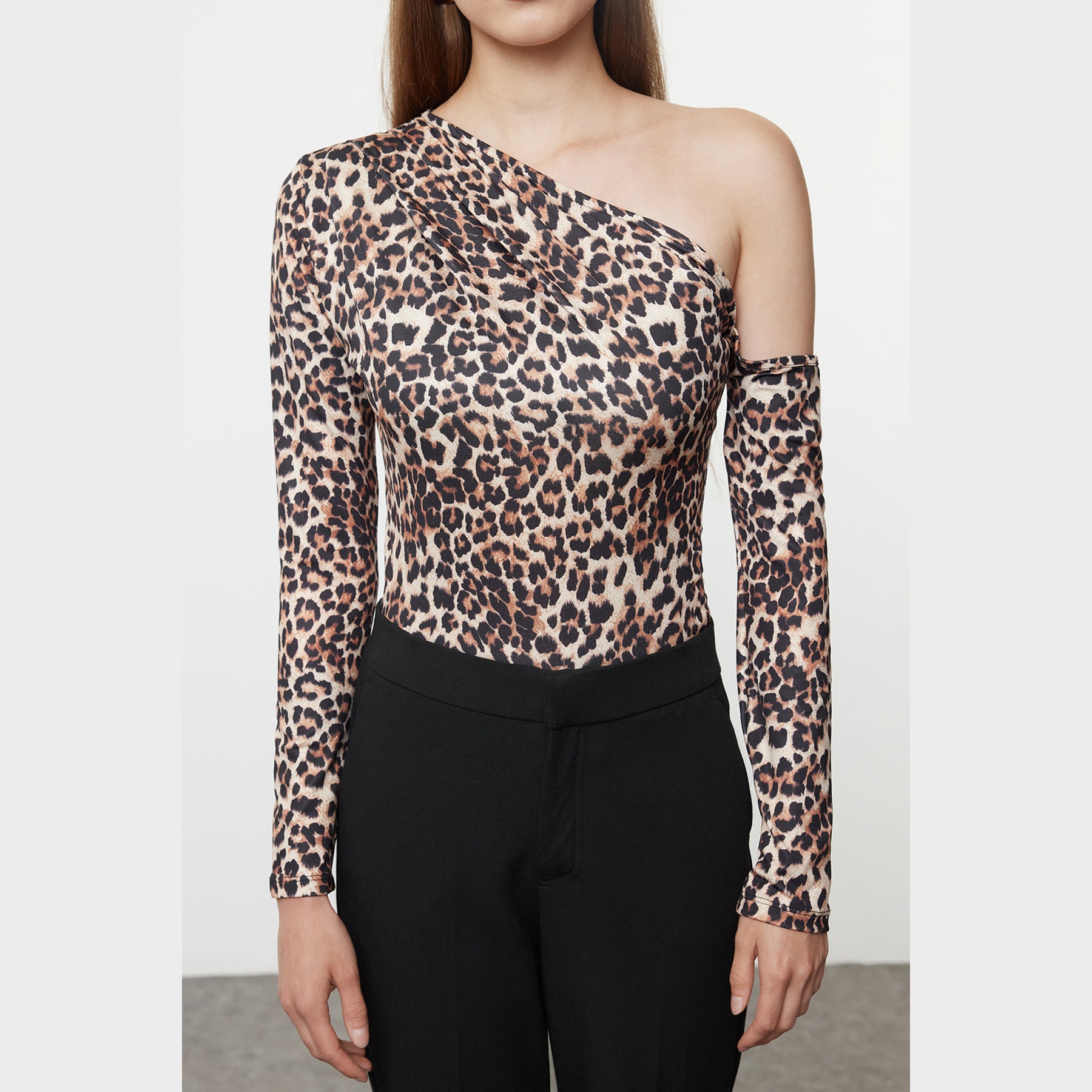 بودي نسائي – متعدد الألوان بطبعة حيوانية وياقة غير متناظرة (تصميم جريء بخامة مطاطية مريحة)