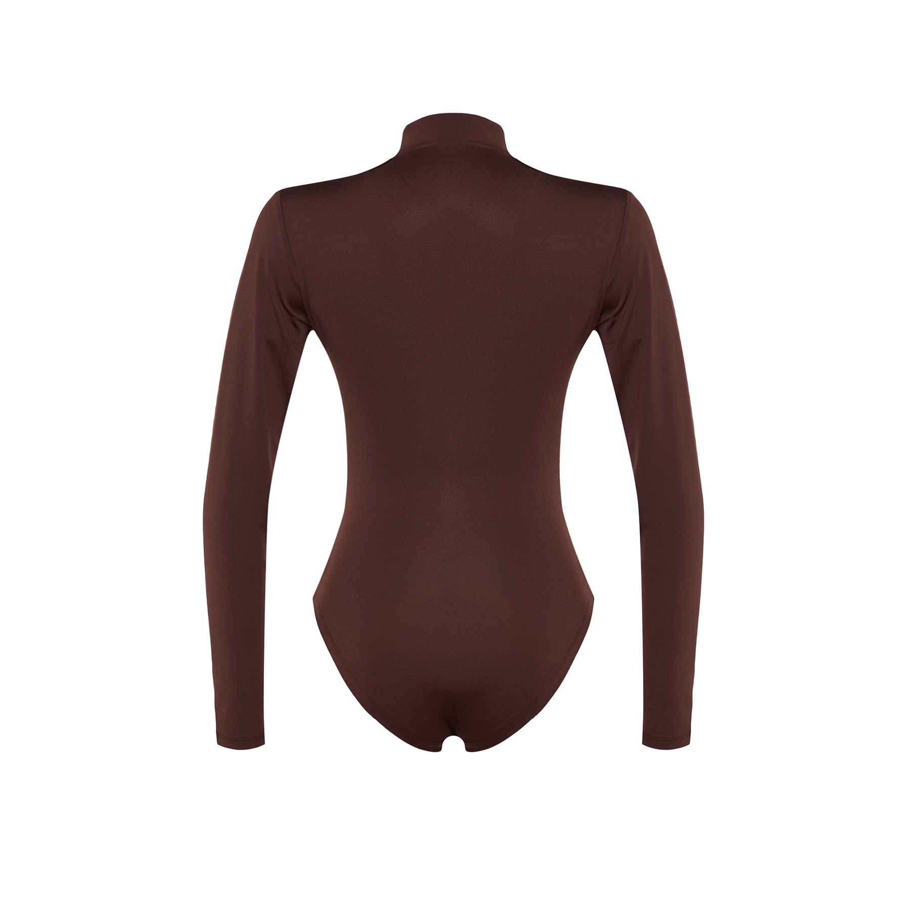بودي نسائي – بني بياقة عالية وبُزُوغ أمامي (تصميم أنيق بخامة مطاطية مريحة)