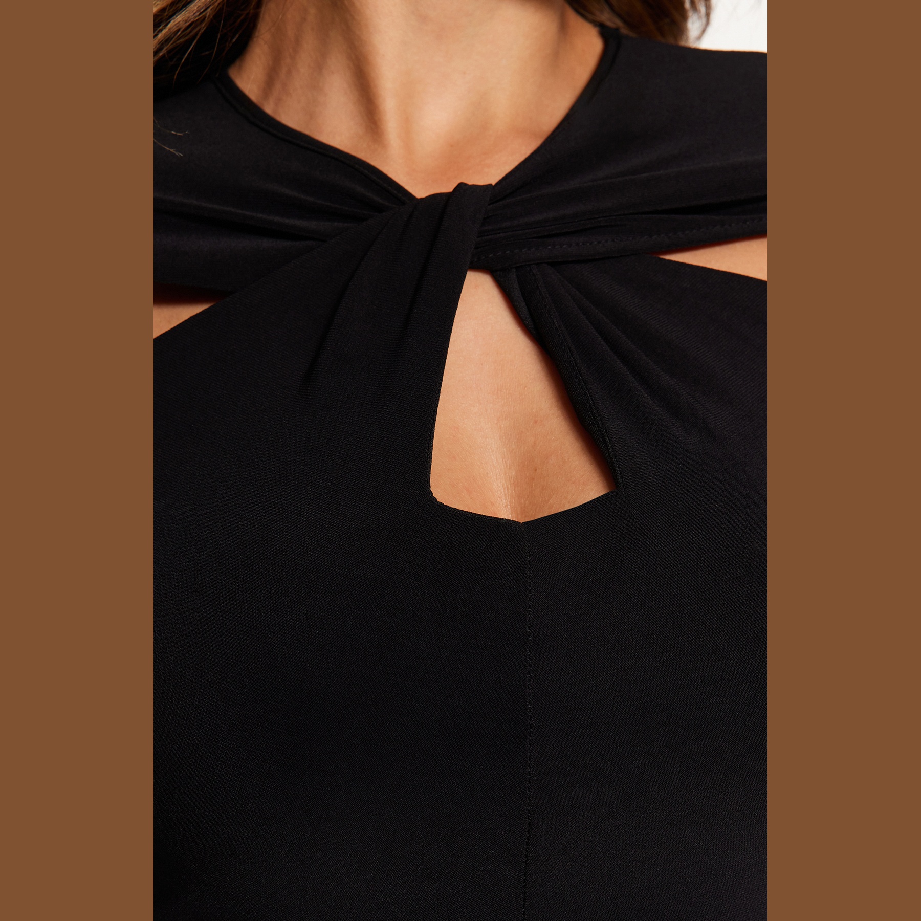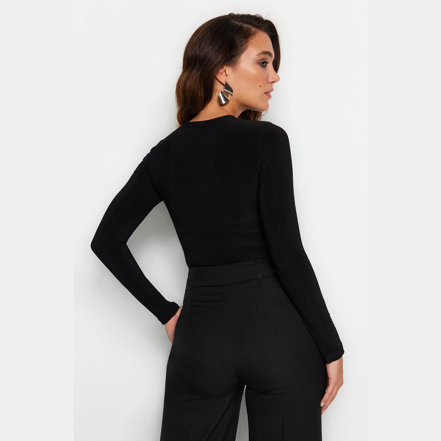 بودي نسائي – أسود بتفصيل Cut-out وبُزُوغ أمامي (تصميم عصري بخامة مطاطية مريحة)