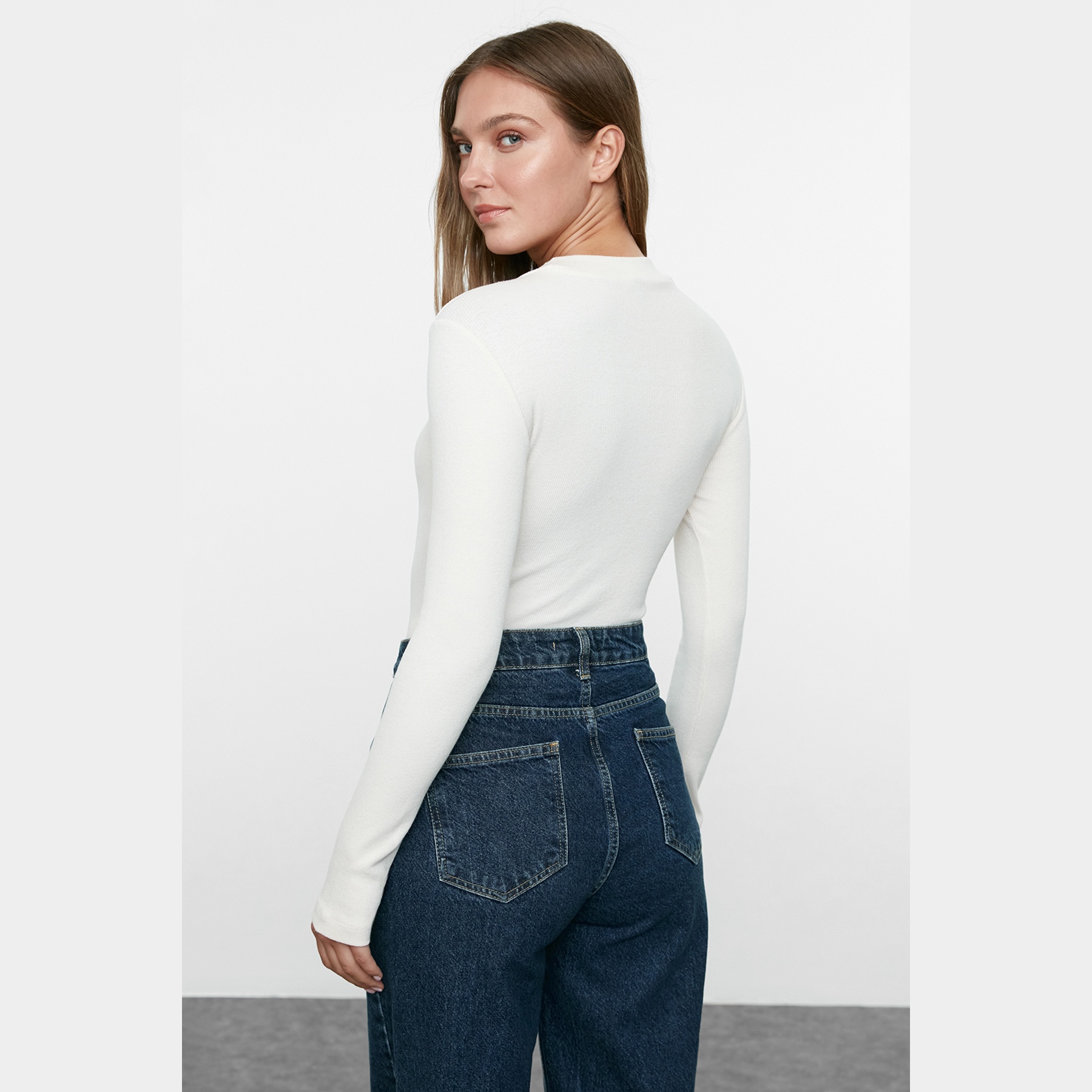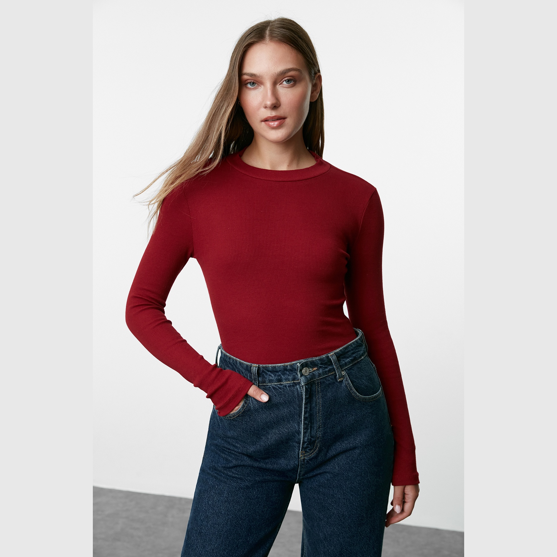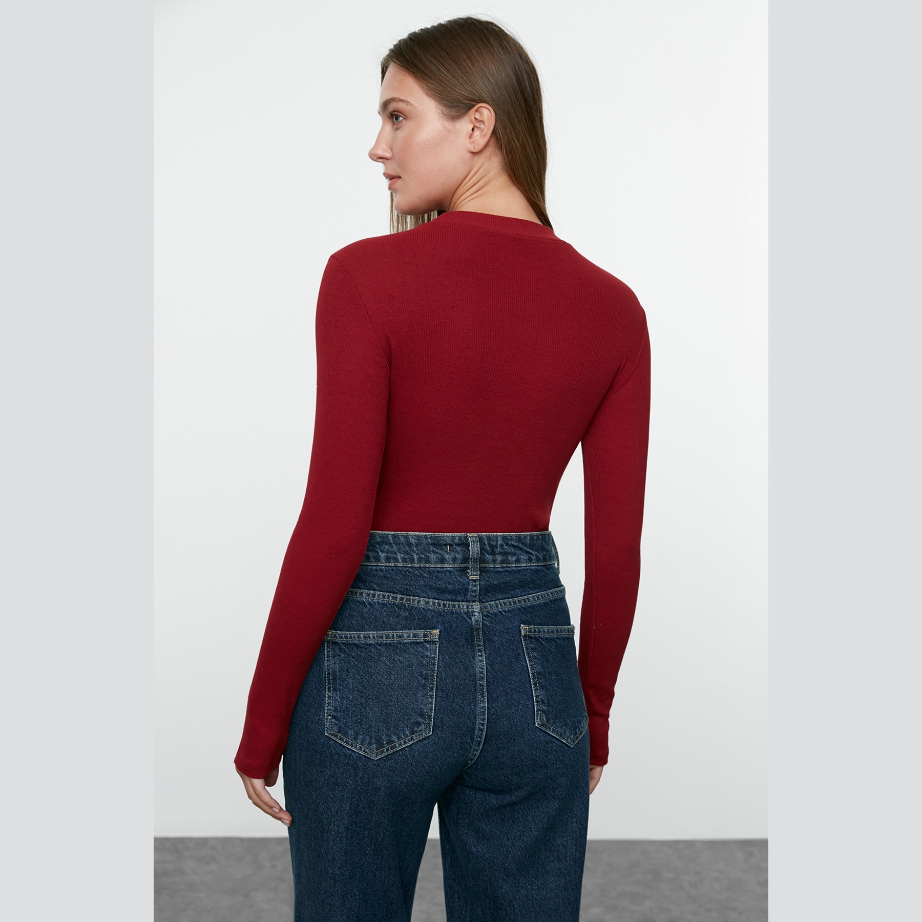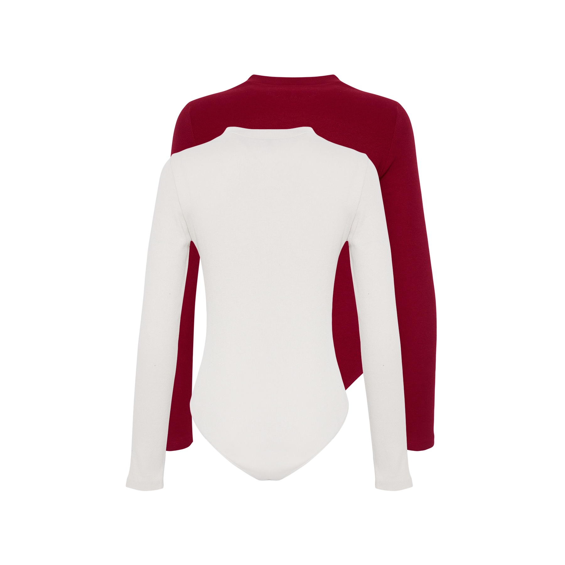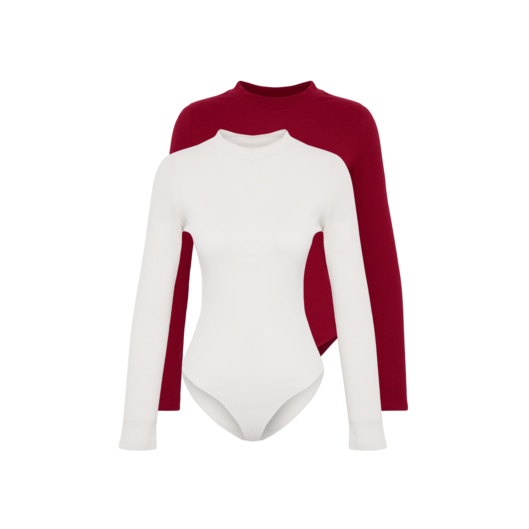 بودي نسائي – عبوة مزدوجة (خمري + بيج فاتح) بياقة عالية وقصة ضيقة (تصميم عملي بخامة قطنية مطاطية)
