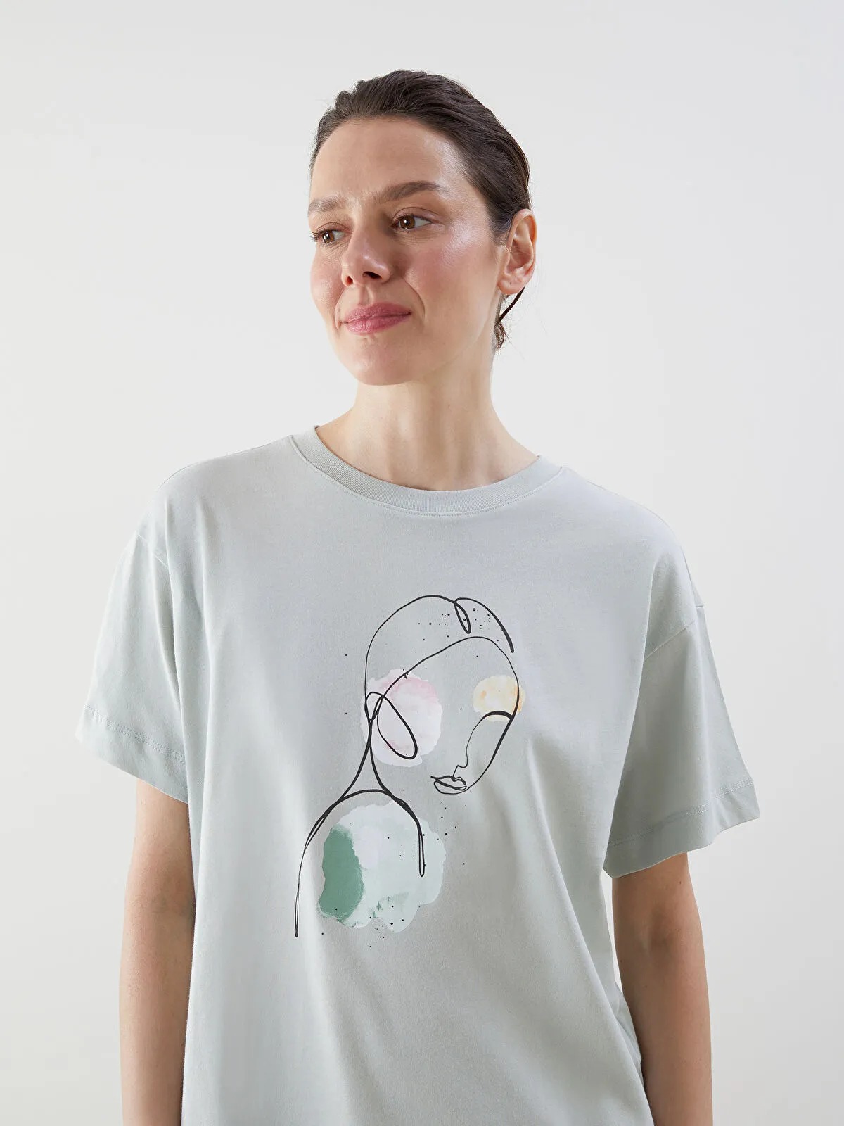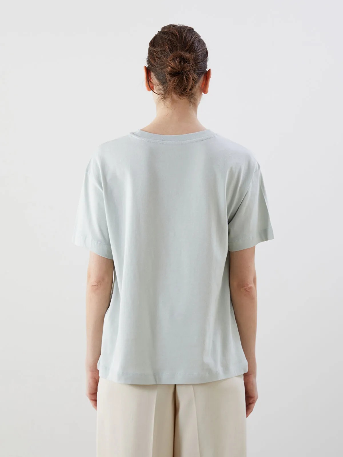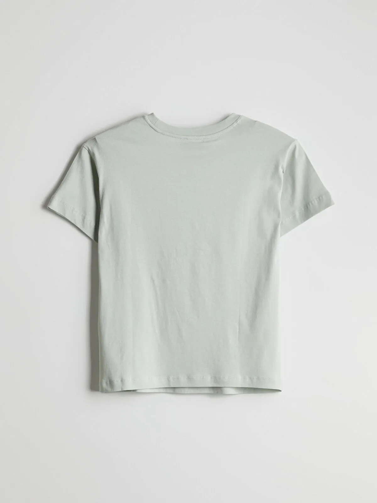 تيشيرت نسائي بلون أخضر هادئ، بياقة دائرية قصيرة وأكمام قصيرة، مزين بطبعة عصرية تضفي لمسة شبابية مرحة على الإطلالة اليومية. تصميم Regular Fit يمنحك مظهرًا متوازنًا وأنيقًا، مع راحة وحرية حركة طوال اليوم، مثالي لإطلالة كاجوال أننيقة وبسيطة.