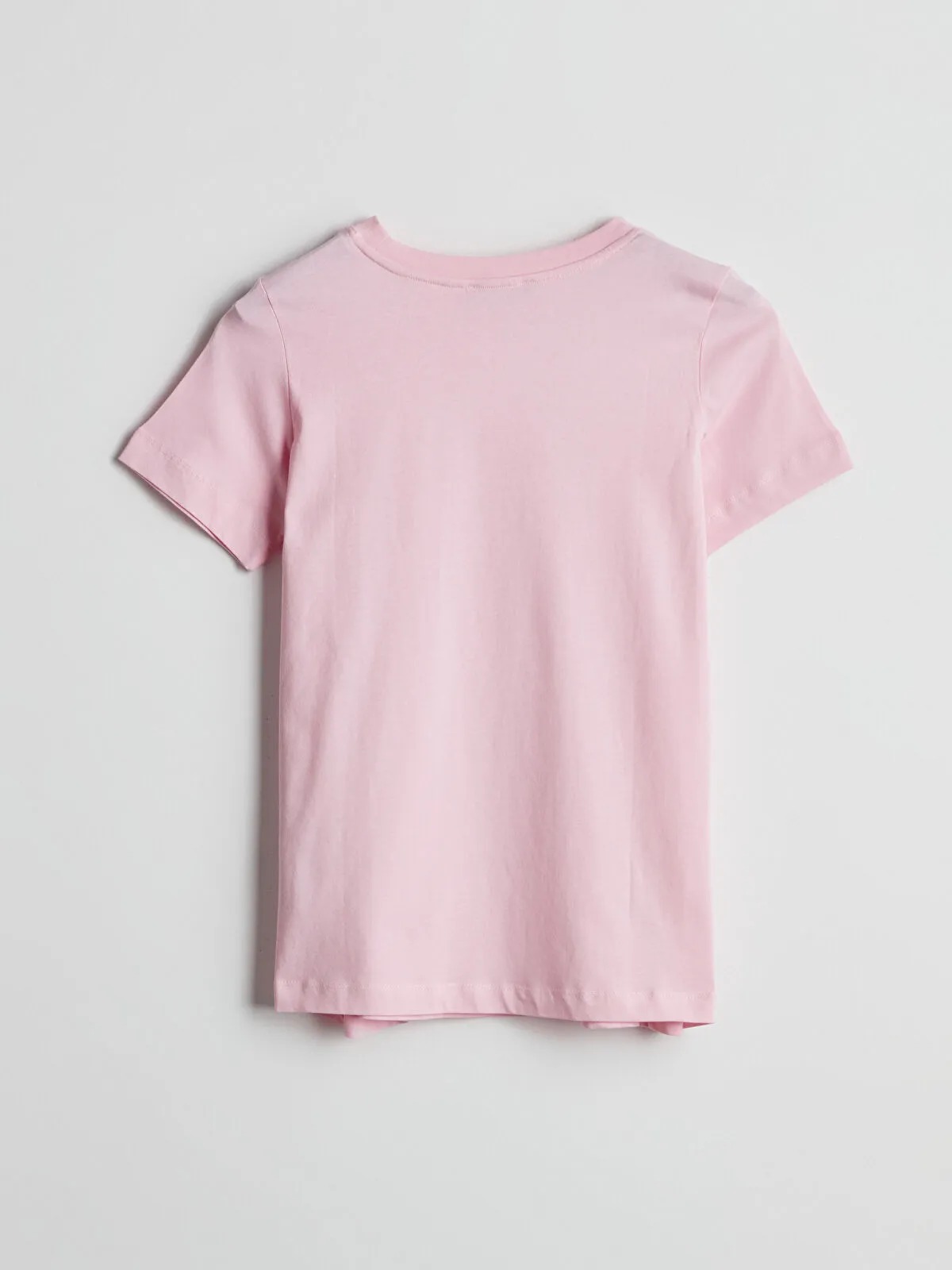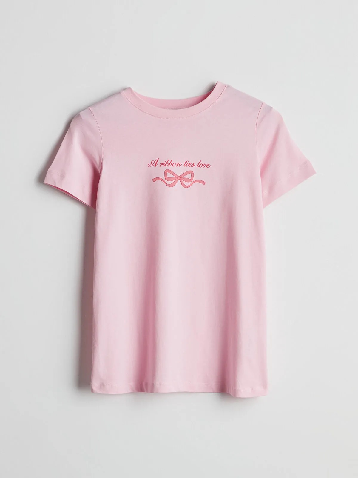 تيشيرت نسائي بلون بيج فاتح ناعم (Ekru)، بياقة دائرية قصيرة وأكمام قصيرة، مزين بطباعة أمامية تجمع بين نقش الفهد وقوس أنثوي متجرّد. تصميم Regular Fit يمنحك مظهرًا متوازنًا بين الأنوثة والراحة، مثالي للارتداء اليومي بأسلوب أنيق ومريح.