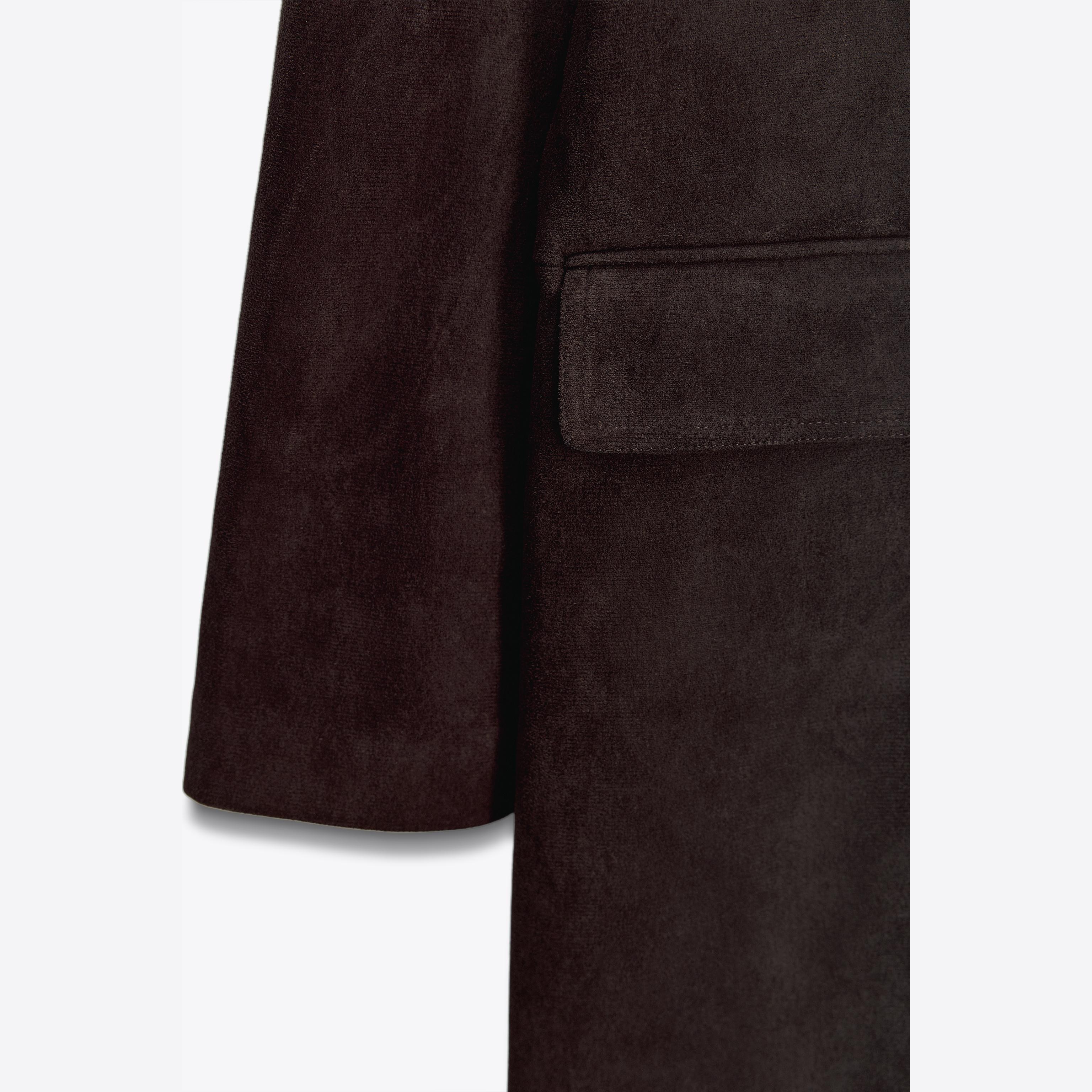 معطف أنيق بلون شوكولا دافئ، مصنوع من خامة السويد الصناعي الناعم يمنح مظهرًا عصريًا وراحة في الارتداء. يتميز بياقة نوتش كلاسيكية وأكمام طويلة، مع جيوب أمامية بغطاء، وإغلاق أمامي بالأزرار. تصميم مستقيم مع حافة سفلية ناعمة، مثالي للإطلالات اليومية أو الرسمية في المواسم الباردة.