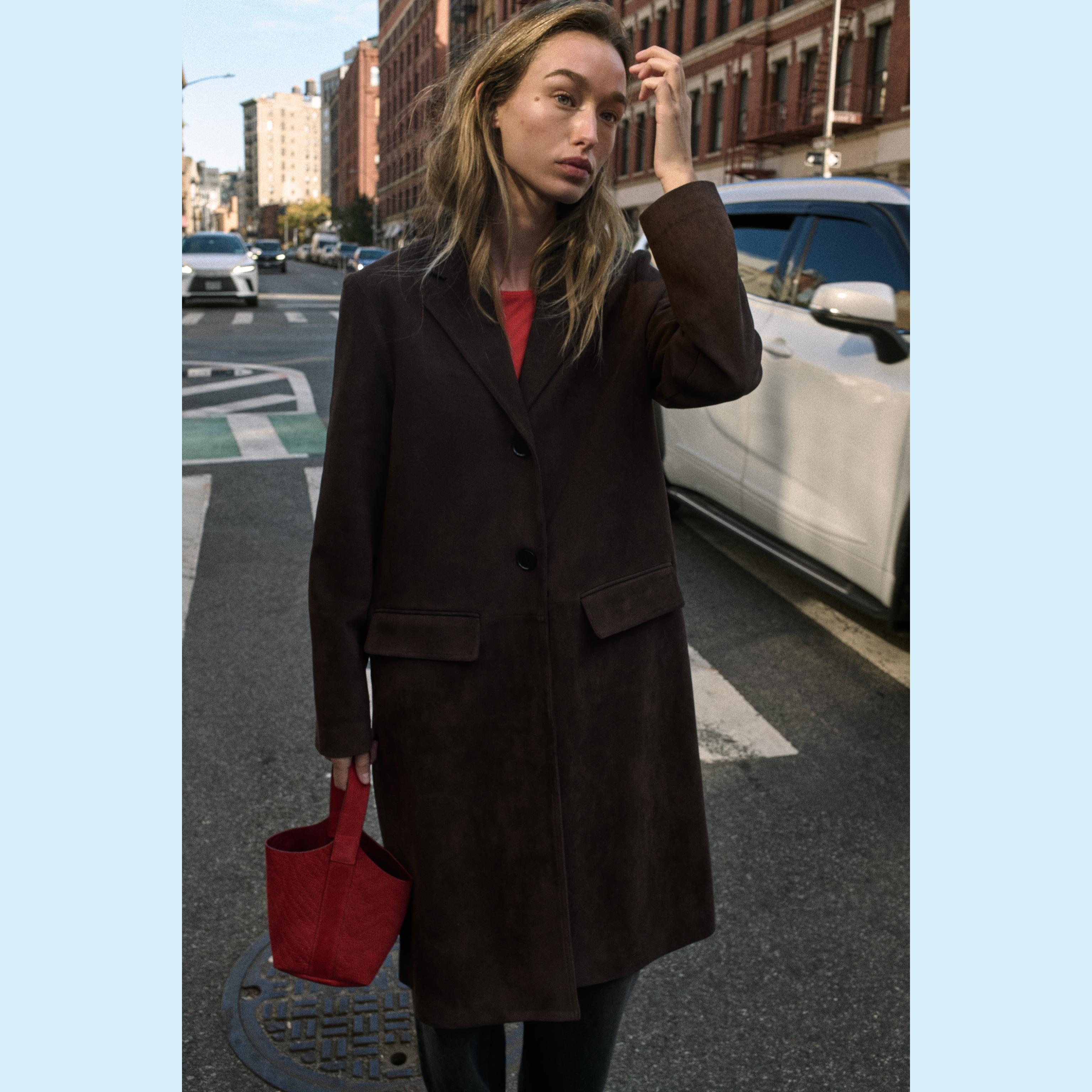 - التصميم: معطف من السويد الصناعي (Faux Suede Frock Coat)