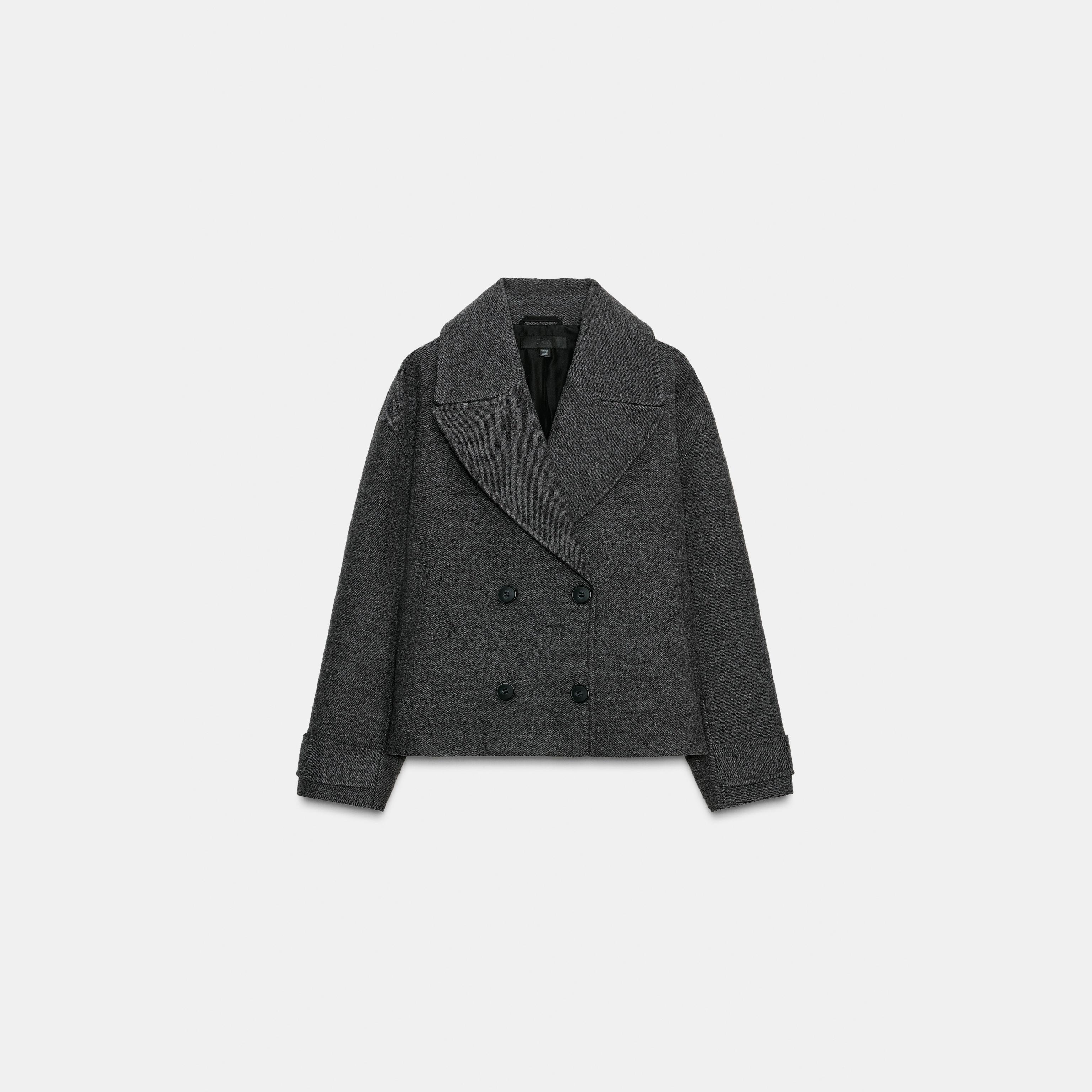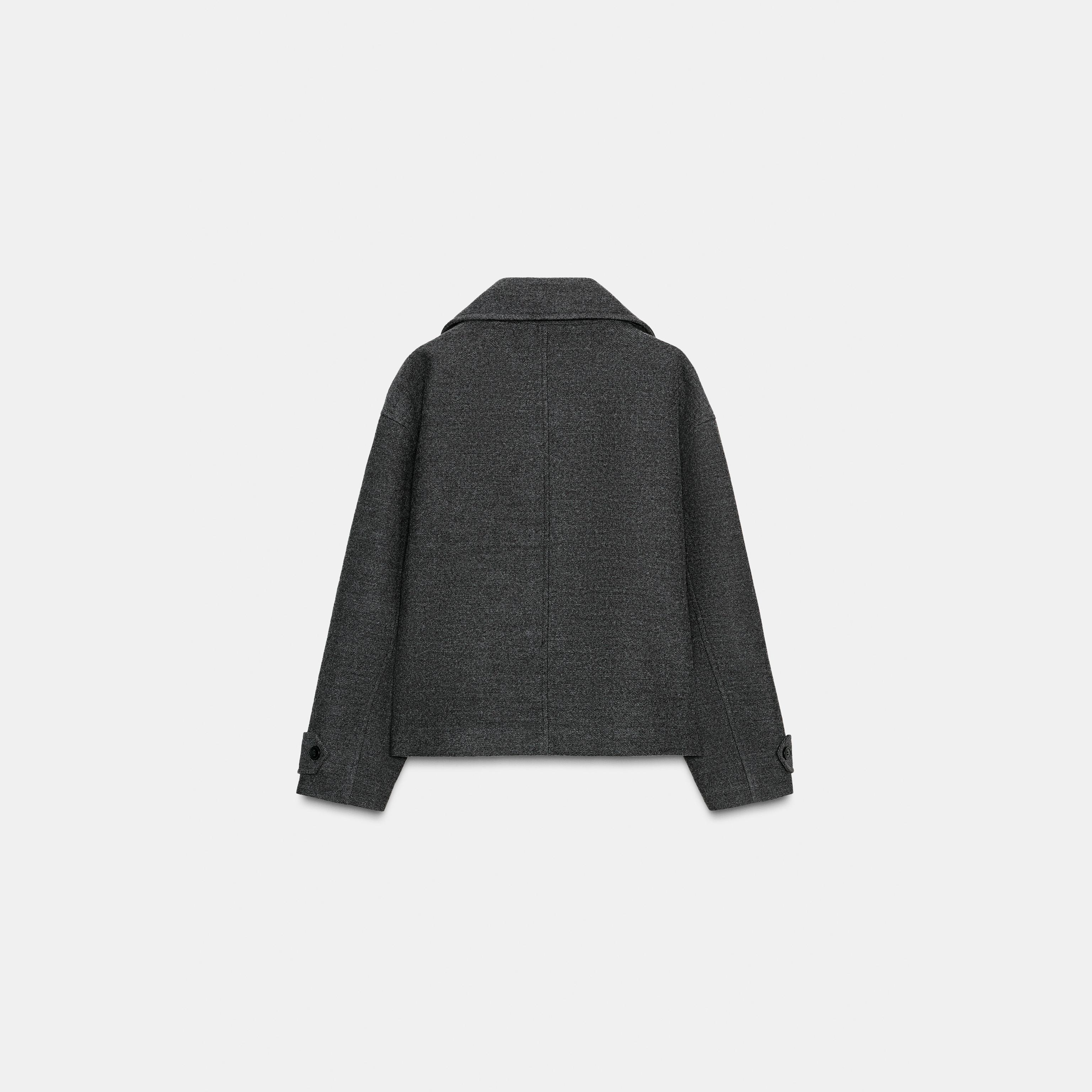 معطف نسائي قصير – لون حيادي ممزوج (رمادي) – Grey، مزدوج الصدر (Soft Double-Breasted Short Coat)