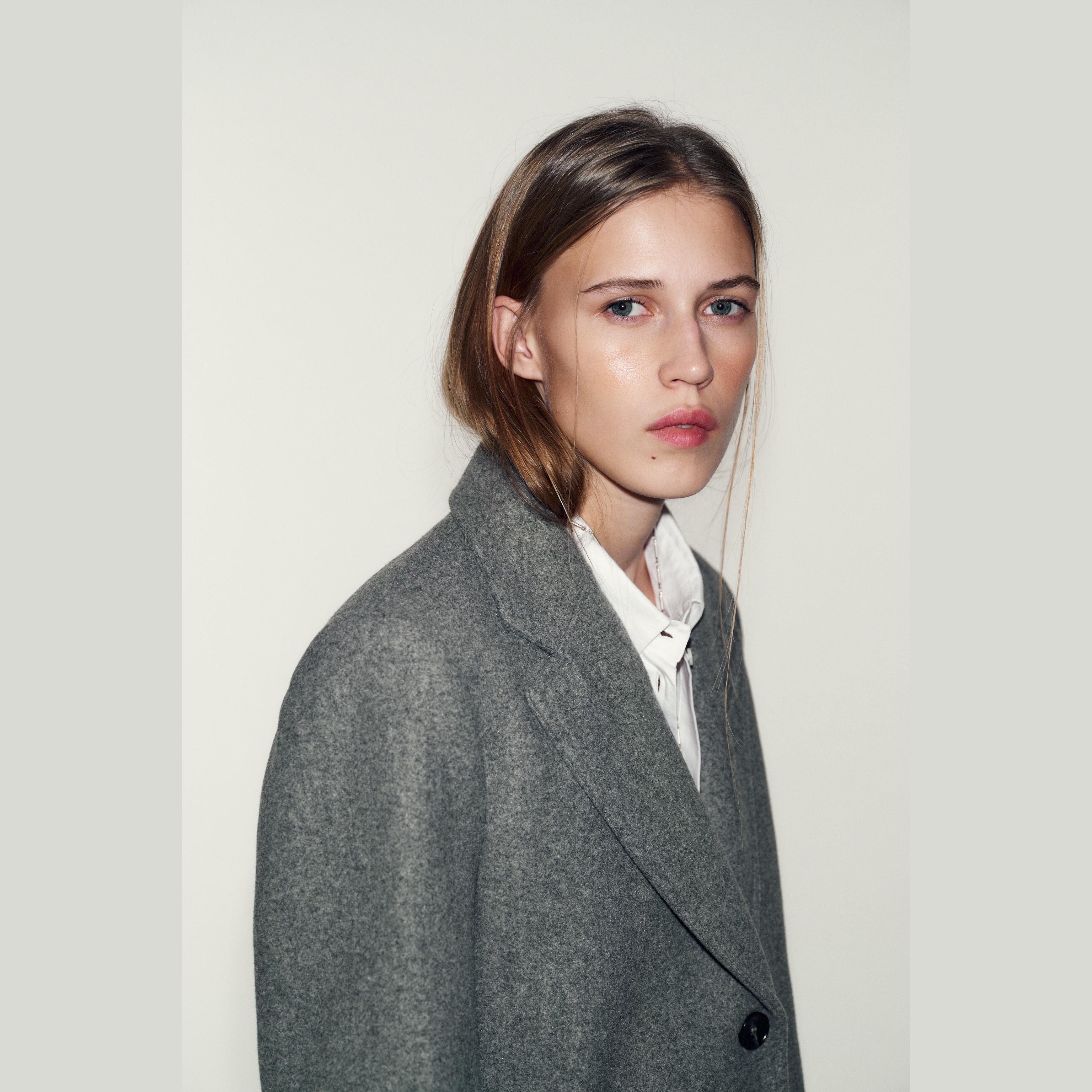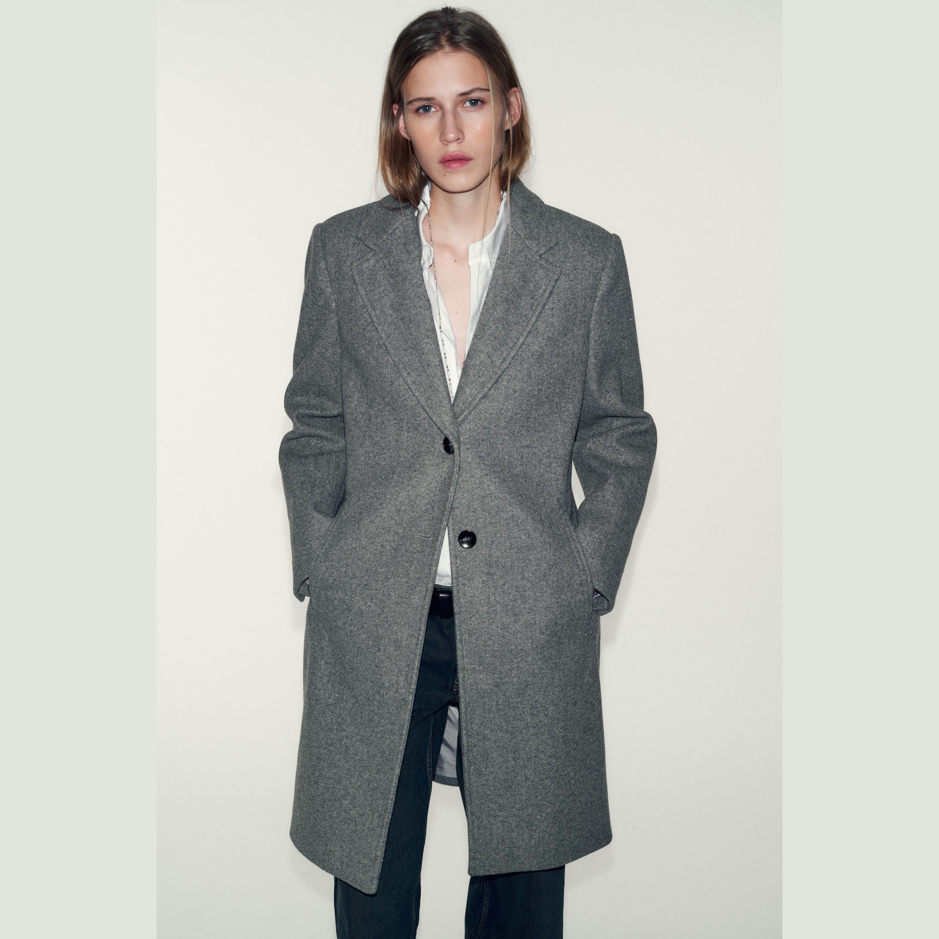 - التصميم: معطف بأكتاف مبطنة (Soft Shoulder Pad Coat)